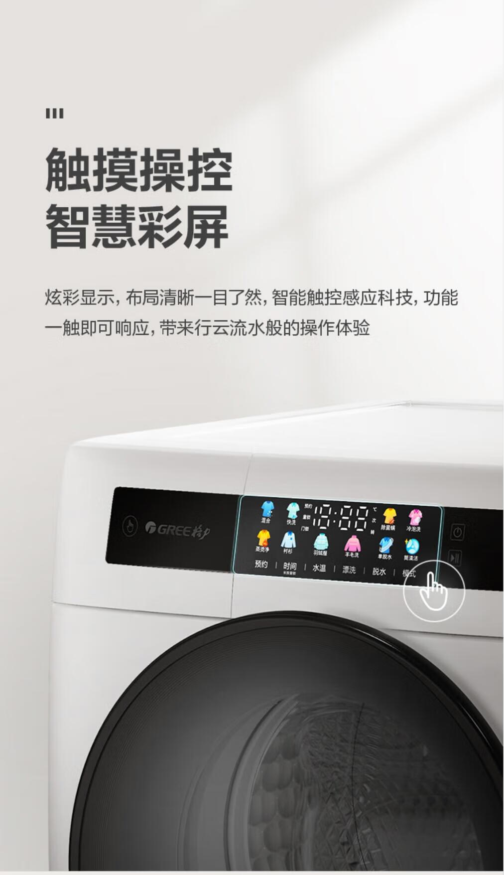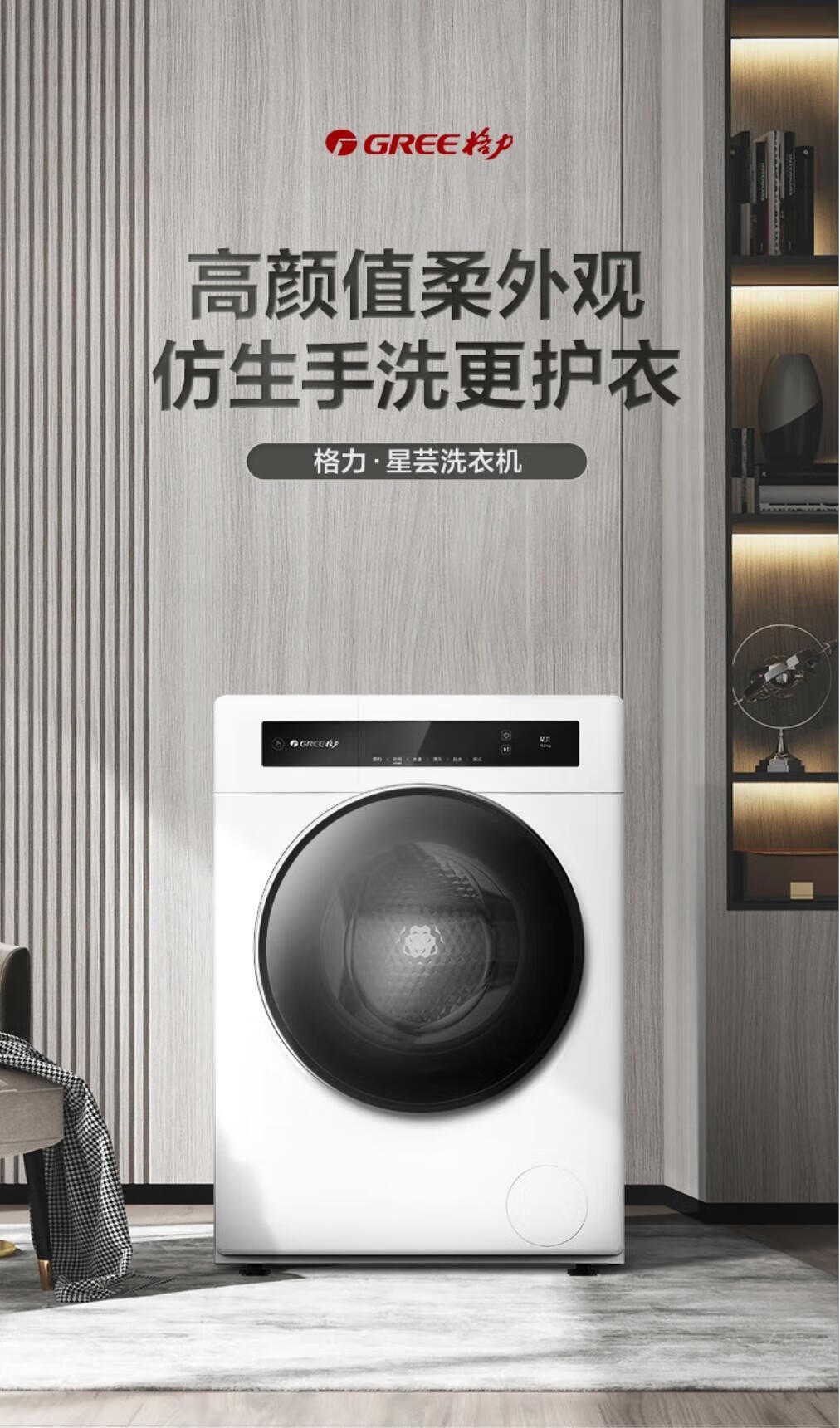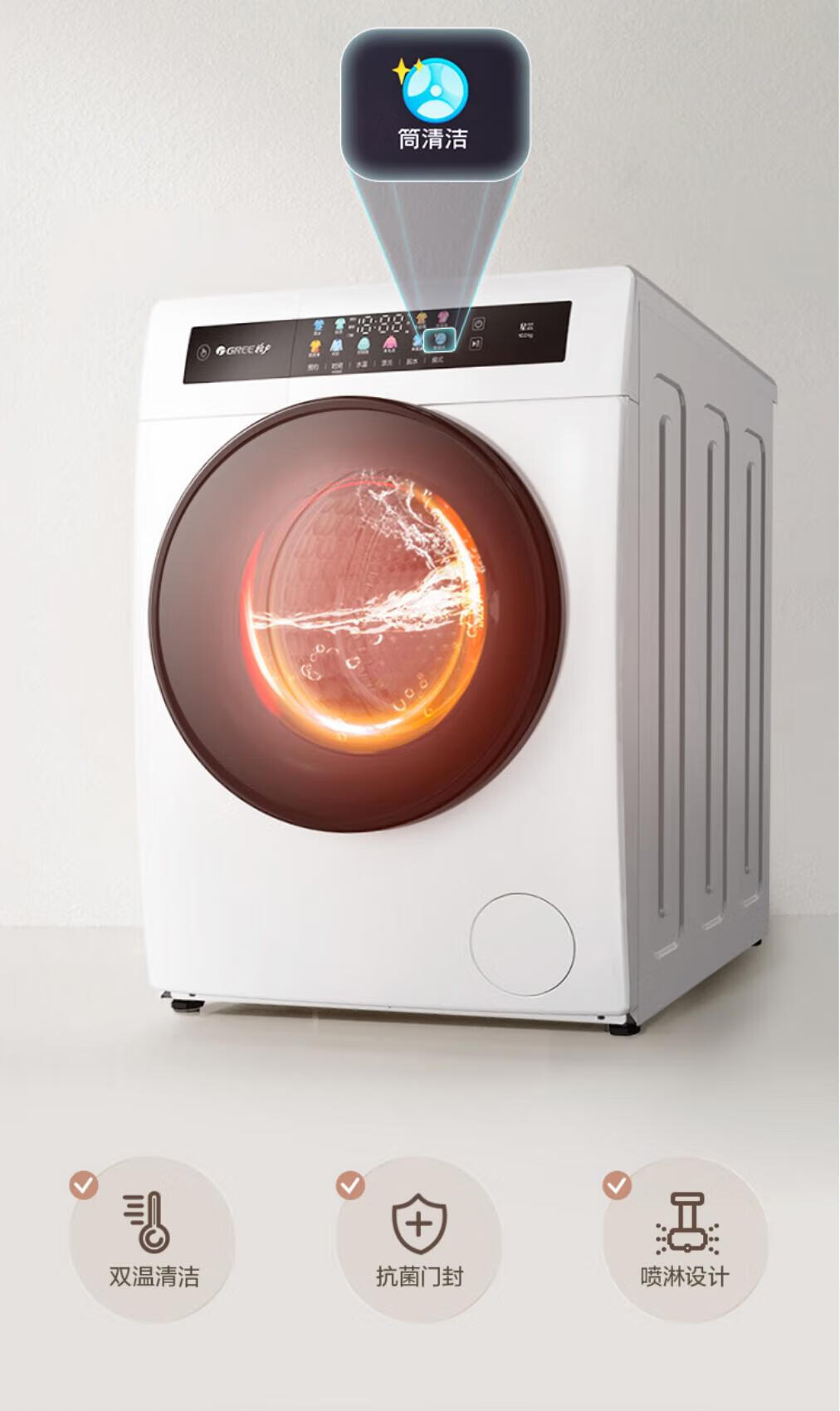 格力(GREE)星芸10KG单洗滚筒洗衣机全自动洗脱一体高温蒸煮除菌螨1.08高洗净比一级能效XQG100-B1201Ca1