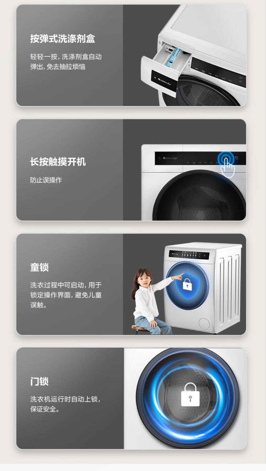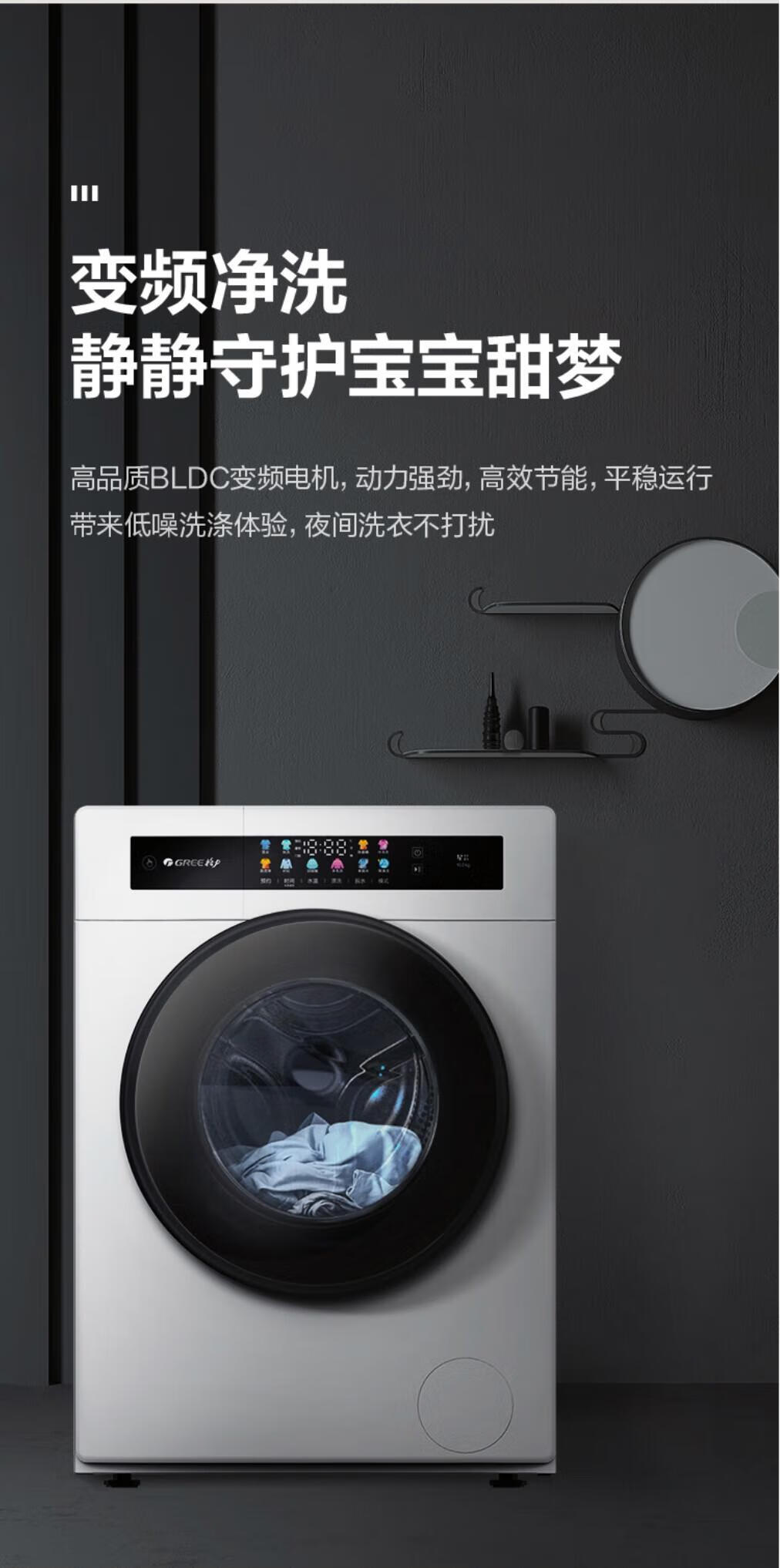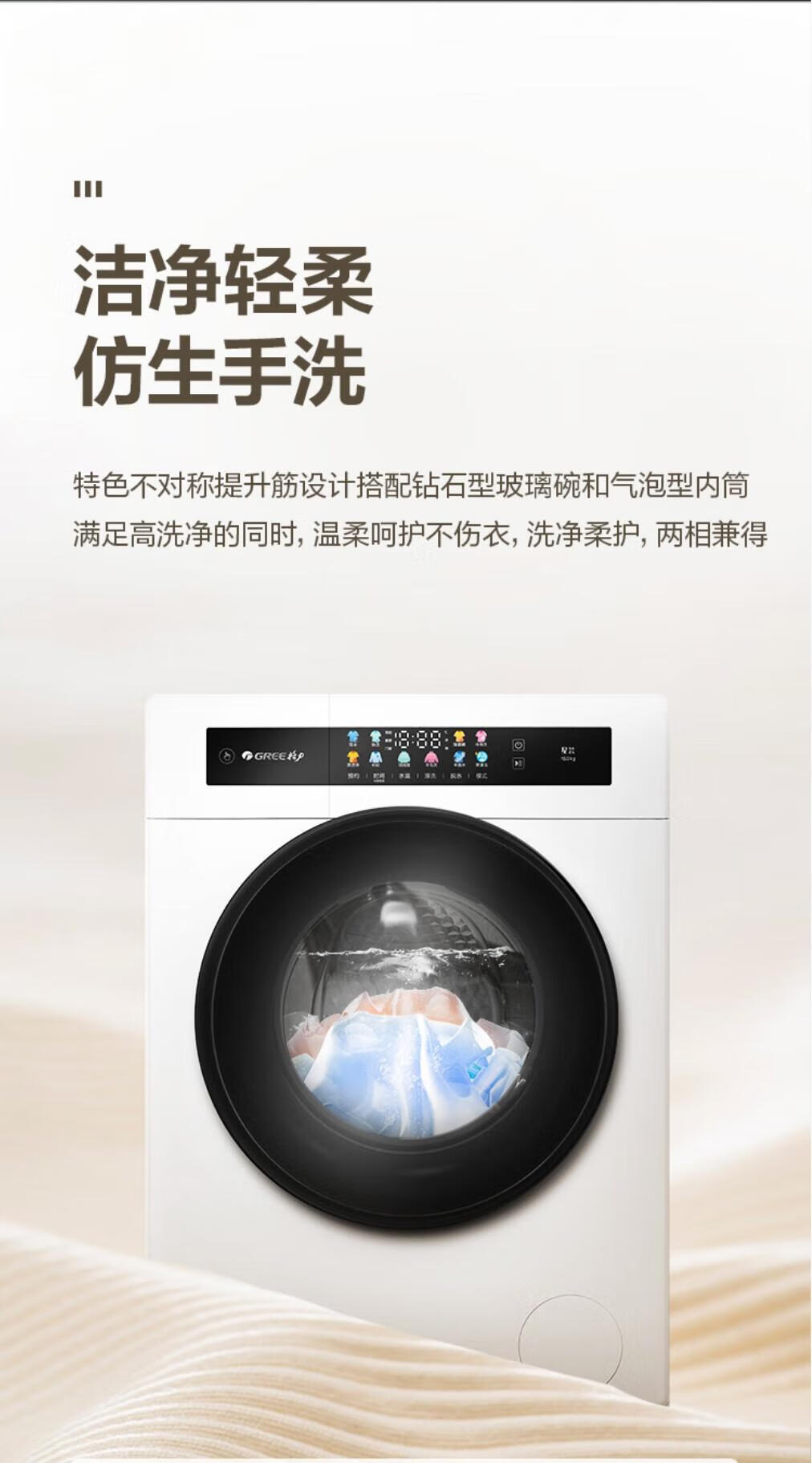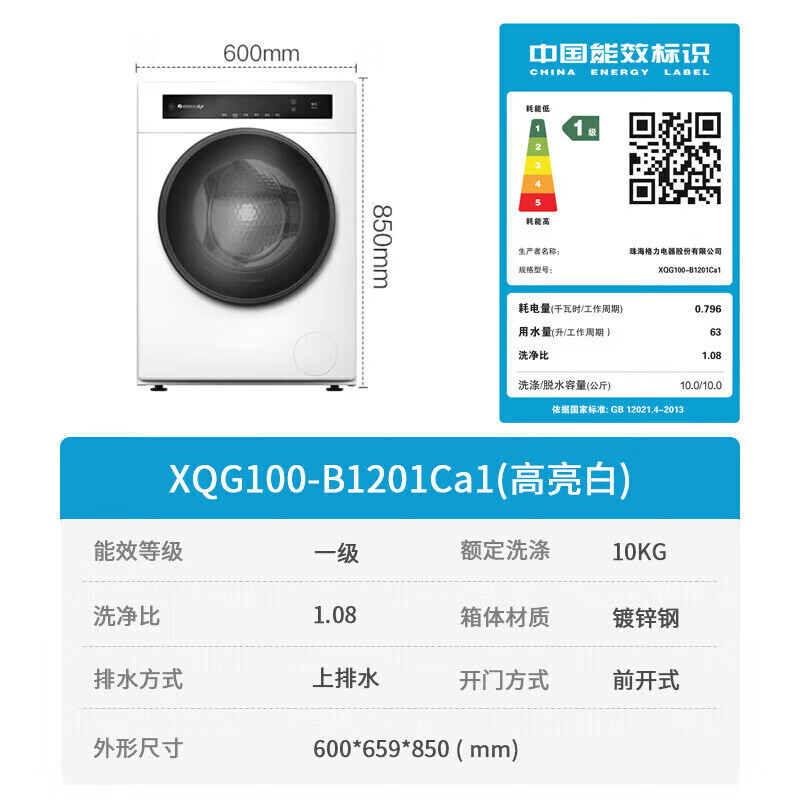 格力(GREE)星芸10KG单洗滚筒洗衣机全自动洗脱一体高温蒸煮除菌螨1.08高洗净比一级能效XQG100-B1201Ca1