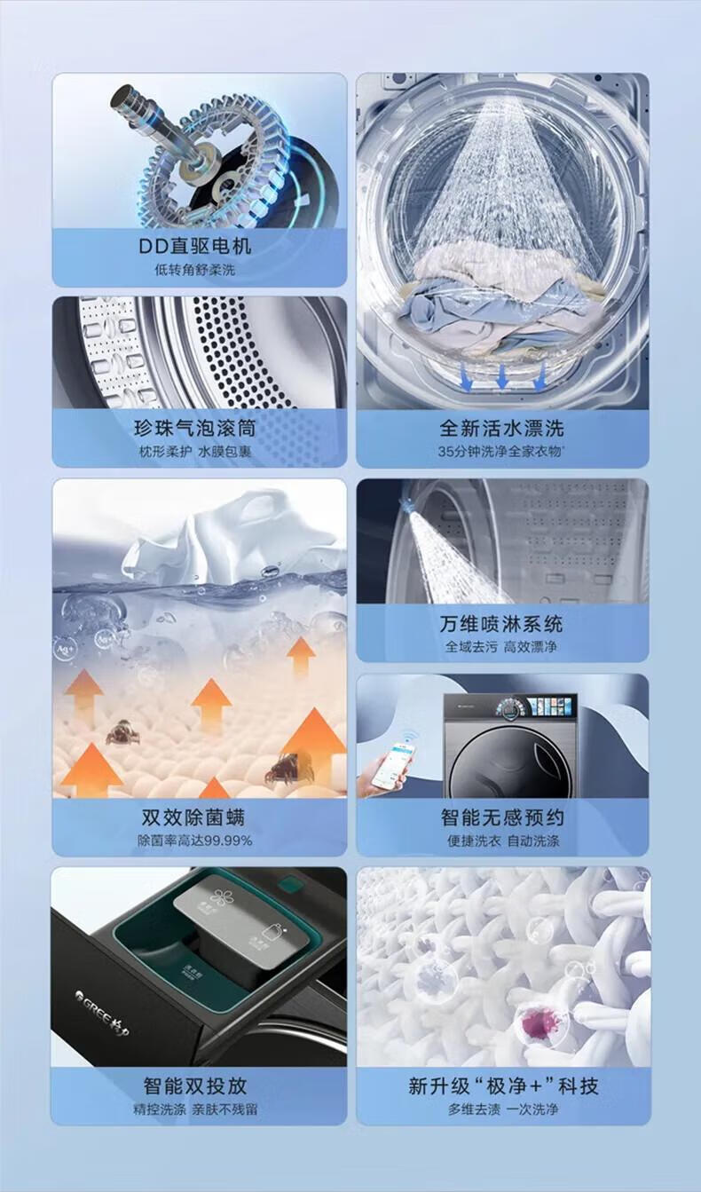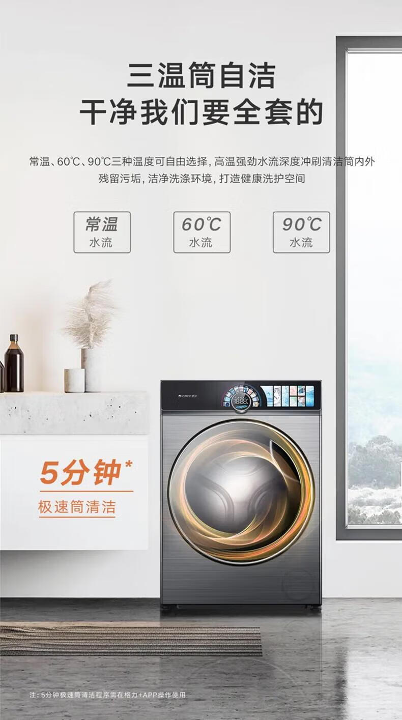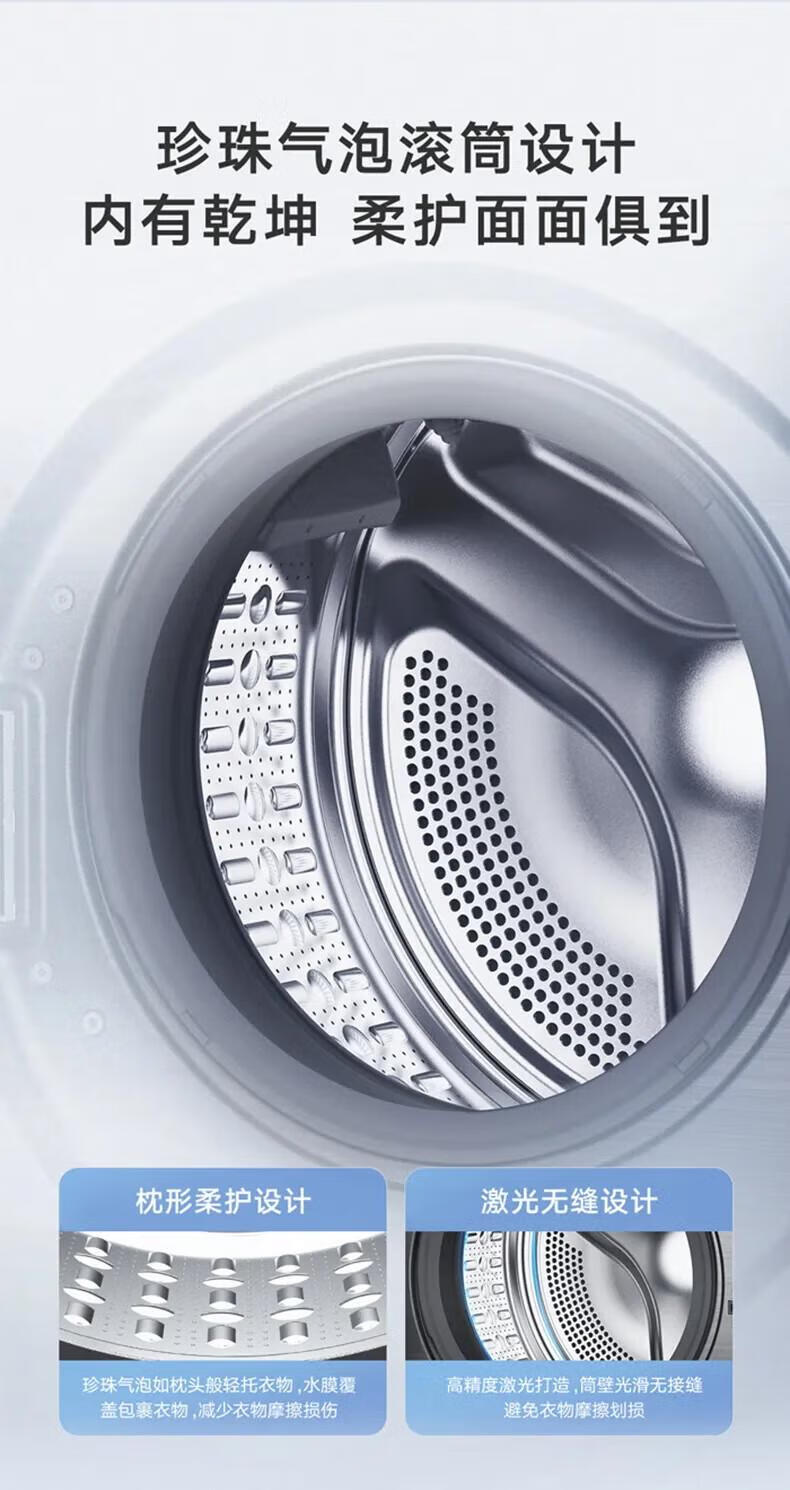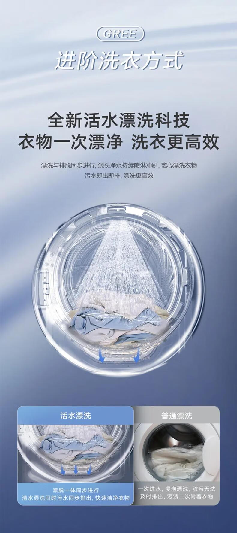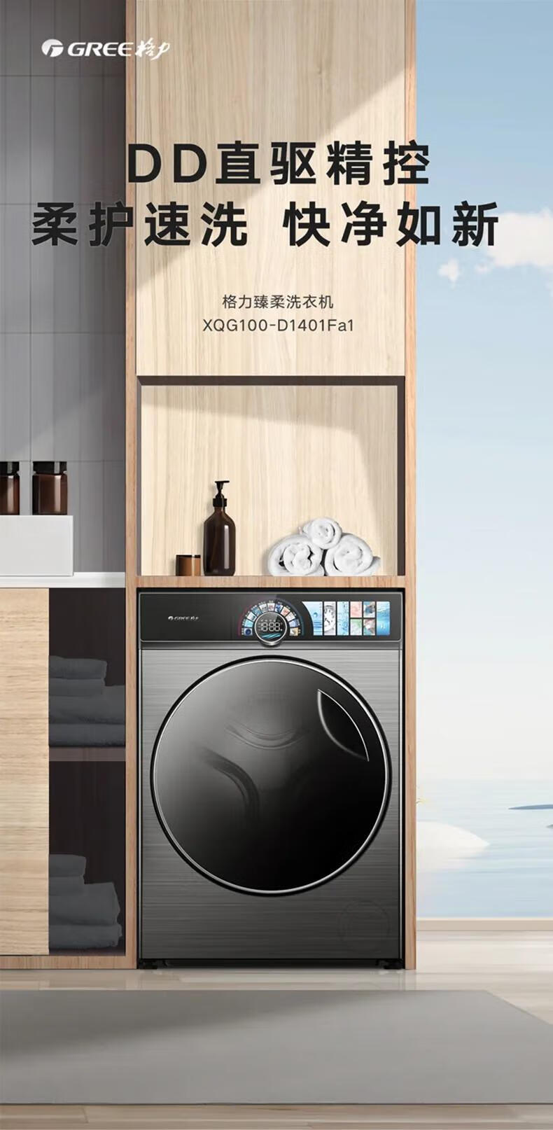 格力(GREE)臻柔10KG单洗滚筒洗衣机全自动洗脱一体国际发明展铜奖585mm超薄机身一级能效XQG100-D1401Fa1