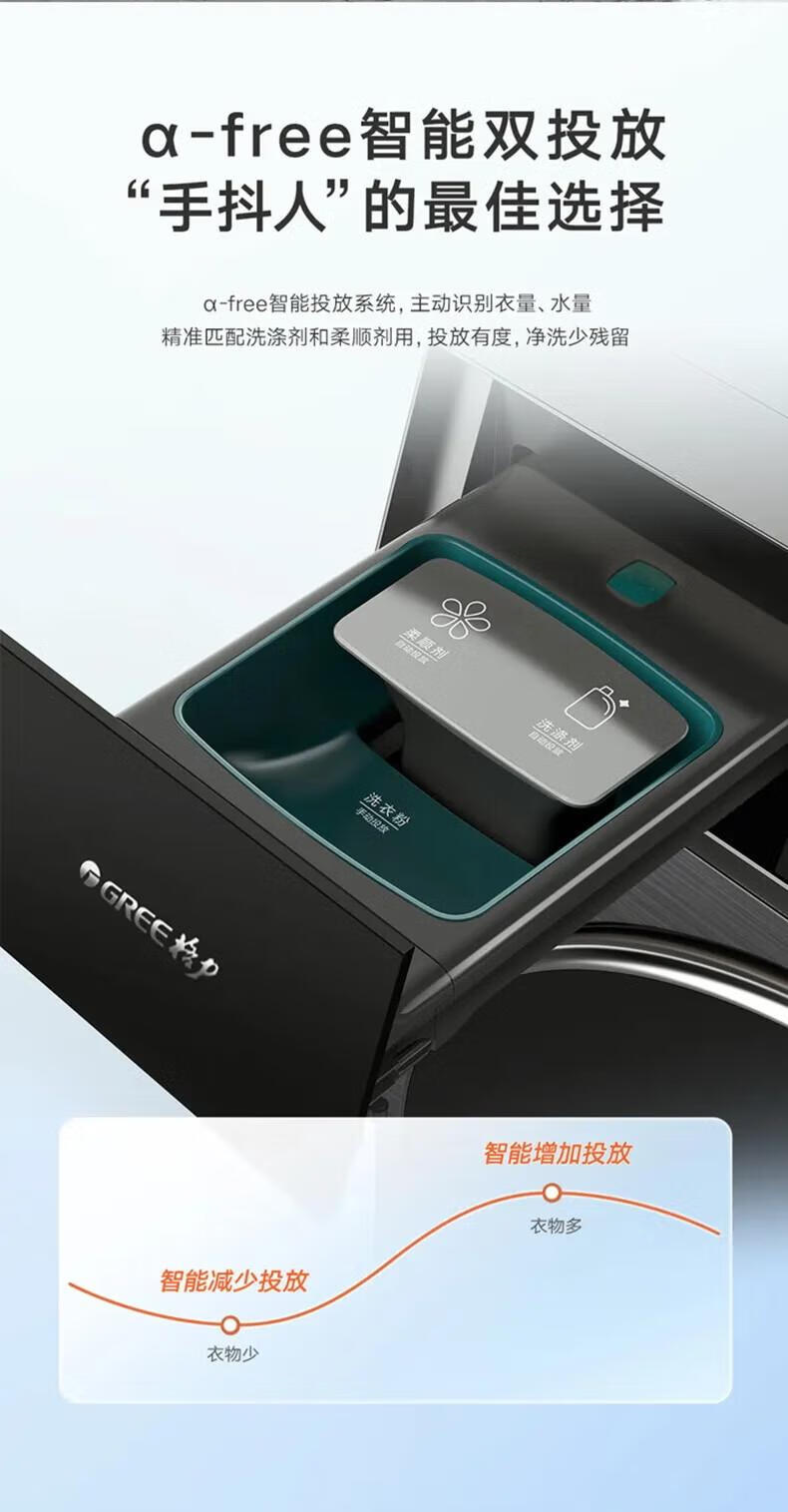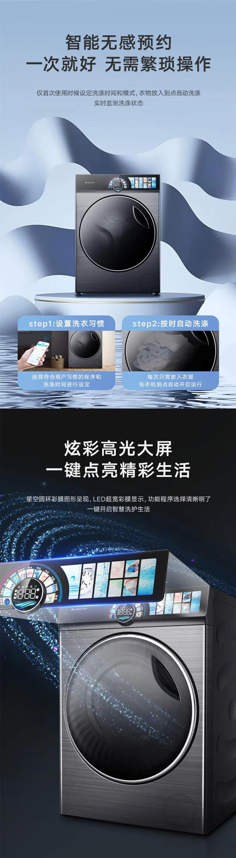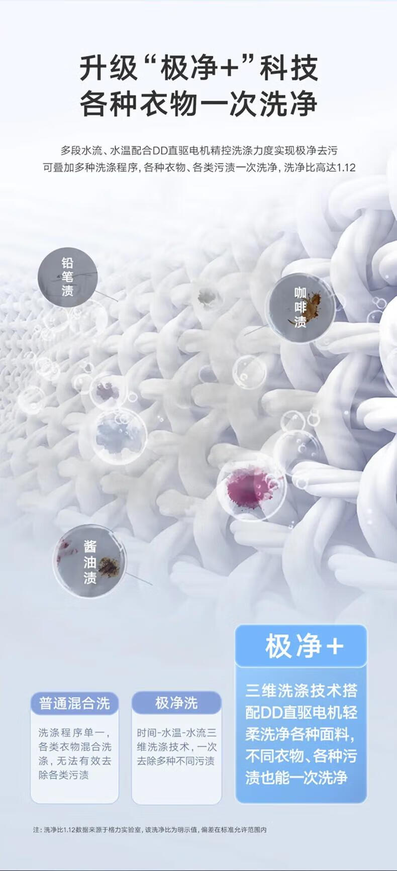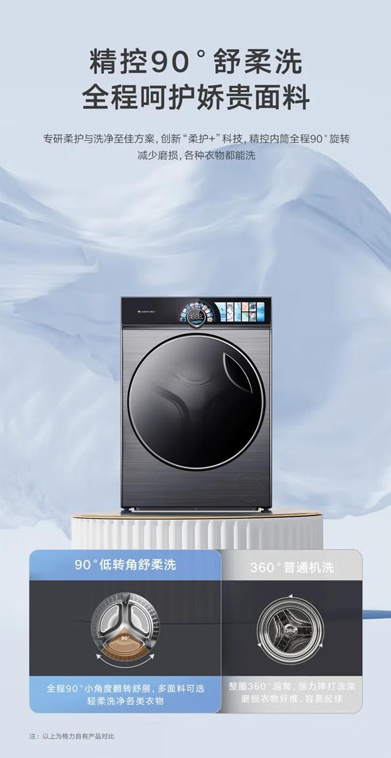 格力(GREE)臻柔10KG单洗滚筒洗衣机全自动洗脱一体国际发明展铜奖585mm超薄机身一级能效XQG100-D1401Fa1