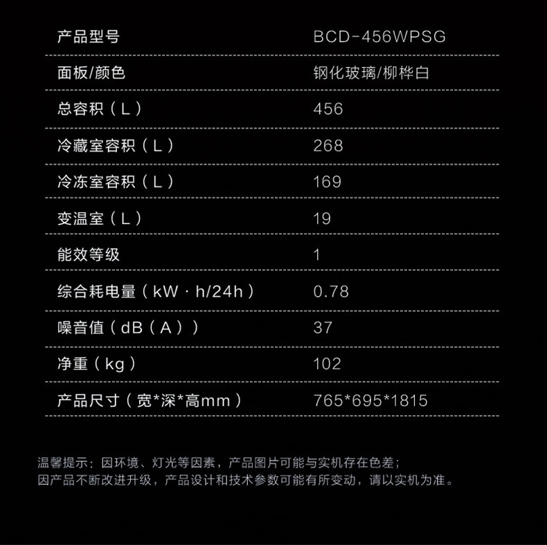 • 型号: BCD-456WPSG/柳桦白