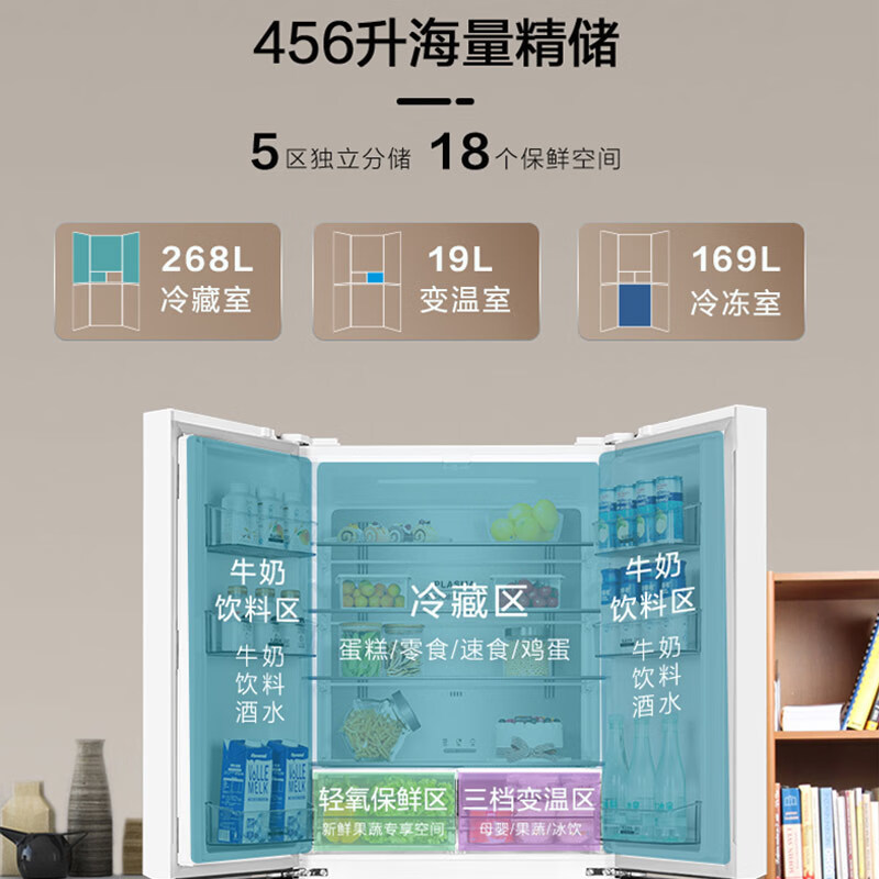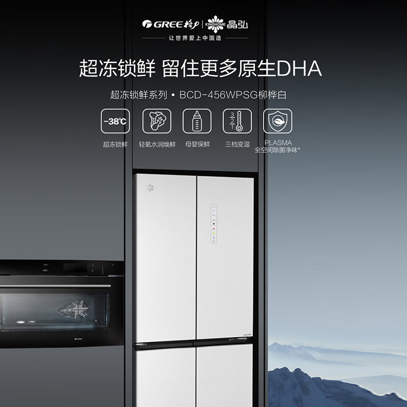 格力晶弘冰箱456升四开门十字对开家用-38℃超冻鲜全空间除菌净味节能变频一级能效BCD-456WPSG/柳桦白