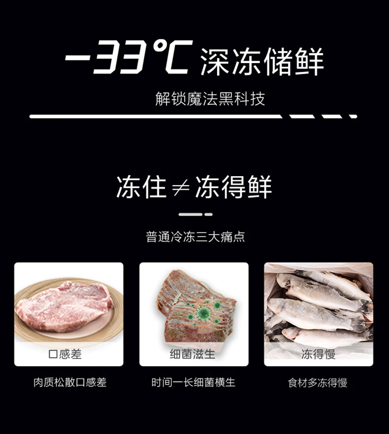 • 特色保鲜功能: -33℃深冻,离子长效抗菌净味