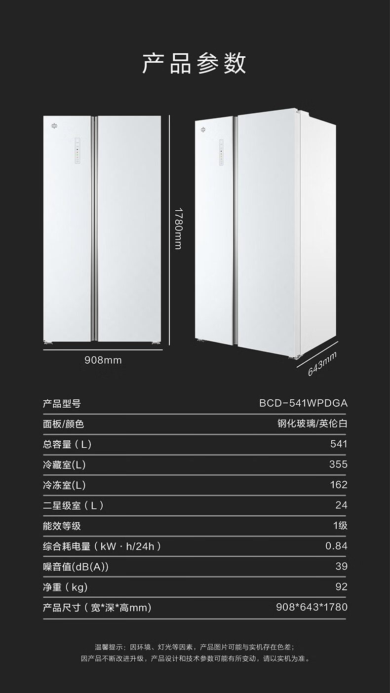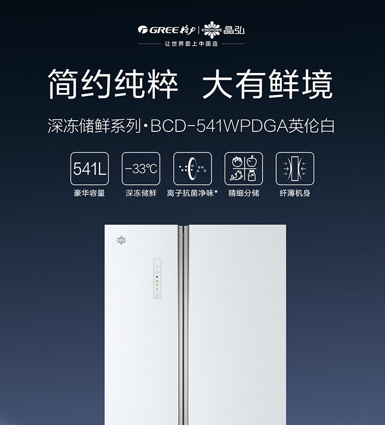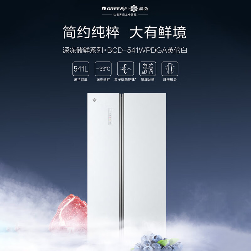 格力晶弘冰箱541升双开门对开家用-33℃深冻储鲜离子长效抗菌净味节能变频一级能效BCD-541WPDGA/英伦