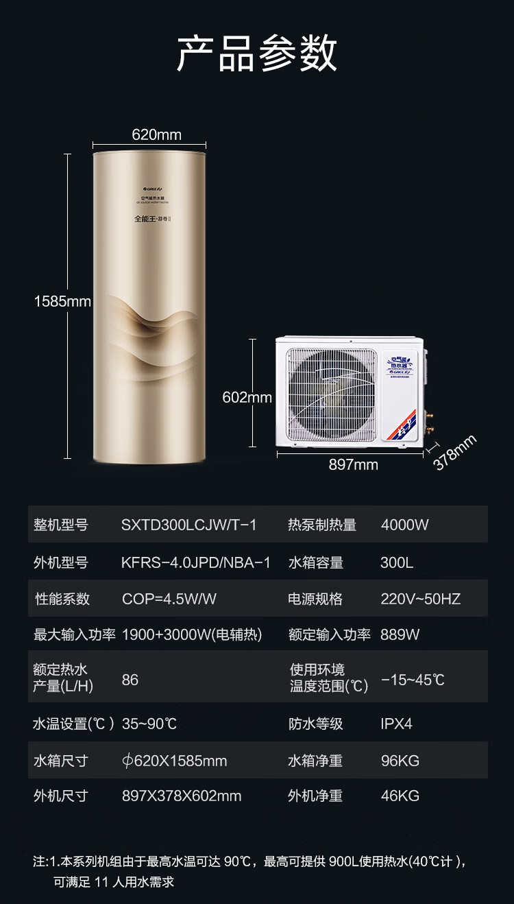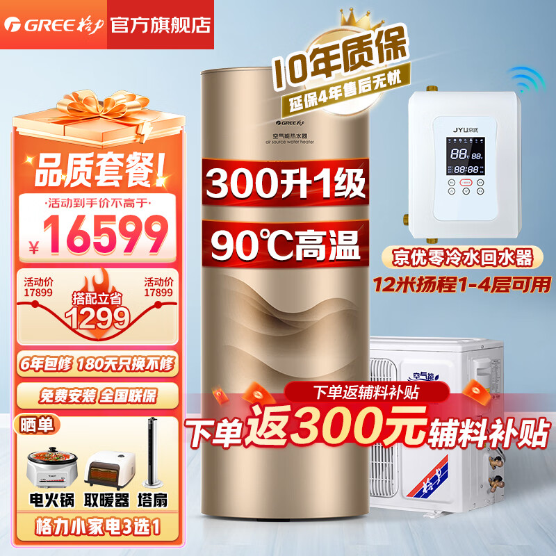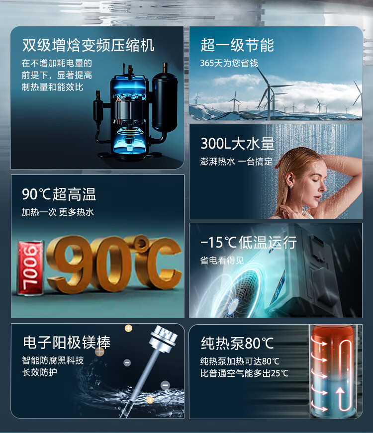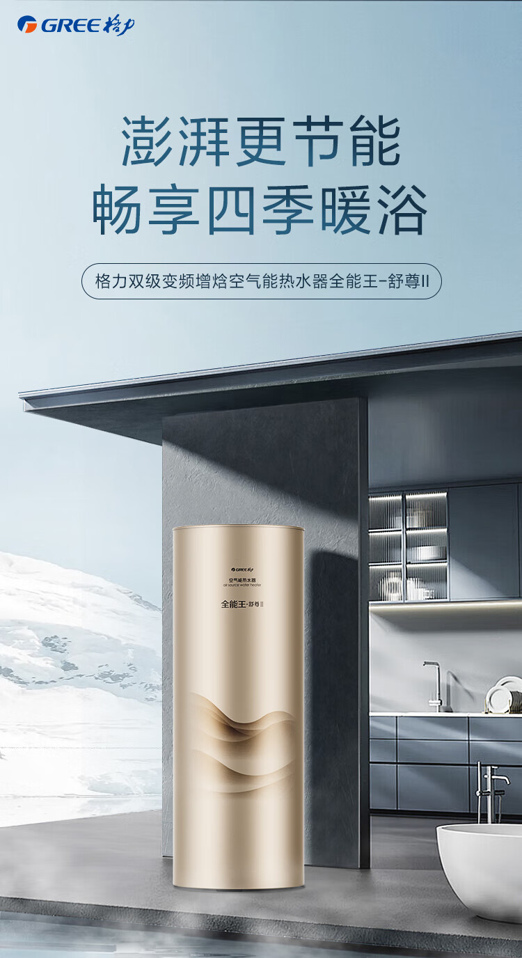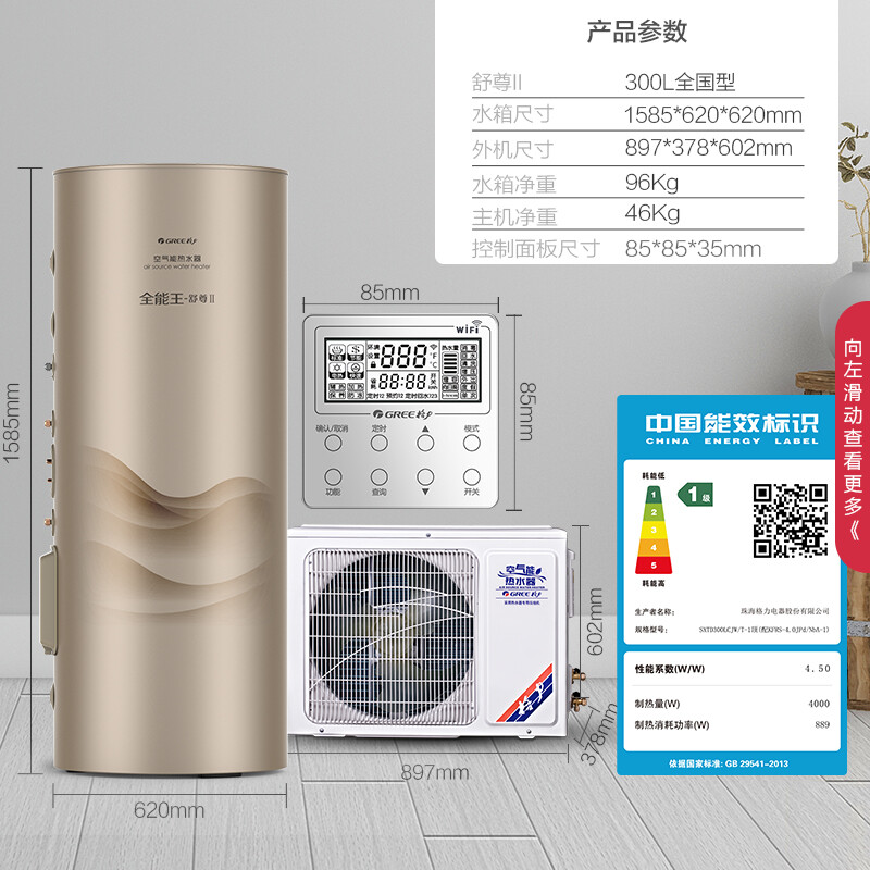 格力(GREE)空气能热水器家用300升一级能效省电90℃ 智能WIFI 电辅速热双级增焓变频压缩机