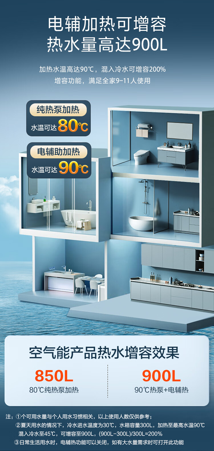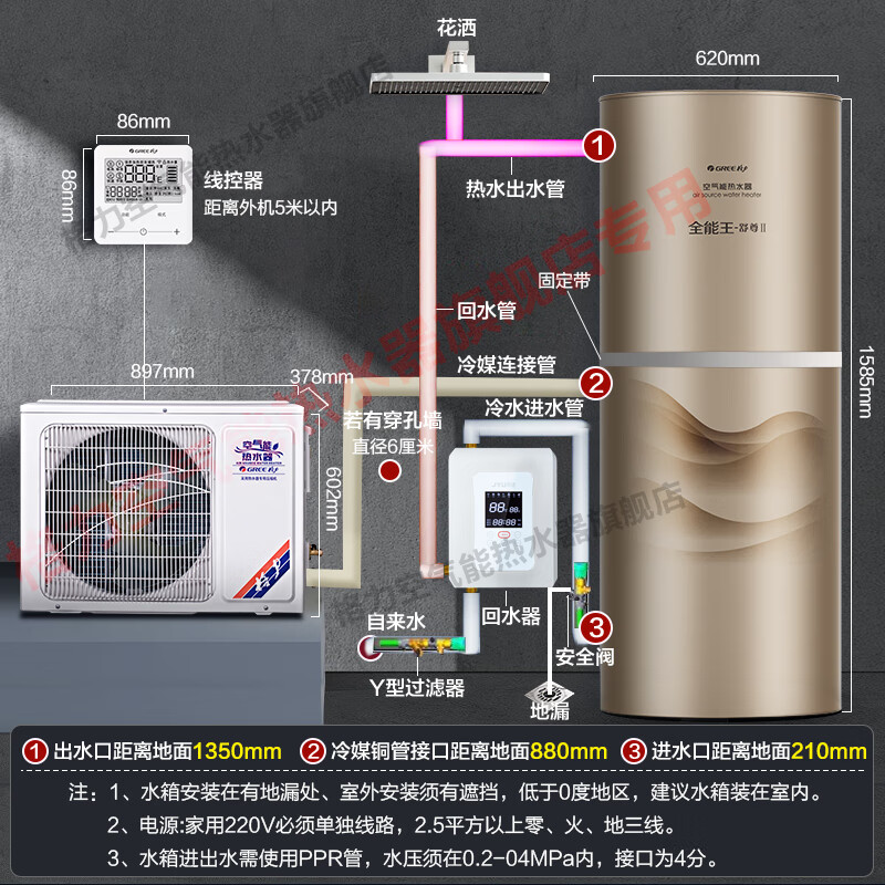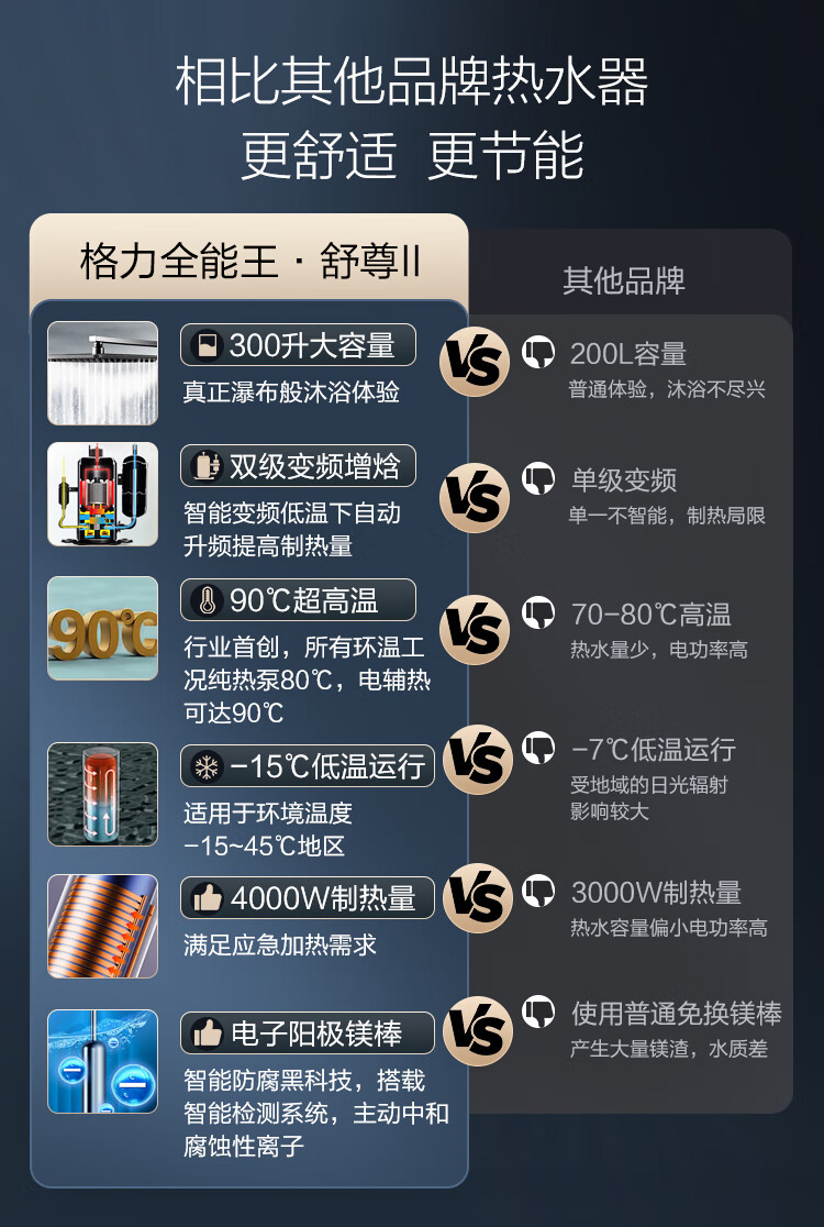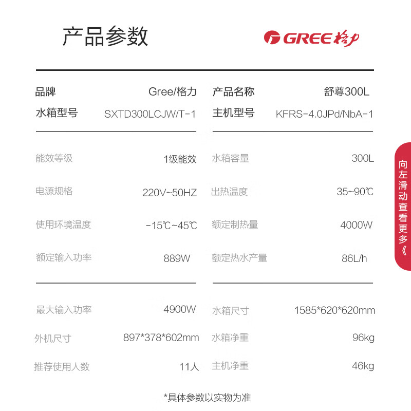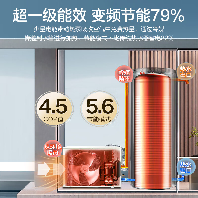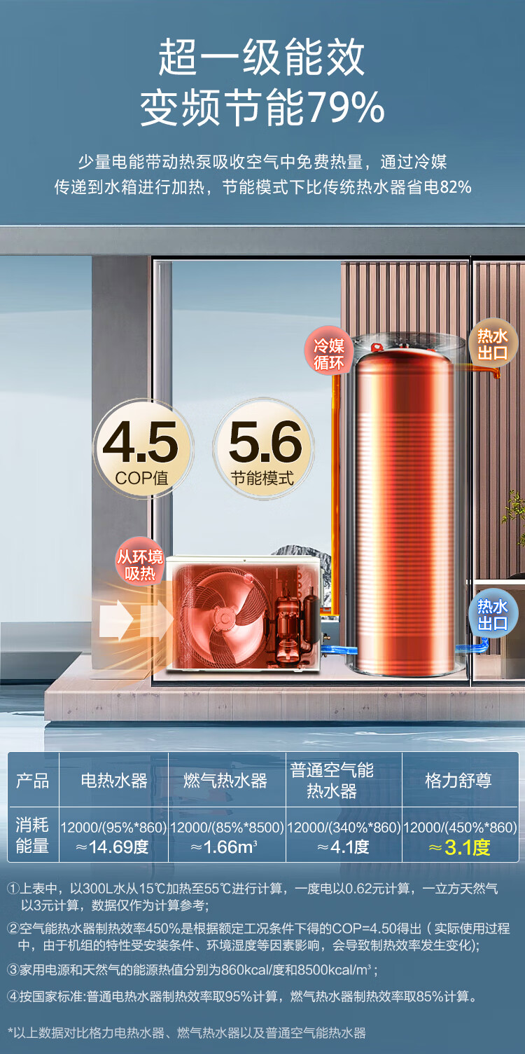 格力(GREE)空气能热水器家用300升一级能效省电90℃ 智能WIFI 电辅速热双级增焓变频压缩机