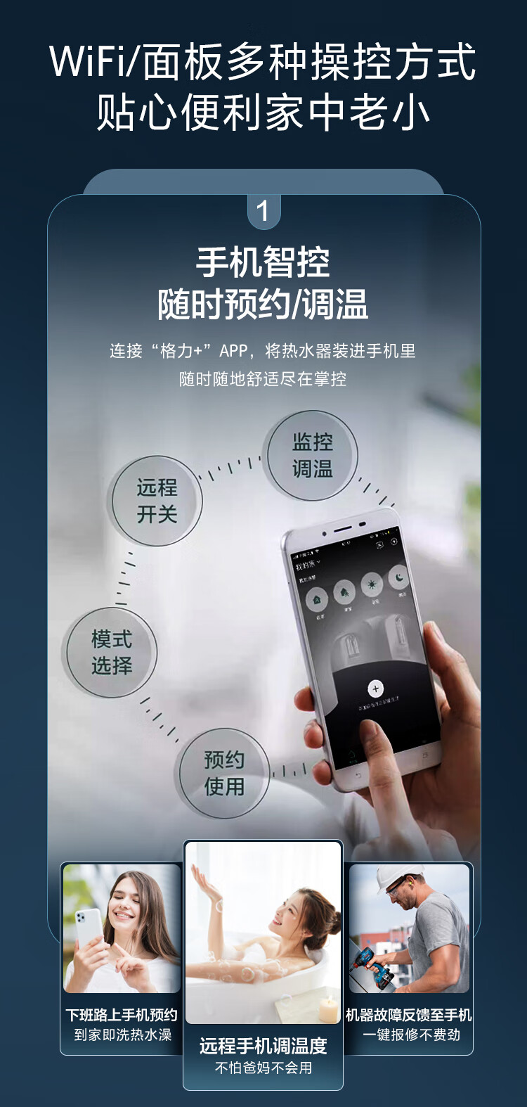 • 特色: WIFI智能,预约洗浴,双感温包控制