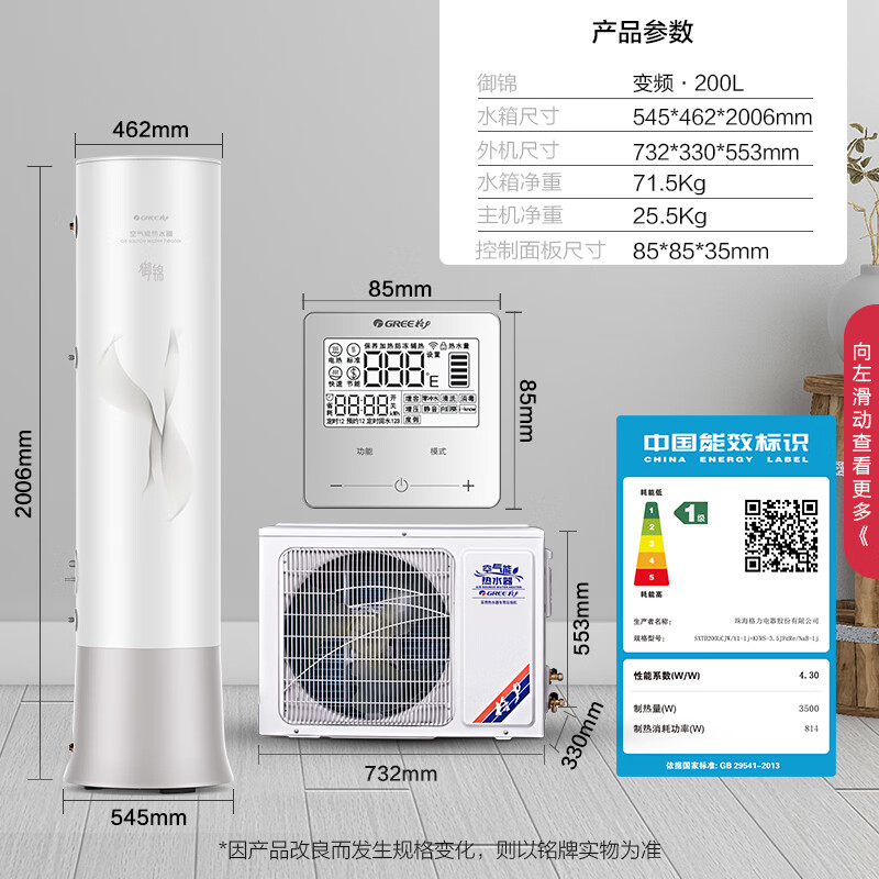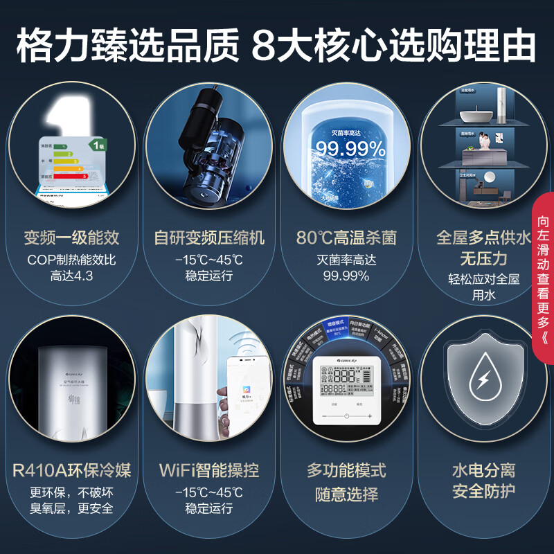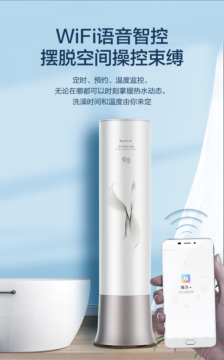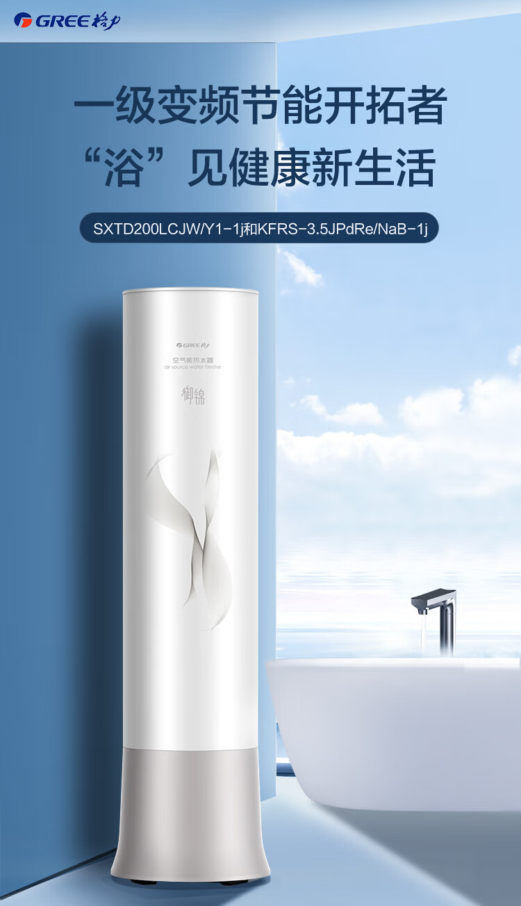 格力(GREE)空气能热水器200升御锦变频超一级能效家用80℃全屋热水省电辅热WiFi智能商用热泵新能源安全节能