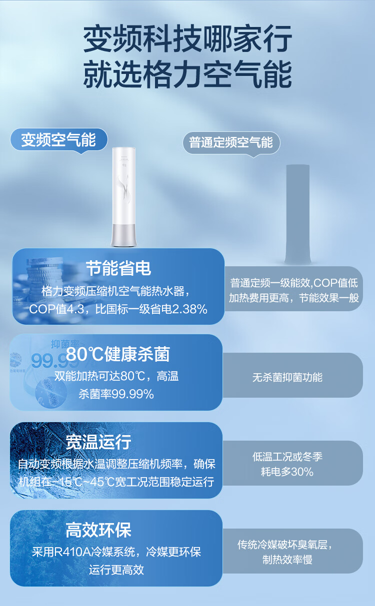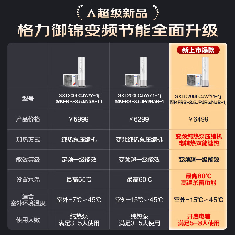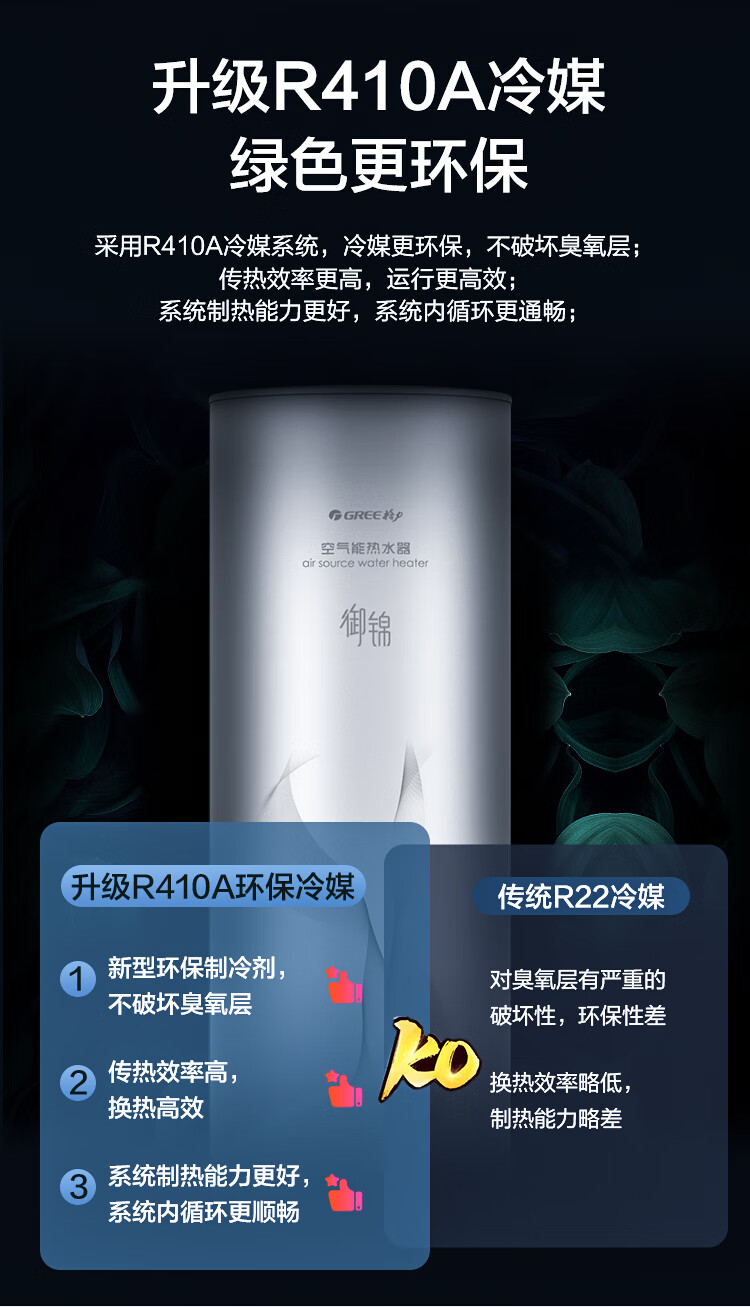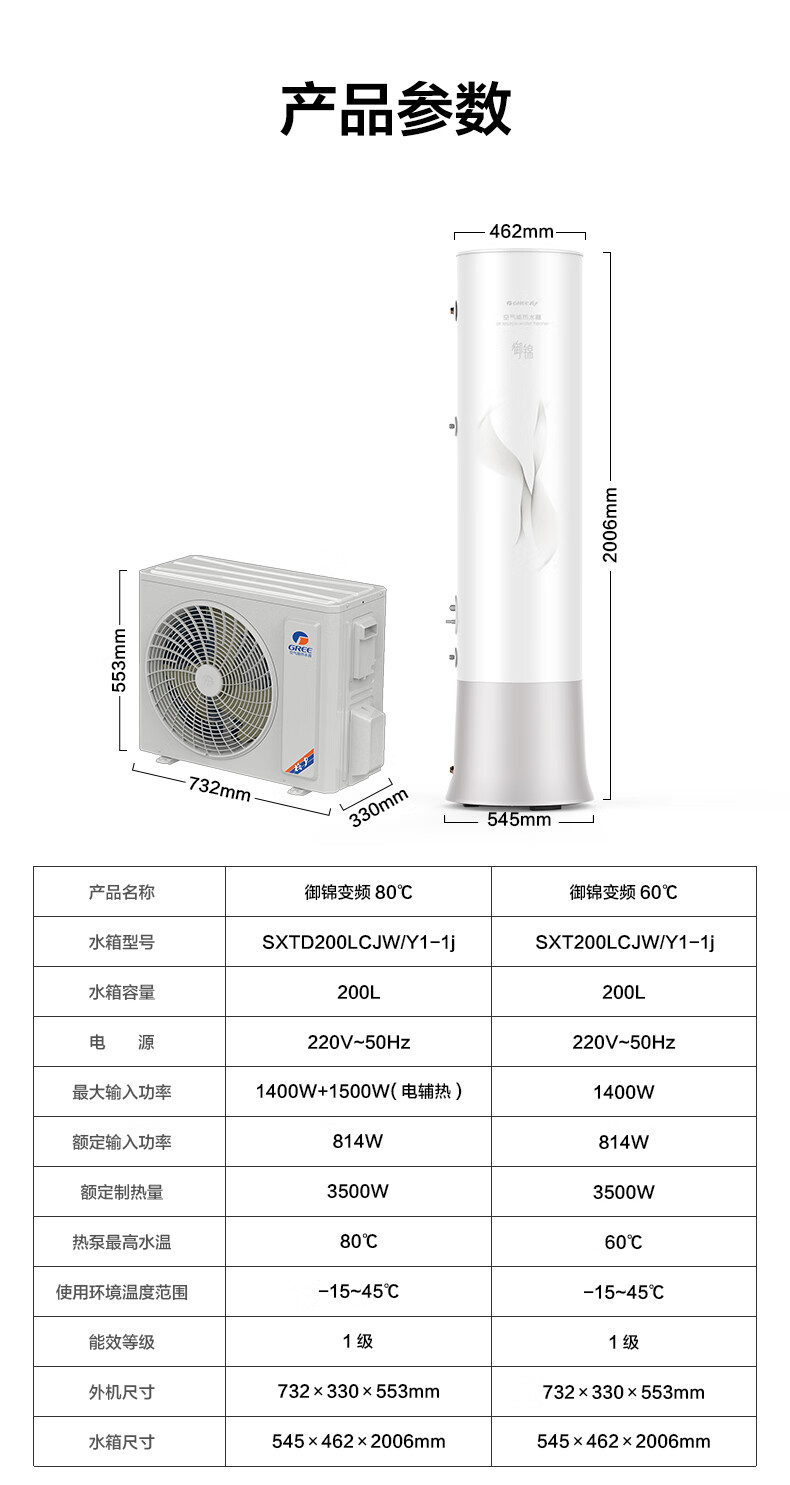 格力(GREE)空气能热水器200升御锦变频超一级能效家用80℃全屋热水省电辅热WiFi智能商用热泵新能源安全节能