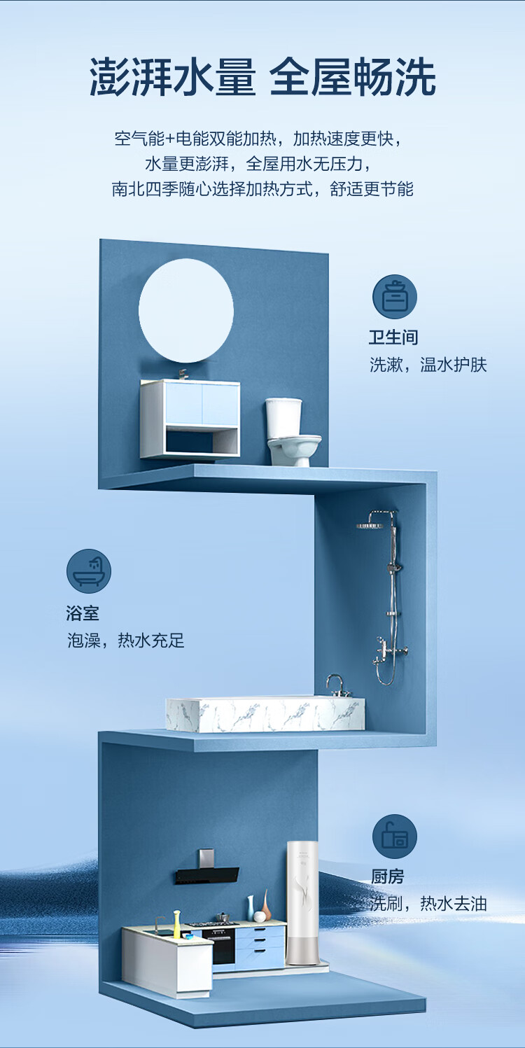 • 特色: WIFI智能,预约洗浴,双感温包控制