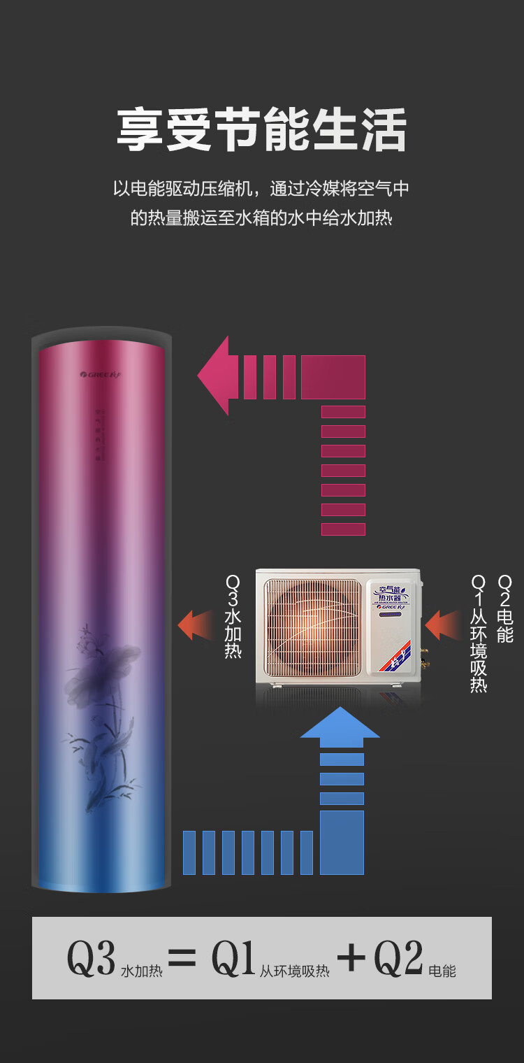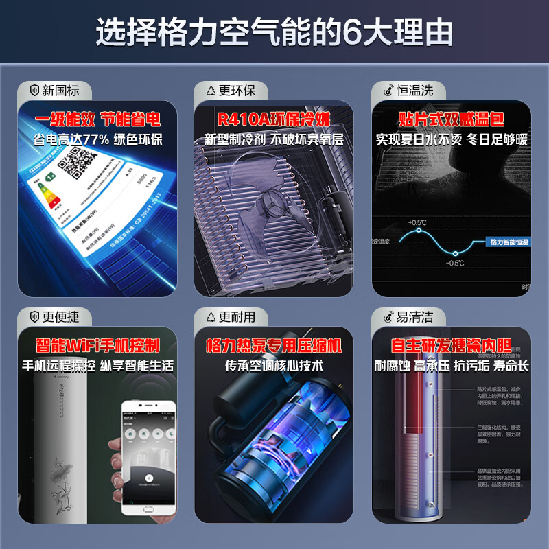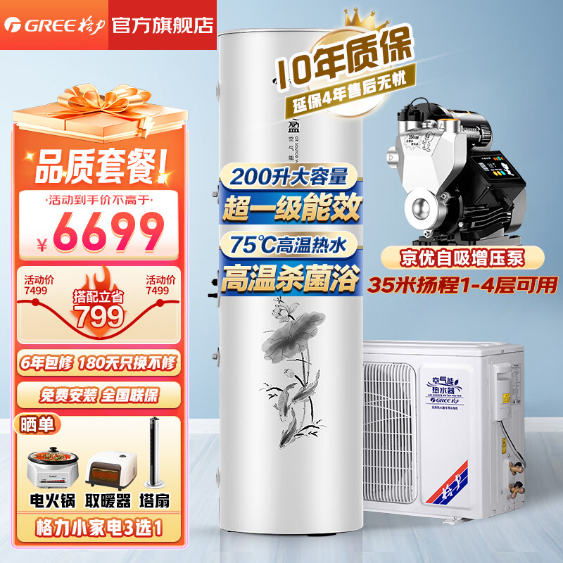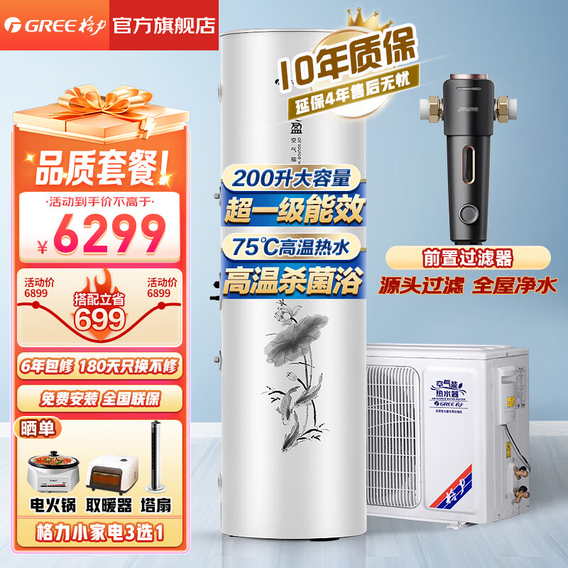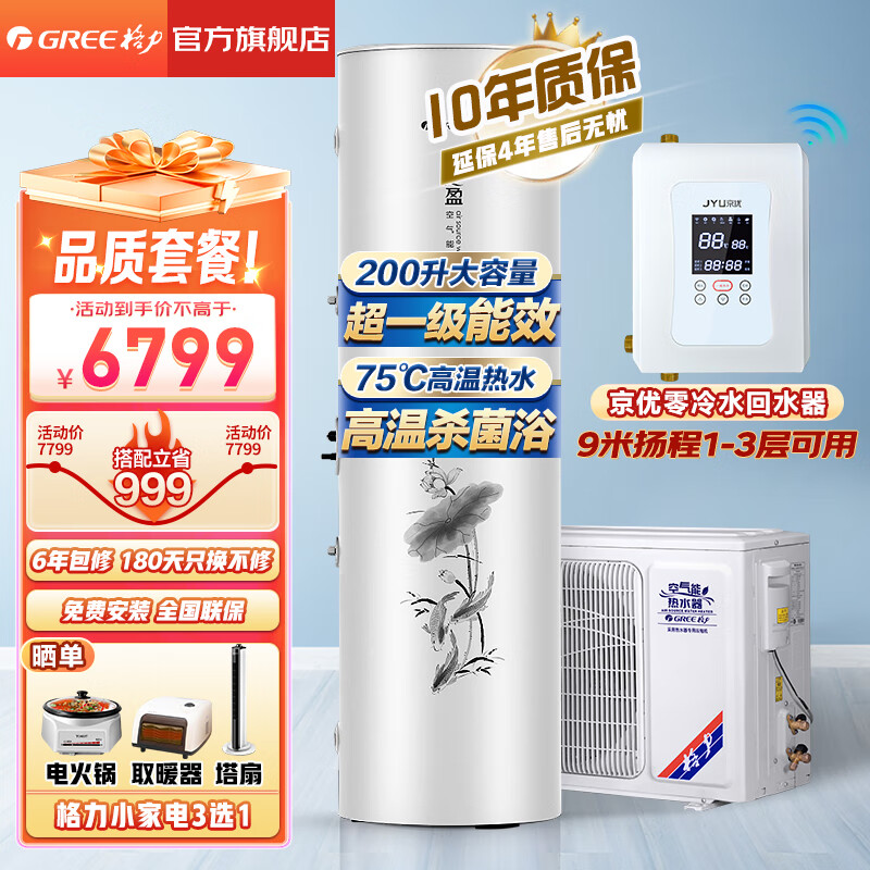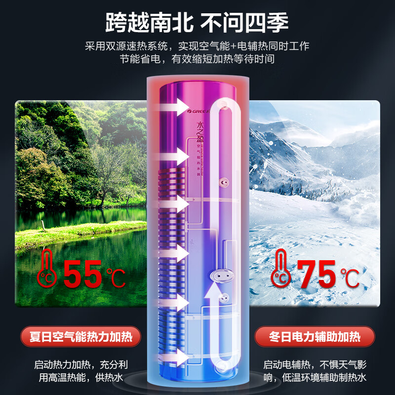 格力(GREE)空气能热水器200升家用一级能效商用大容量 省电75℃高水温 智能WiFi自带电辅热节能自清洁搪瓷
