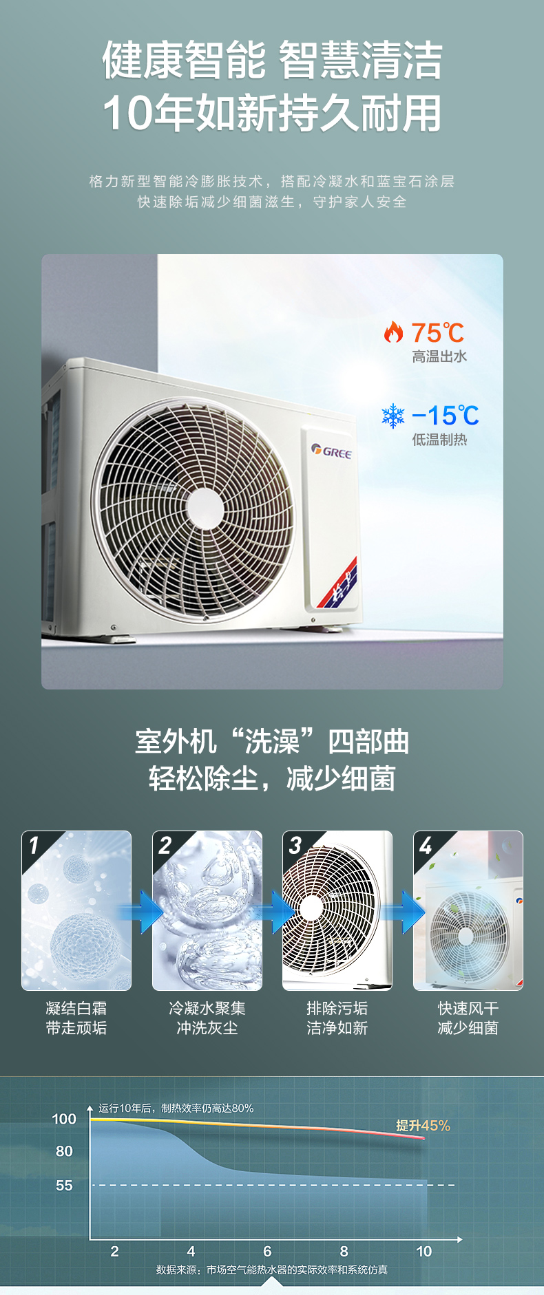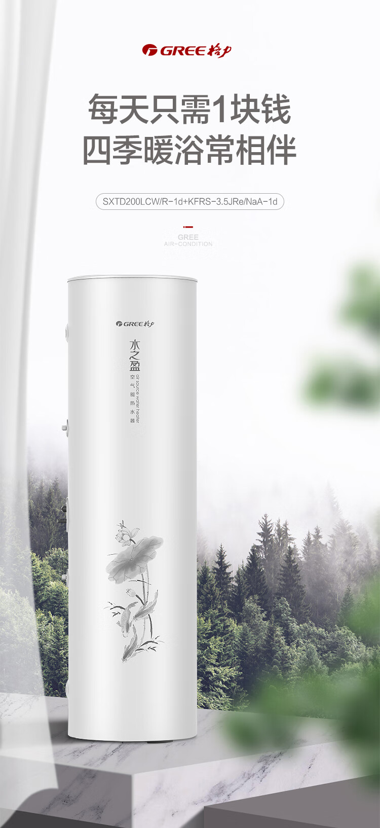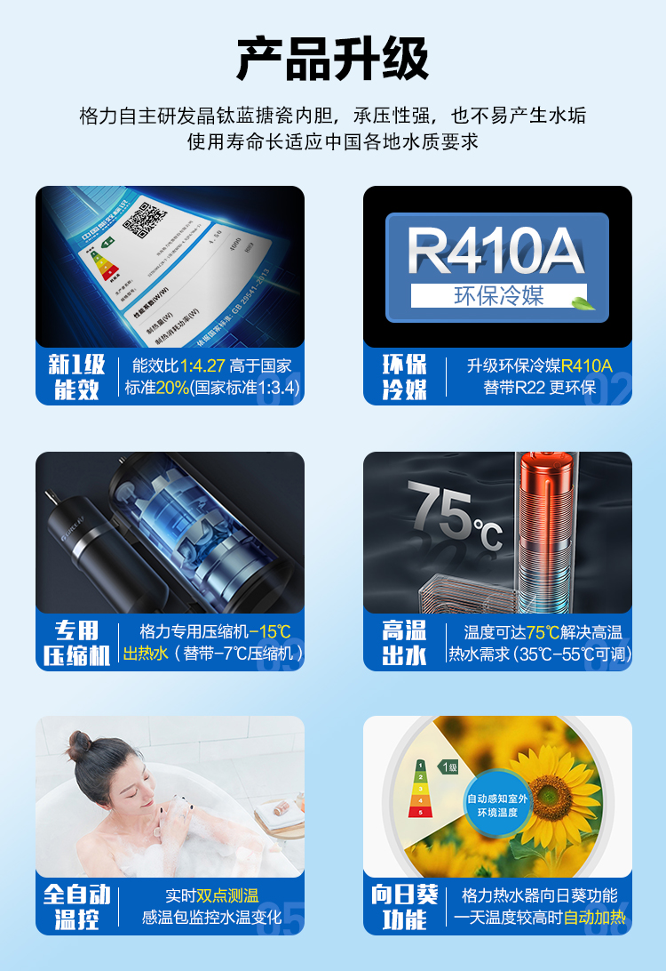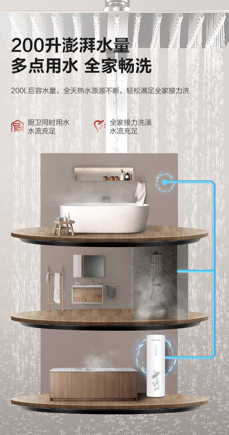格力(GREE)空气能热水器200升家用一级能效商用大容量 省电75℃高水温 智能WiFi自带电辅热节能自清洁搪瓷
