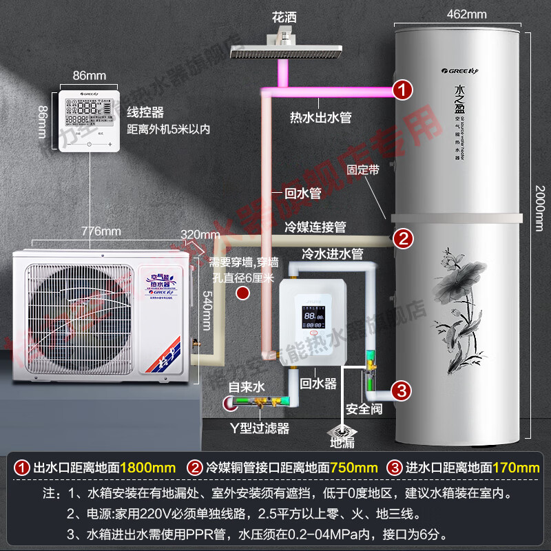• 特色: WIFI智能,电辅加热,双感温包控制