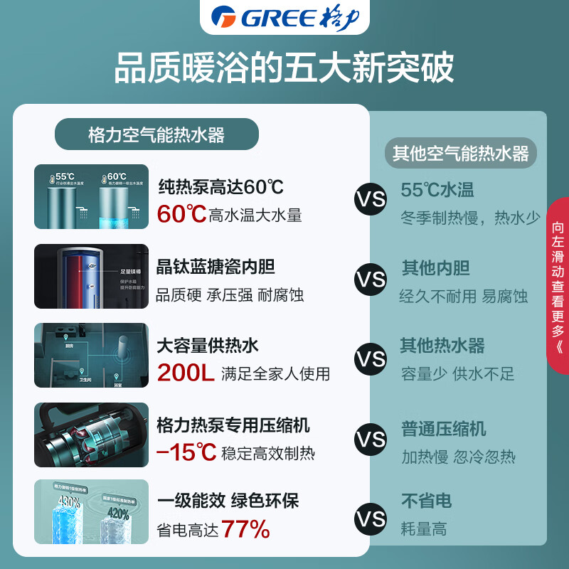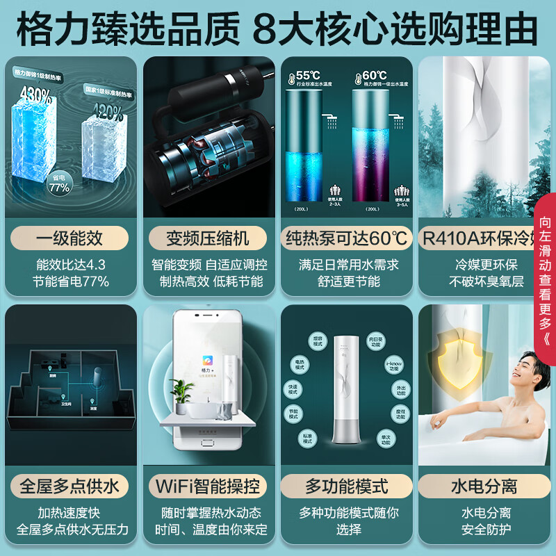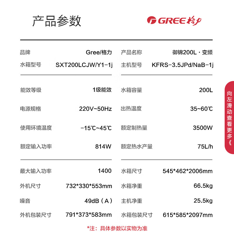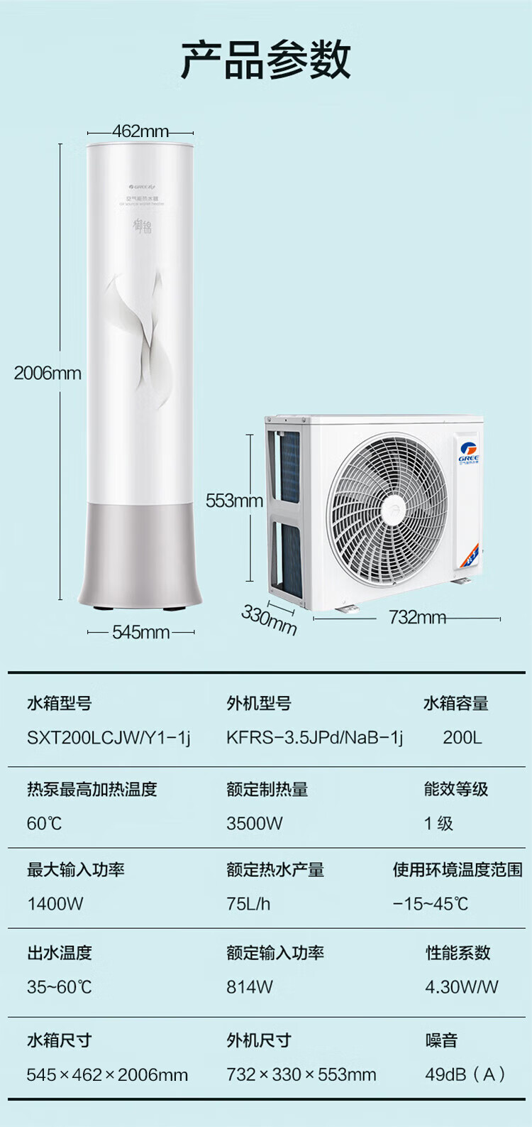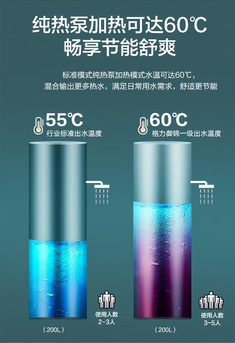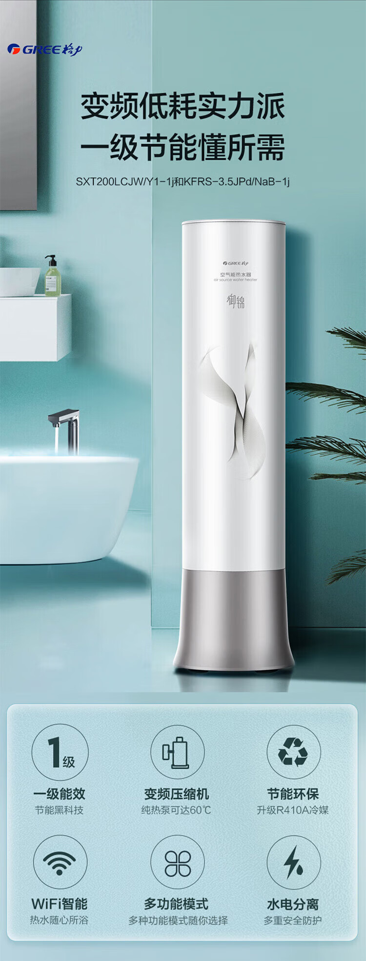 格力(GREE)空气能热水器家用200L 超一级能效纯热泵 智能WIFI超级节能环保 御锦变频 200升超一级变频南方性价比优选