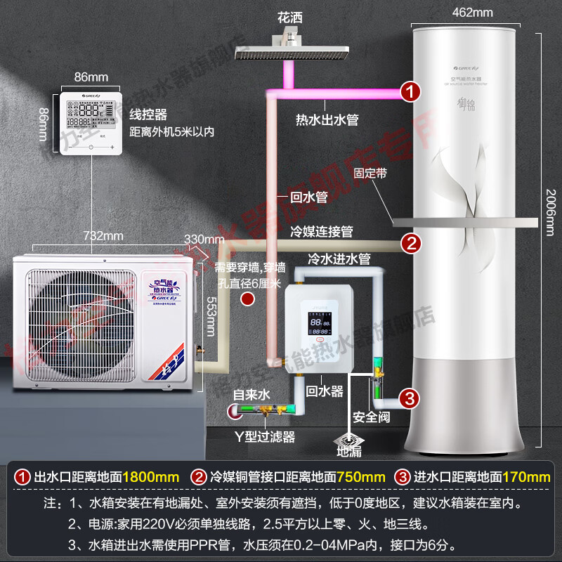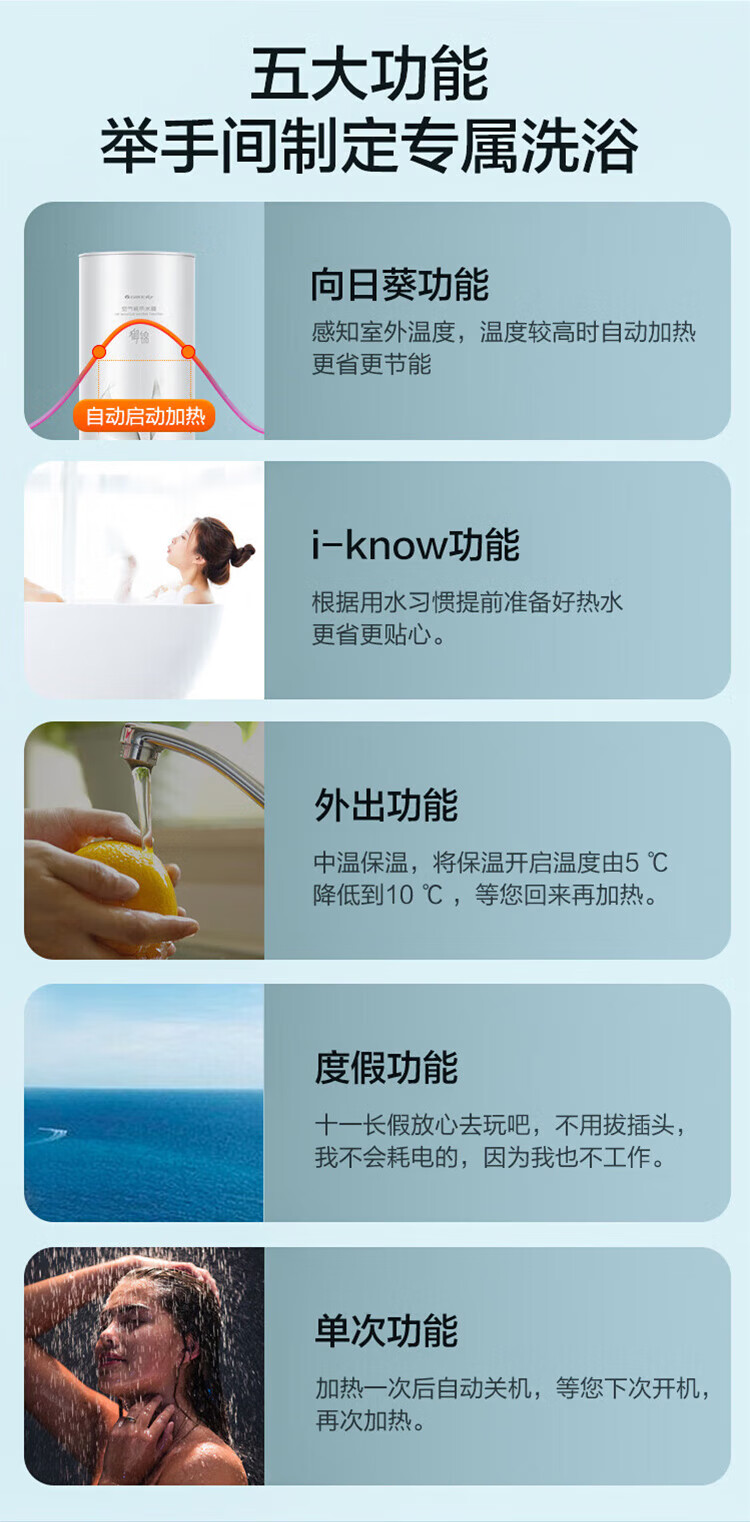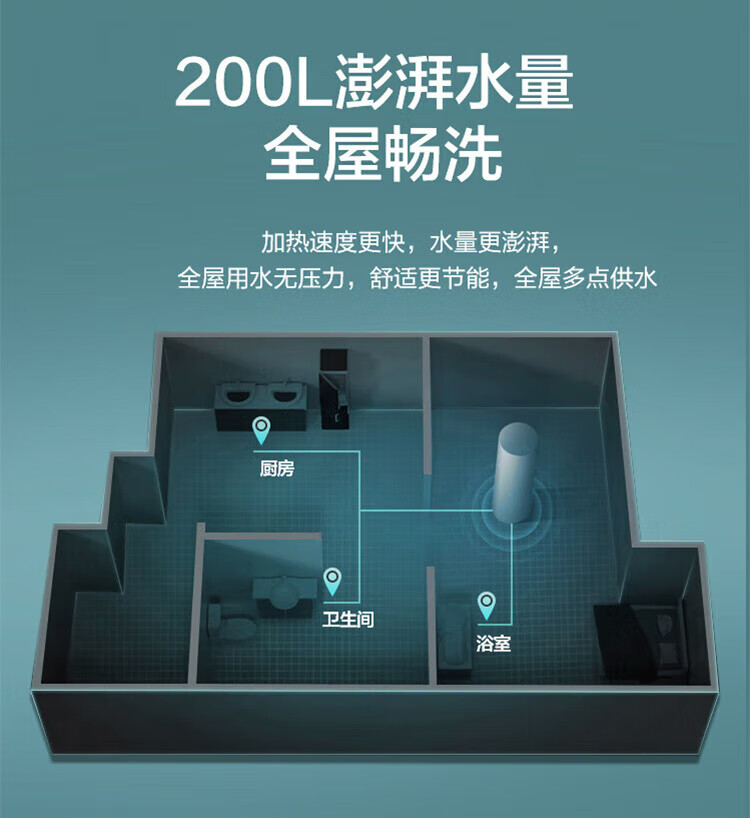 • 特色: WIFI智能,预约洗浴,双感温包控制