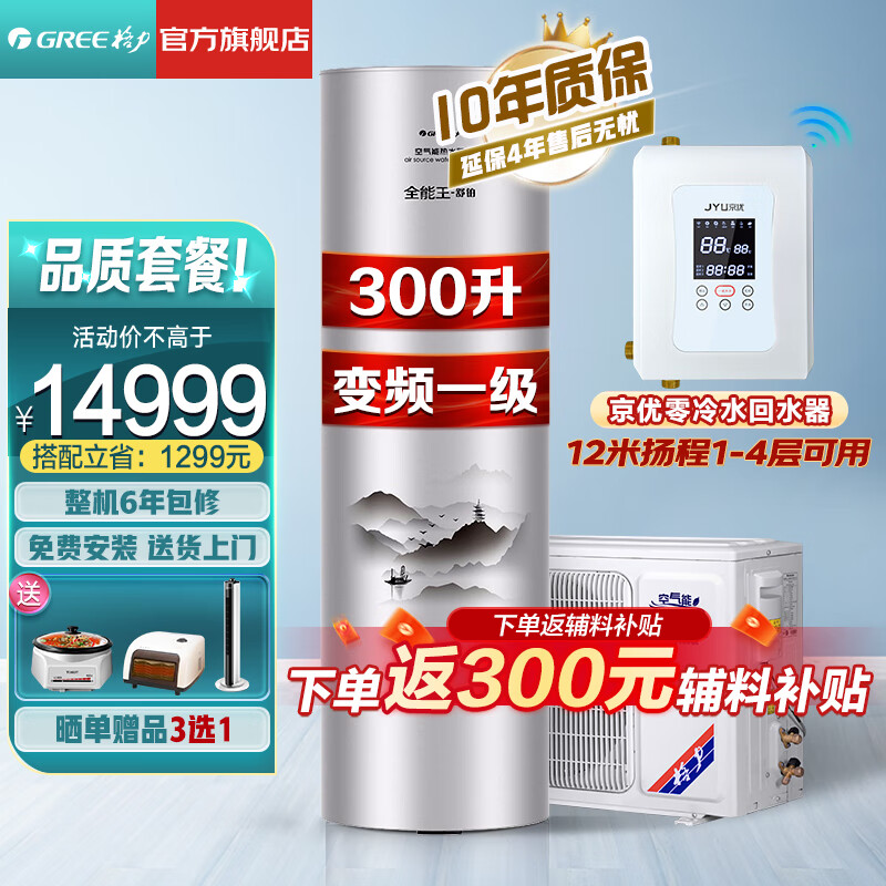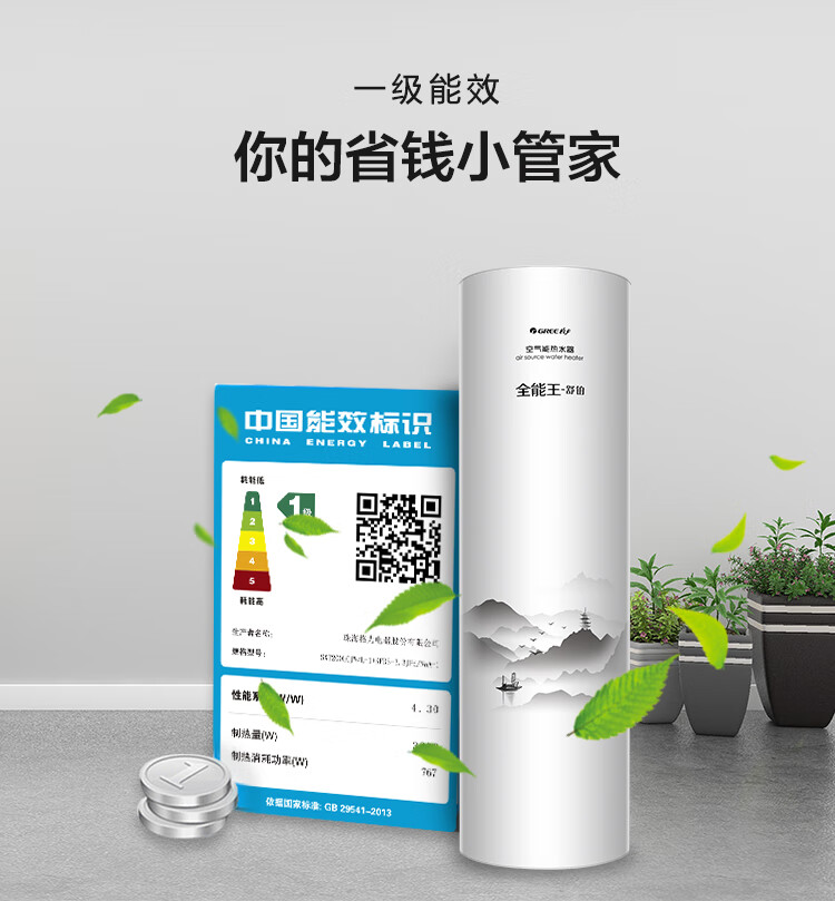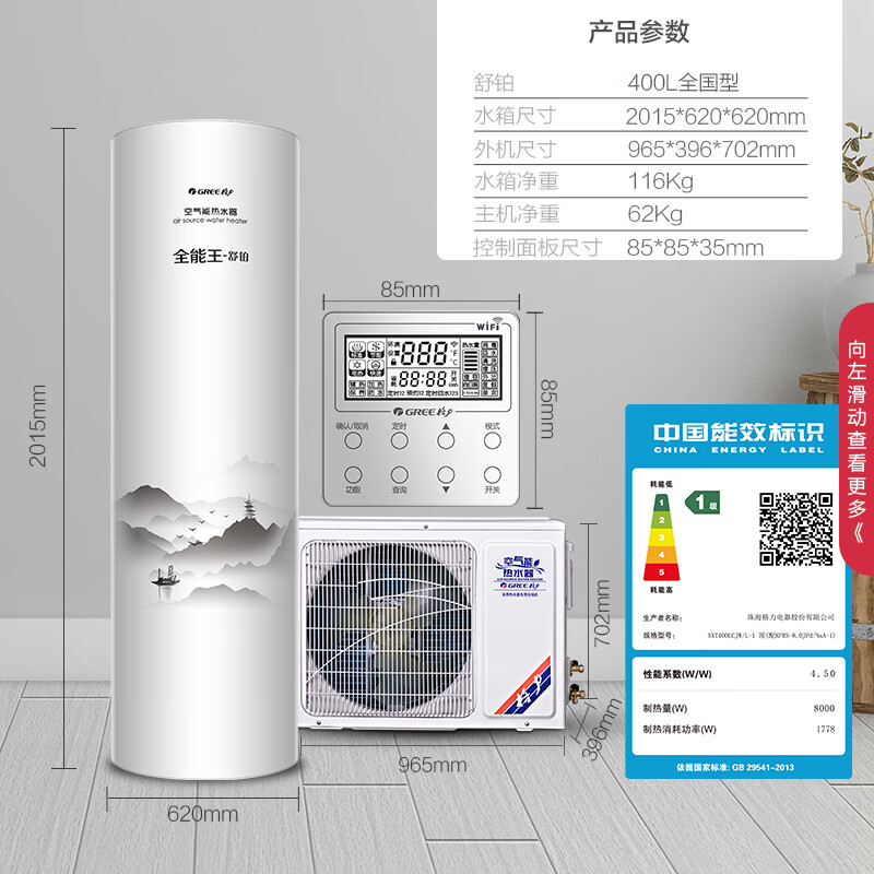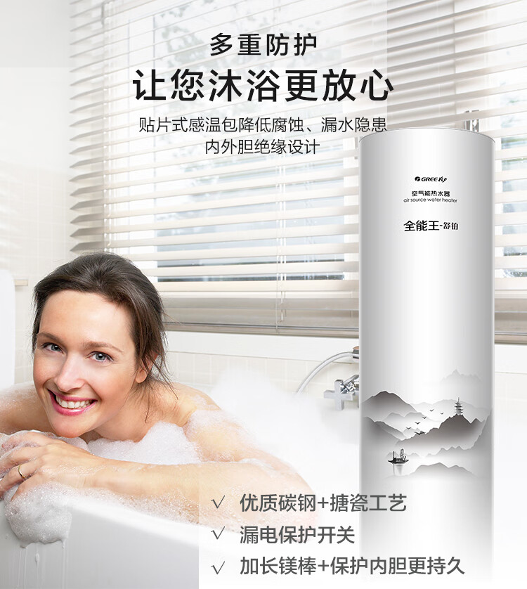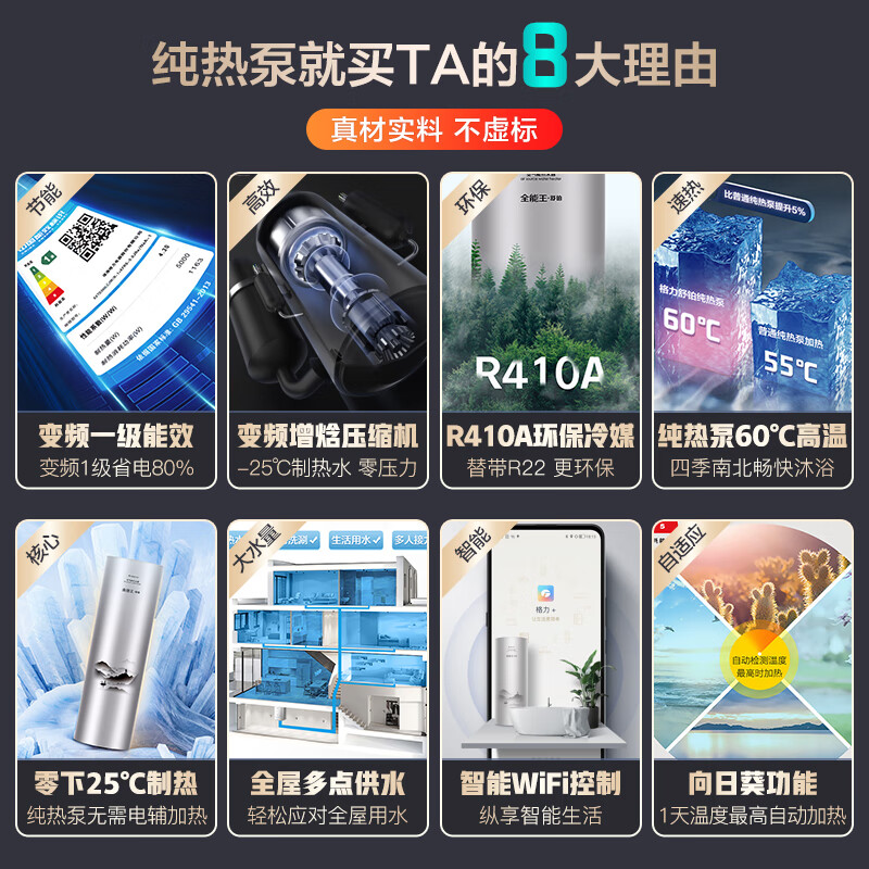 格力(GREE)空气能热水器家用 变频一级能效 智能WiFi -25℃制热 纯热泵60℃水温 水电分离南北通用舒铂