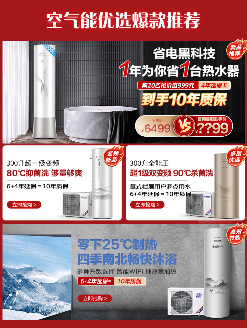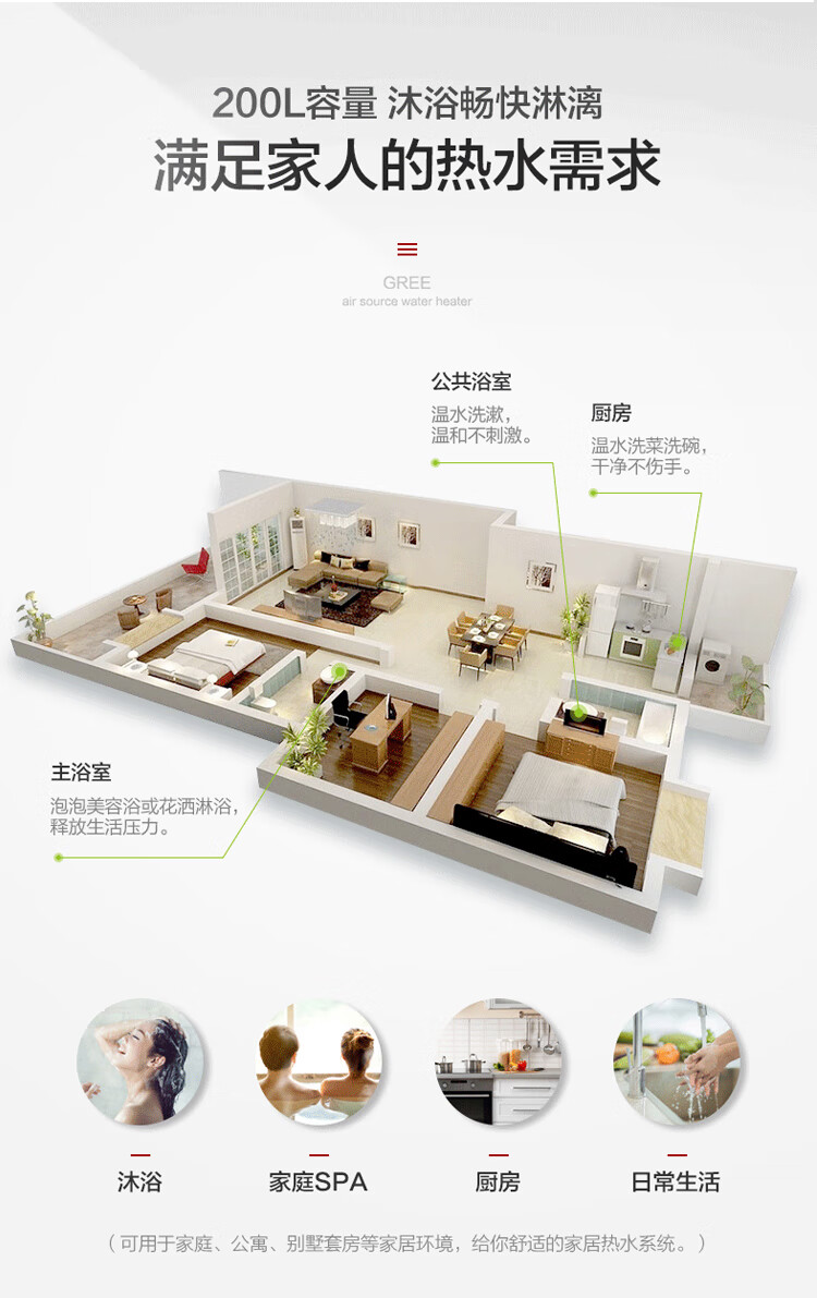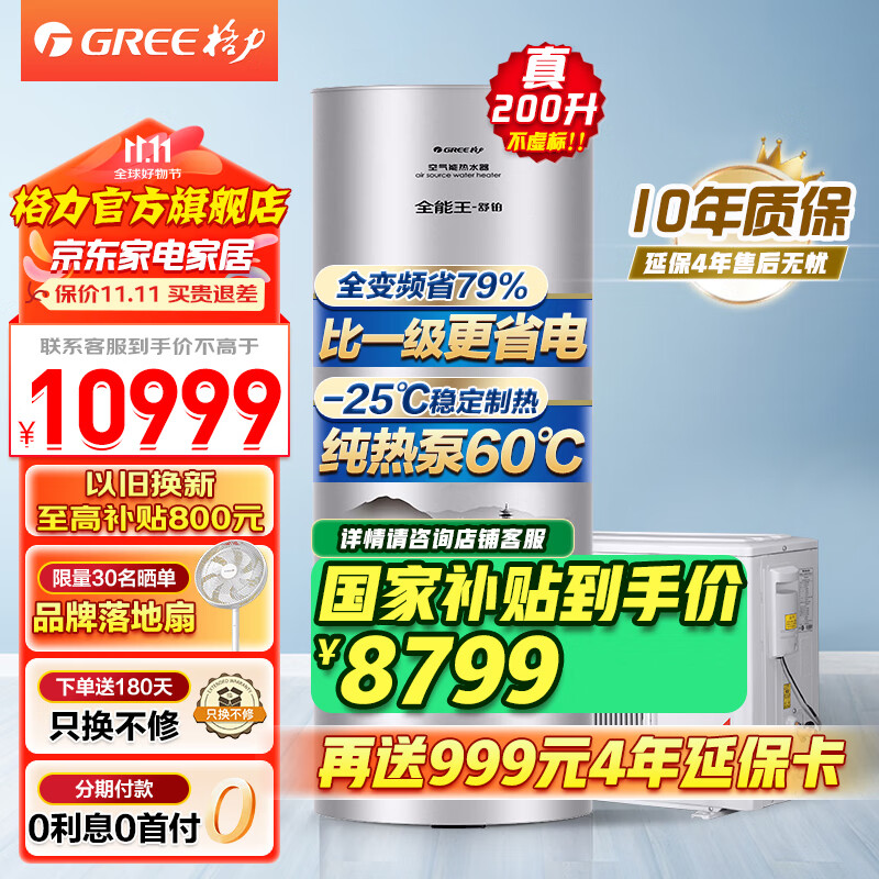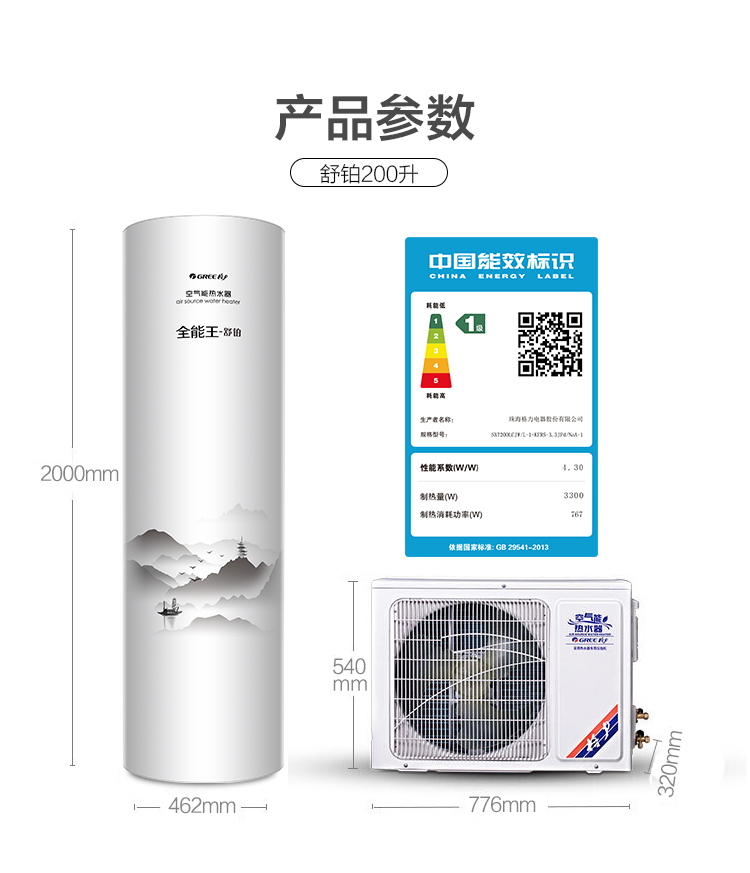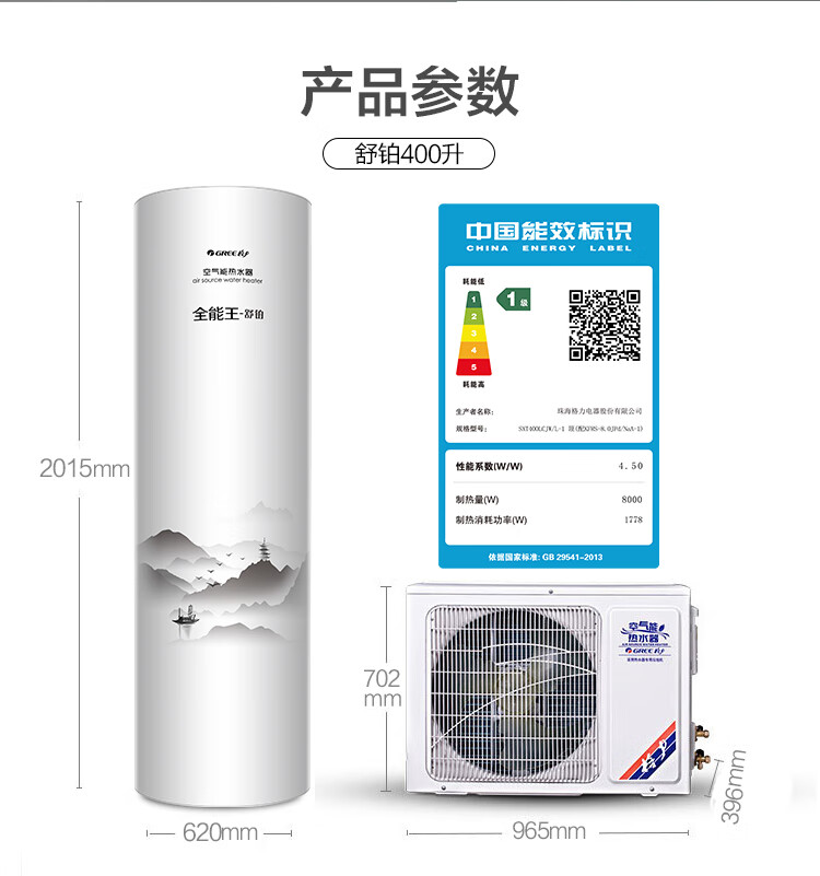 格力(GREE)空气能热水器家用 变频一级能效 智能WiFi -25℃制热 纯热泵60℃水温 水电分离南北通用舒铂