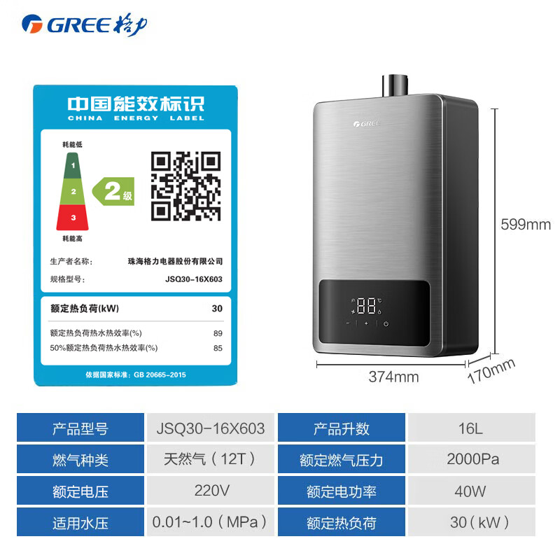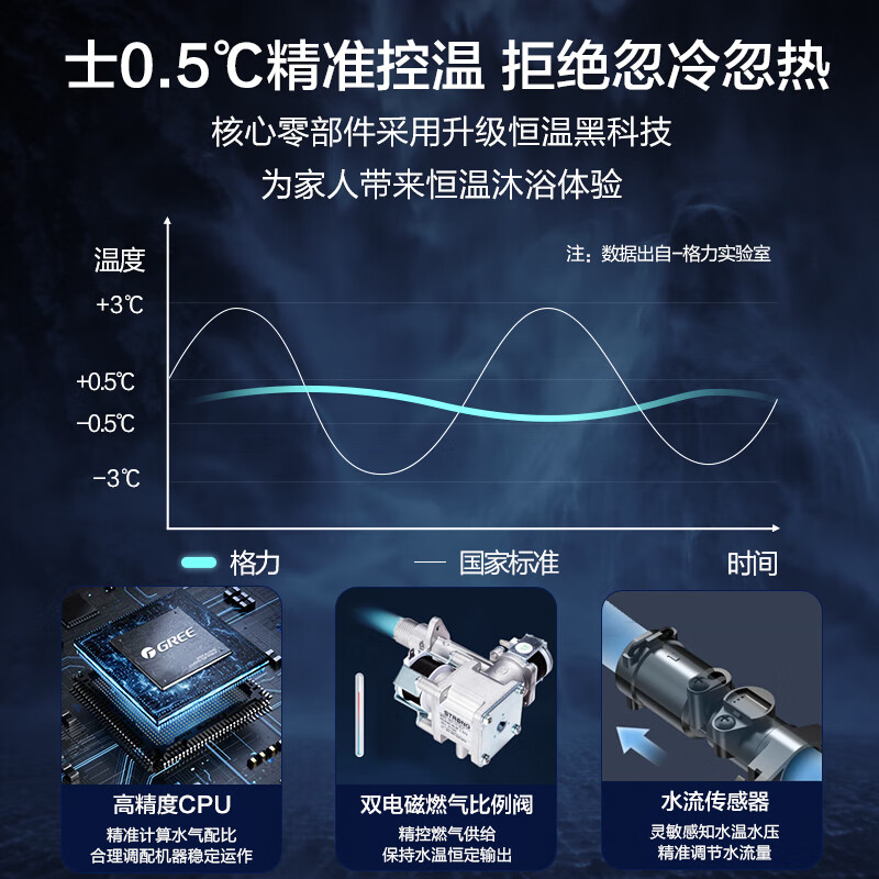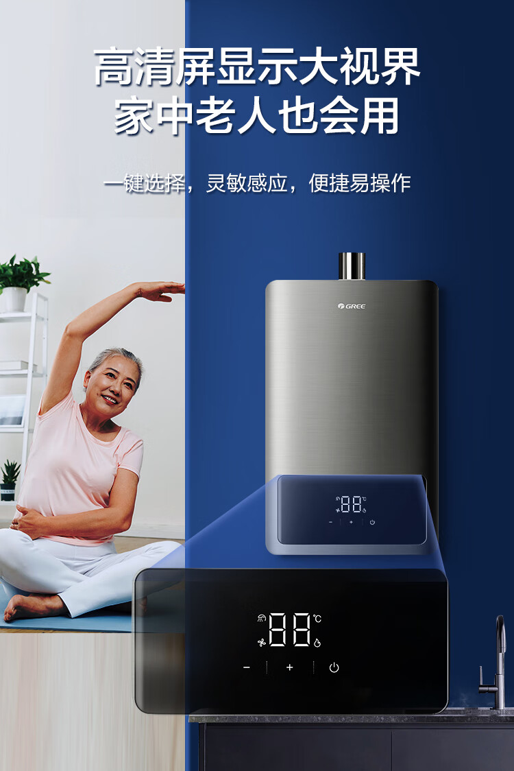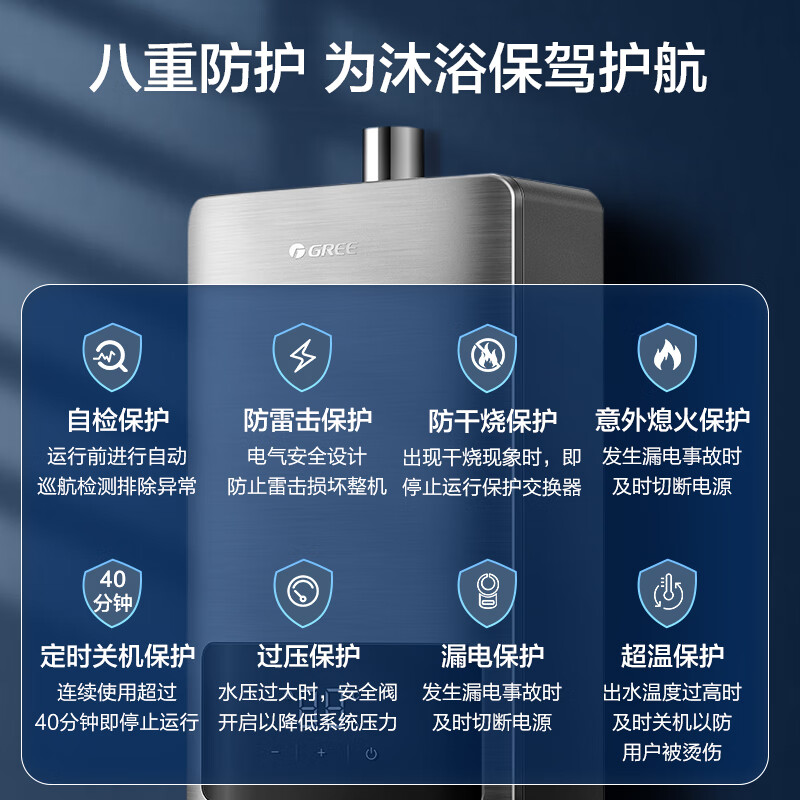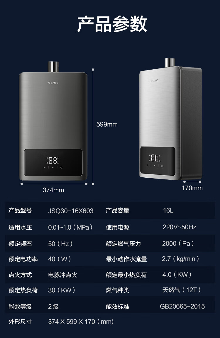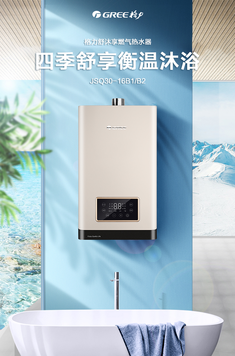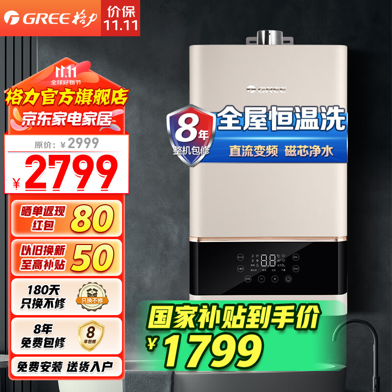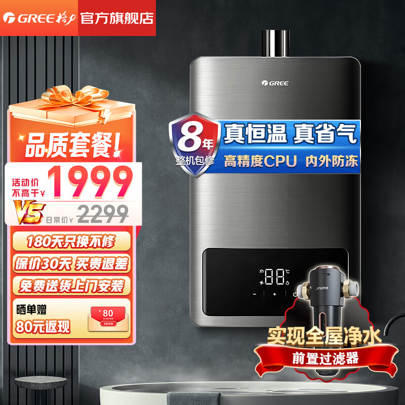 格力(GREE)燃气热水器16升家用天然气恒温节能智能变频高风压水伺服磁化净水 水气双调防冻