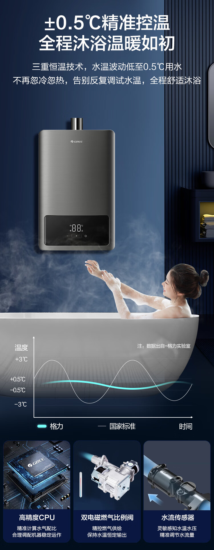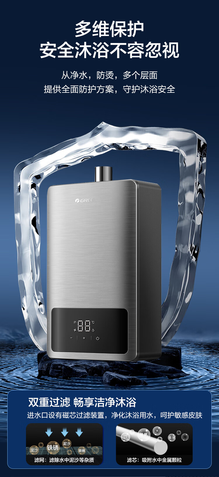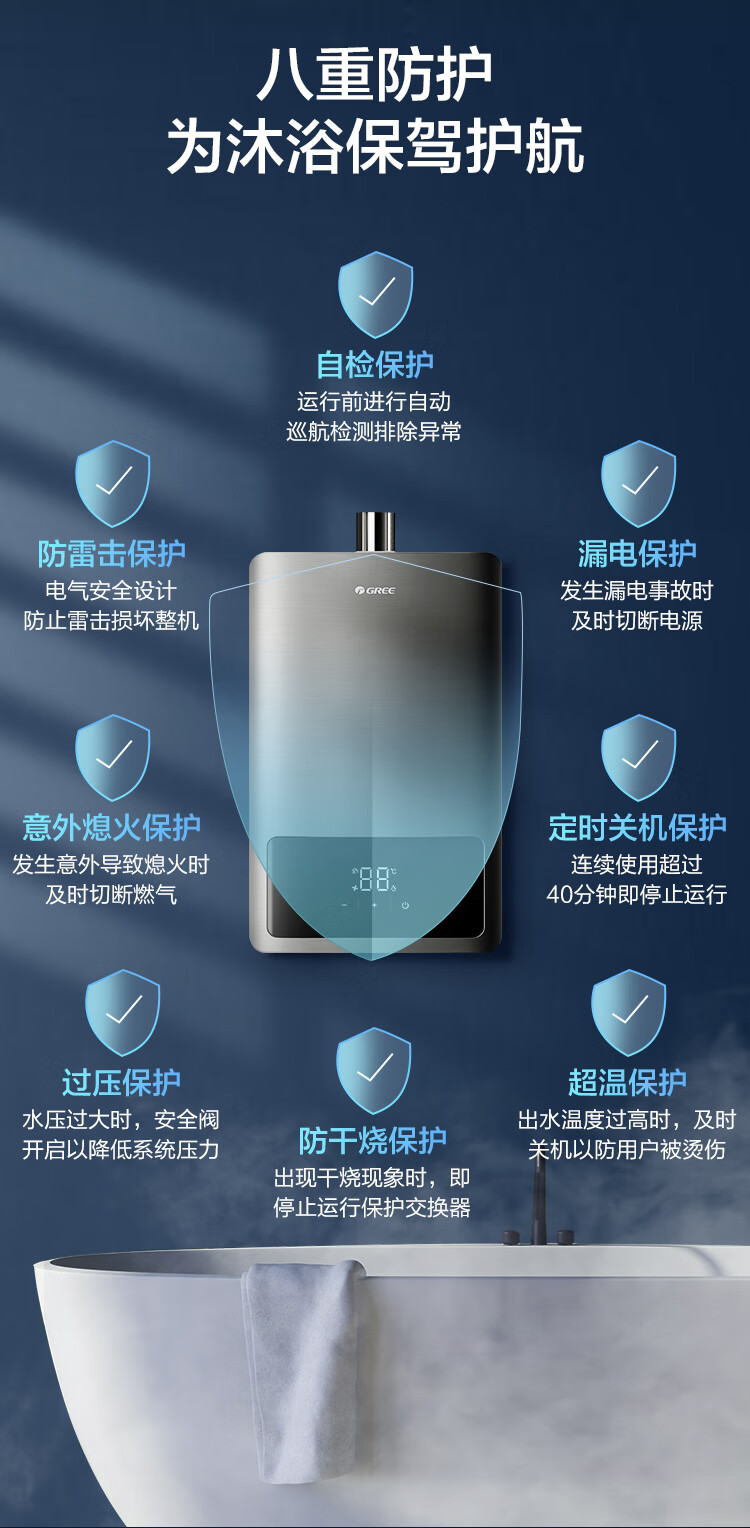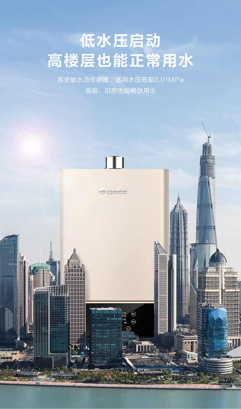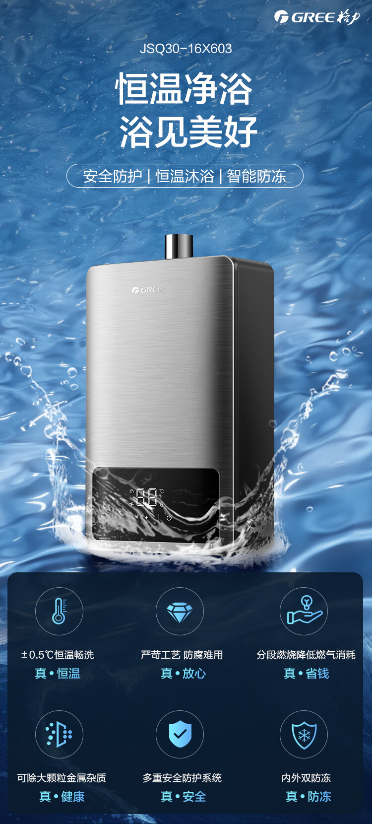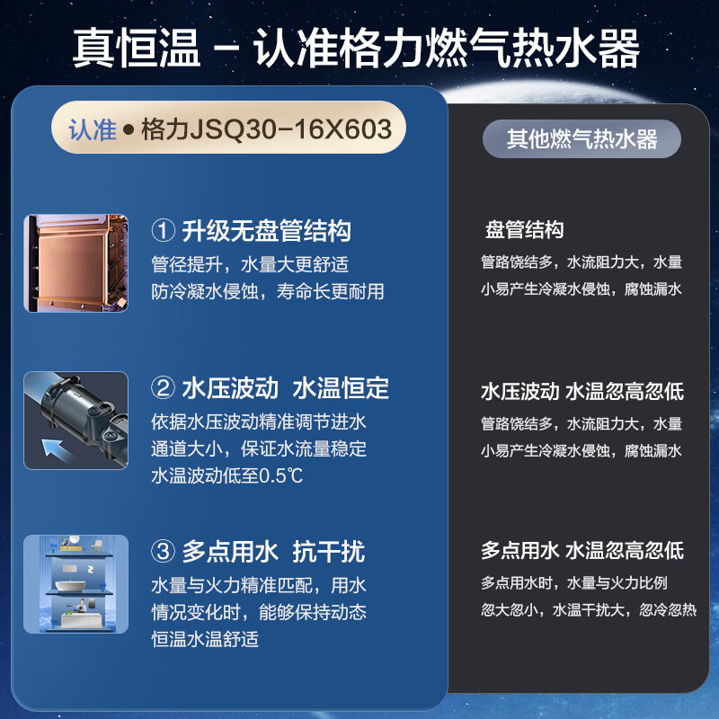 格力(GREE)燃气热水器16升家用天然气恒温节能智能变频高风压水伺服磁化净水 水气双调防冻