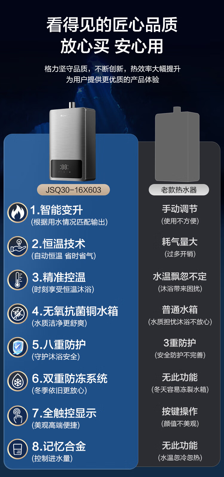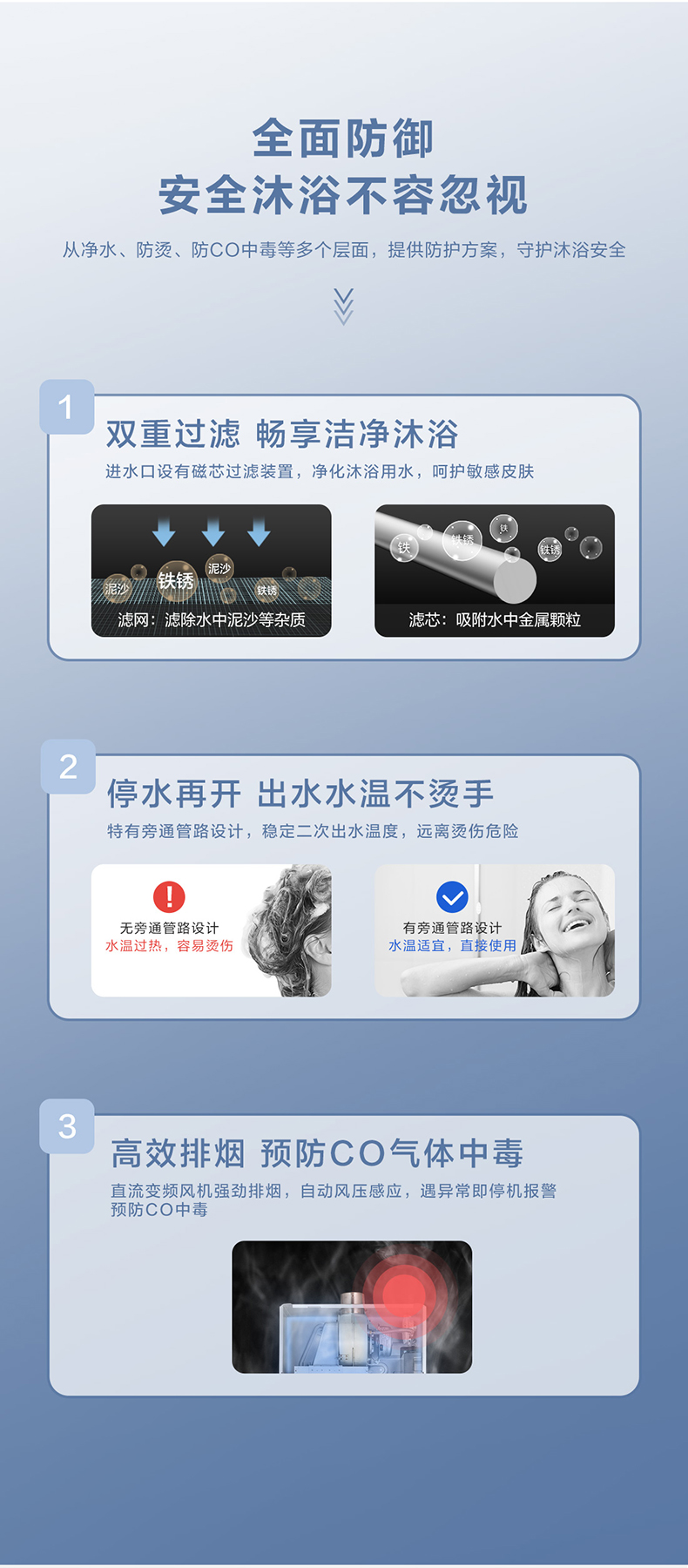 • 特征特质: 节能省气,静音,CO预警