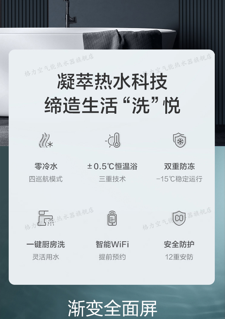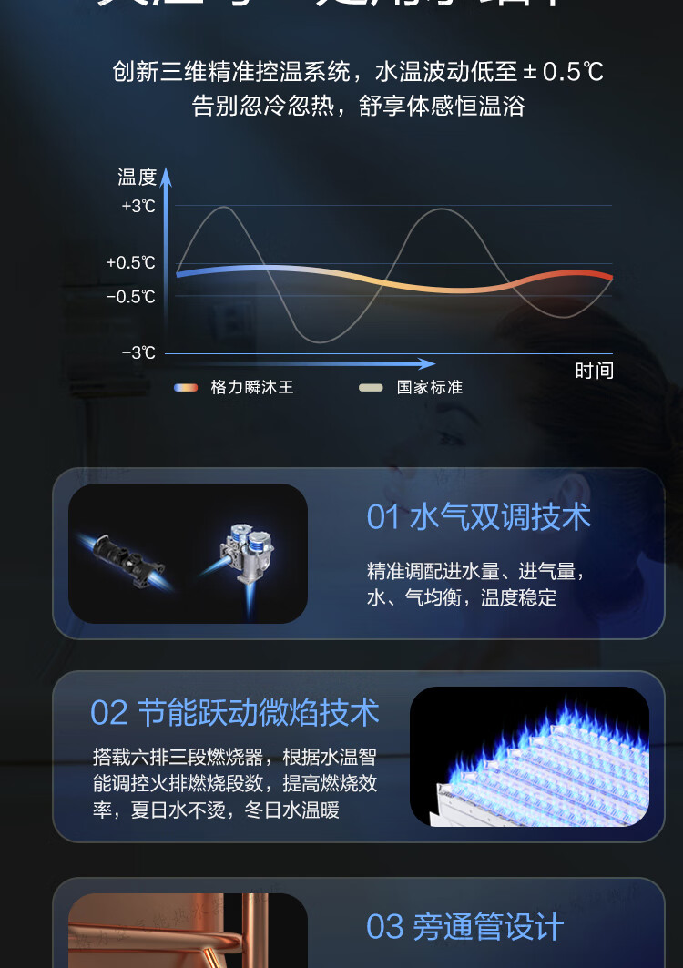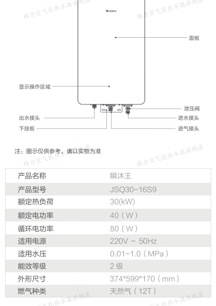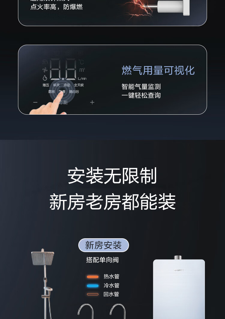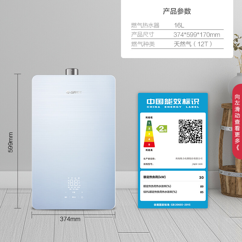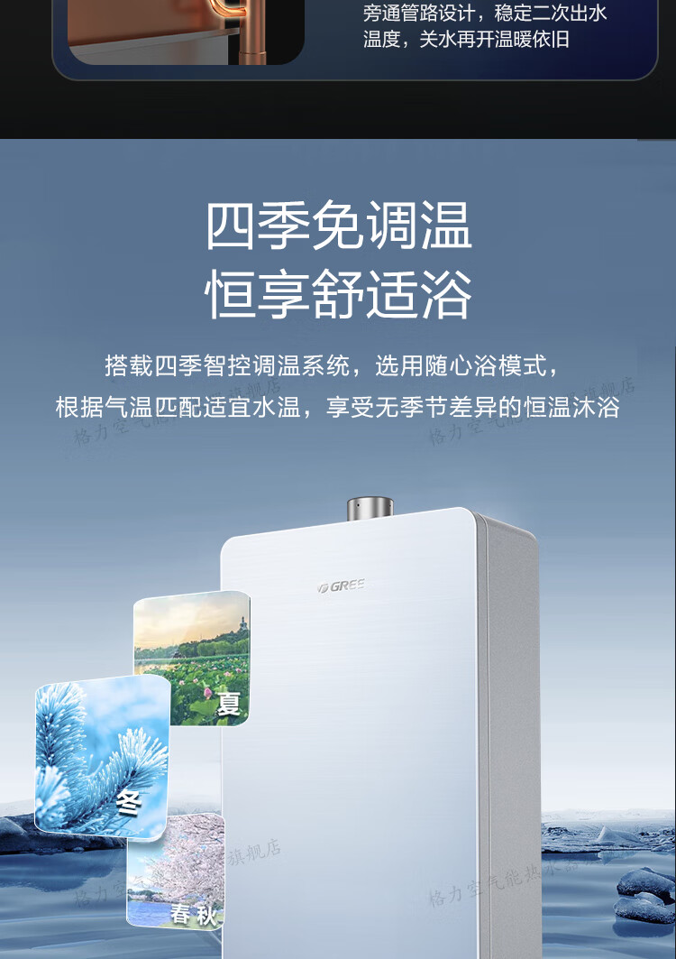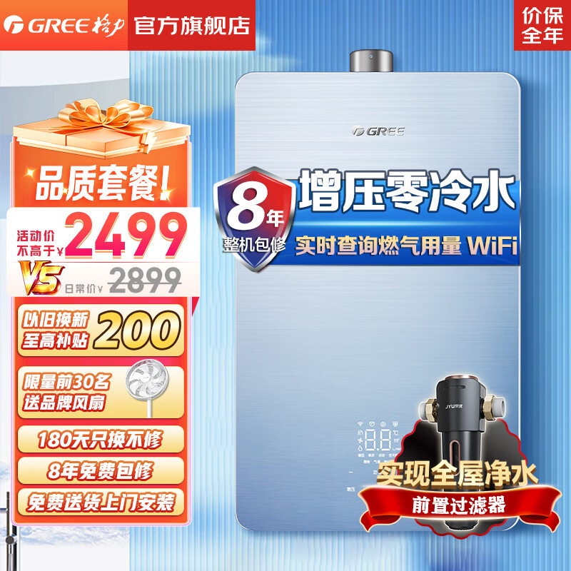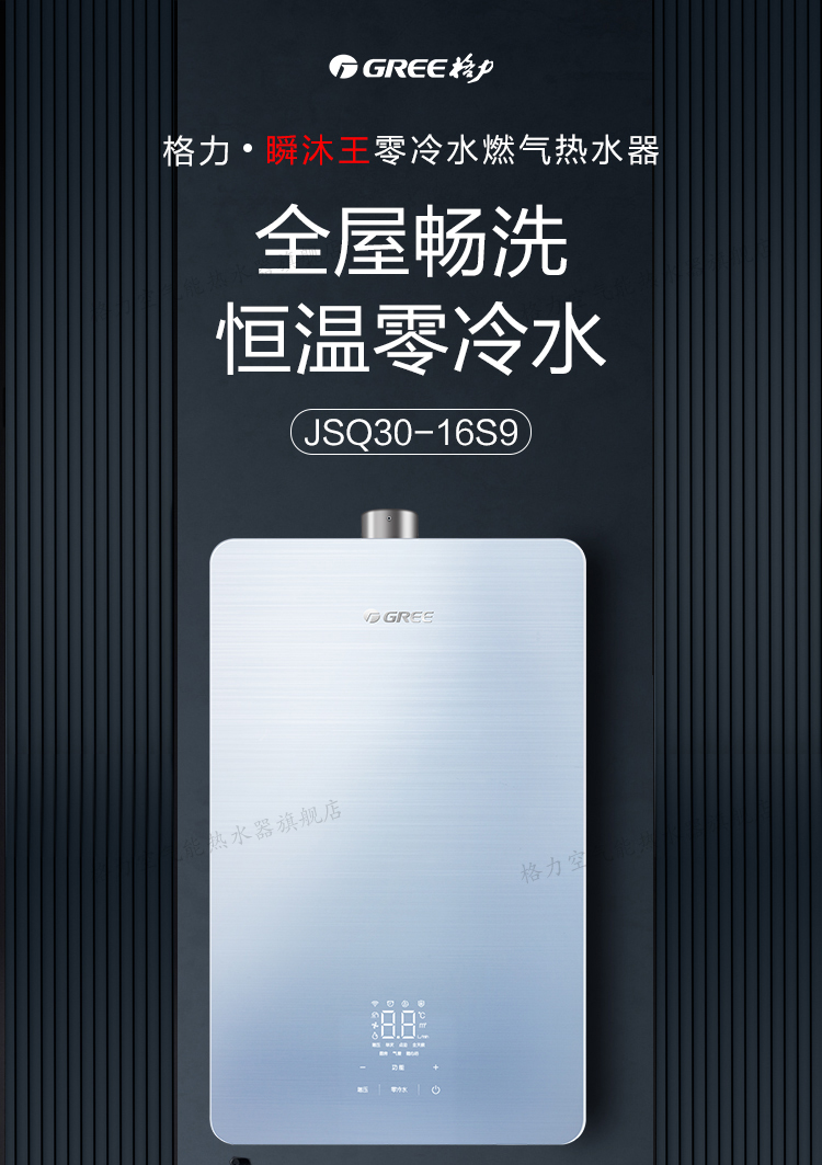 格力(GREE)燃气热水器家用 天然气16L双变频节能水伺服恒温零冷水wifi智能防冻五重净化瞬沐王JSQ30-16S9