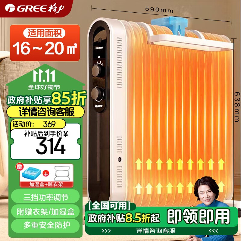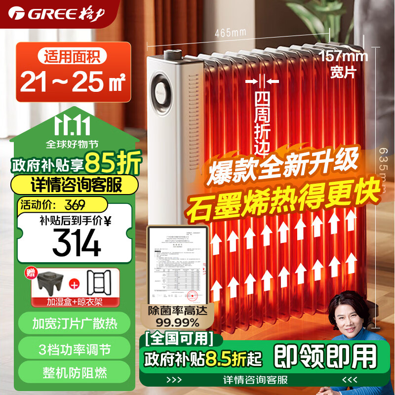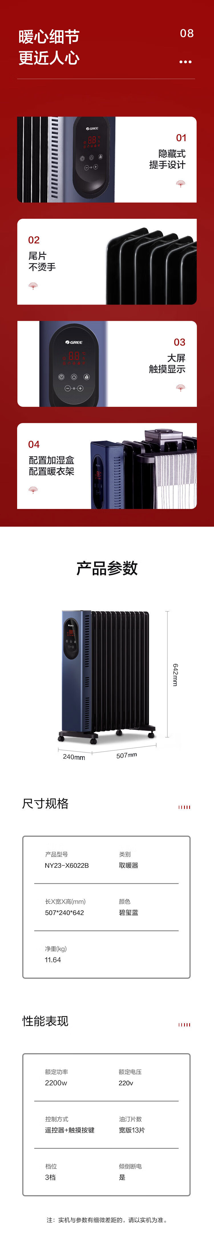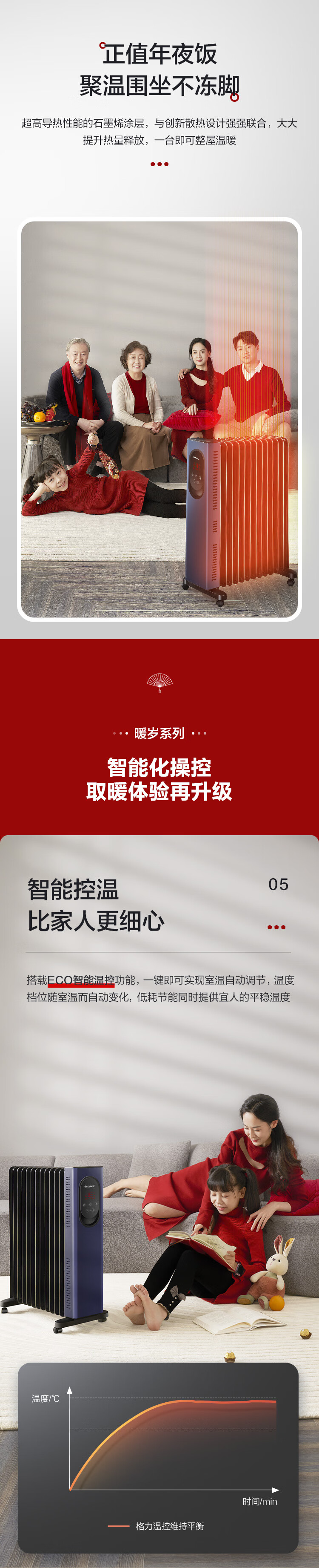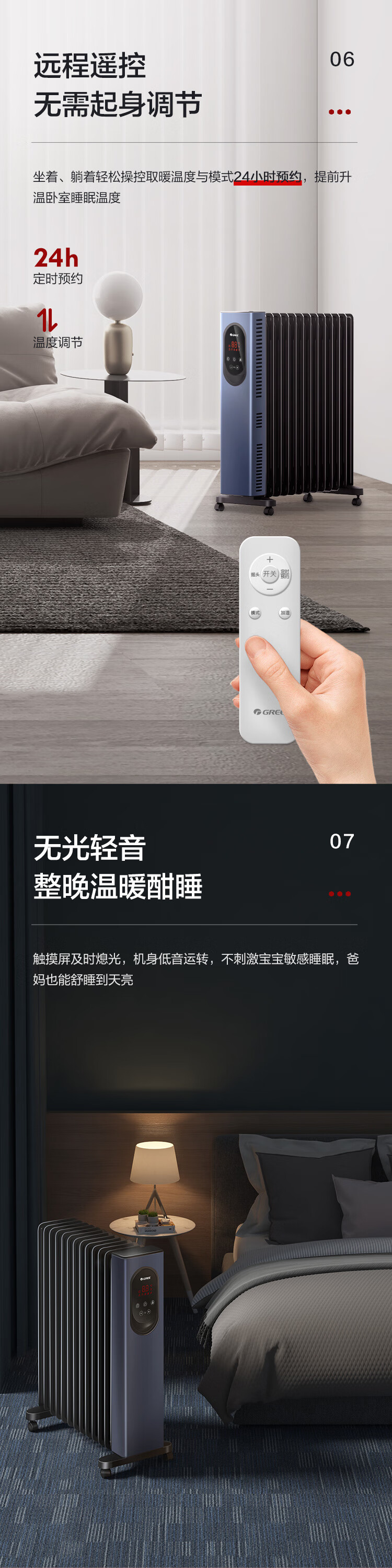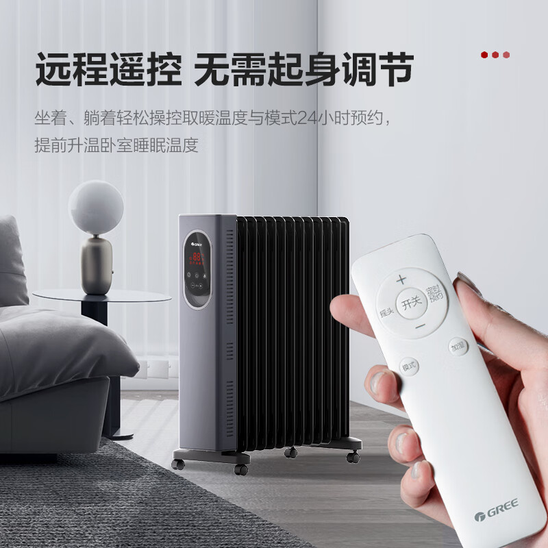 格力(GREE)【石墨烯速热】取暖器家用电暖器电暖气油汀取暖器大面积遥控电油汀13宽片恒温加湿 NY23-X6022B