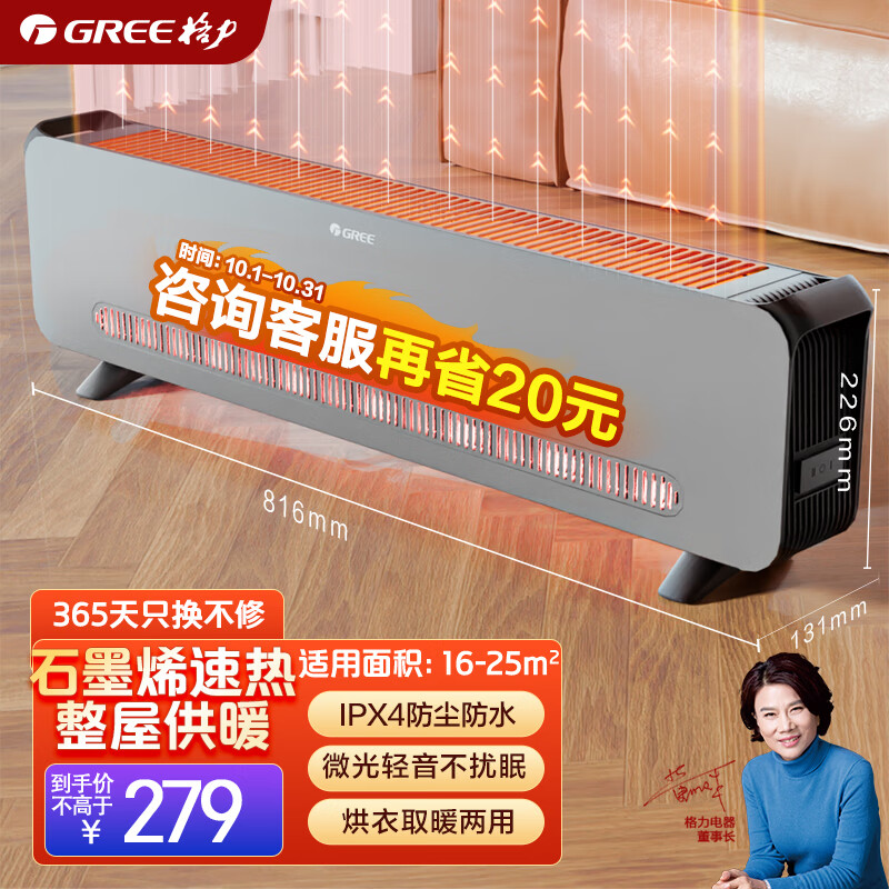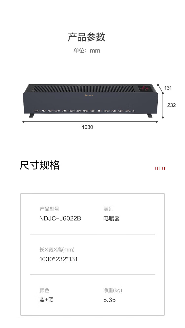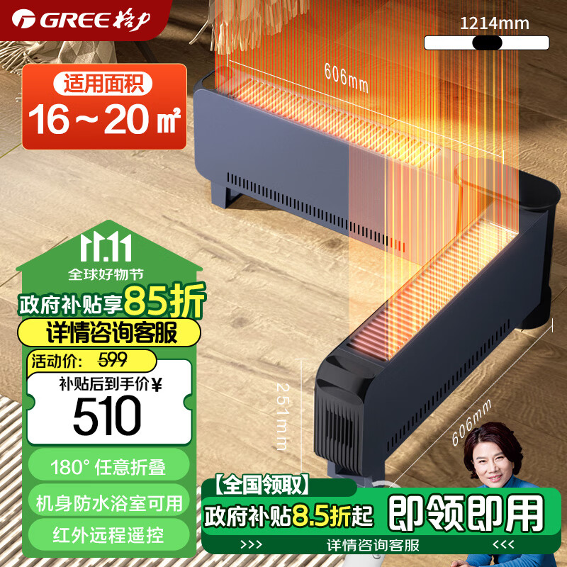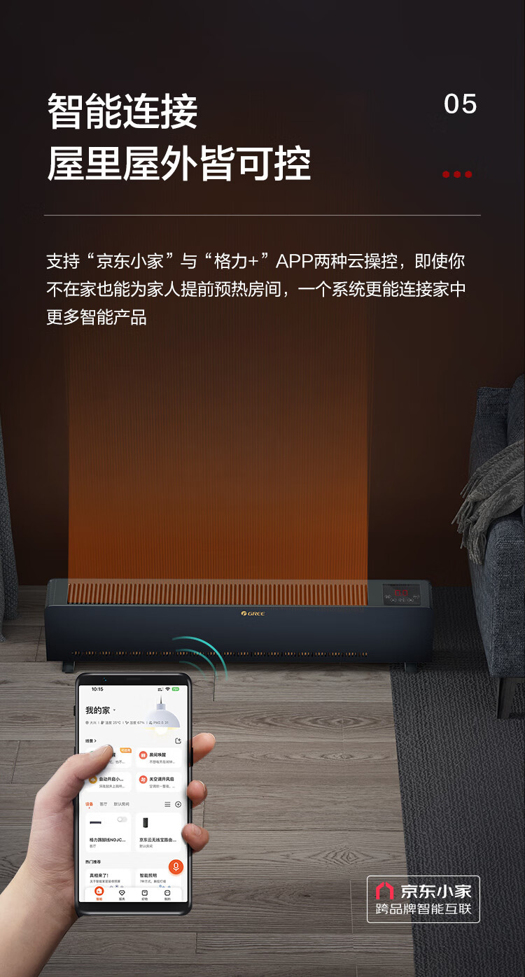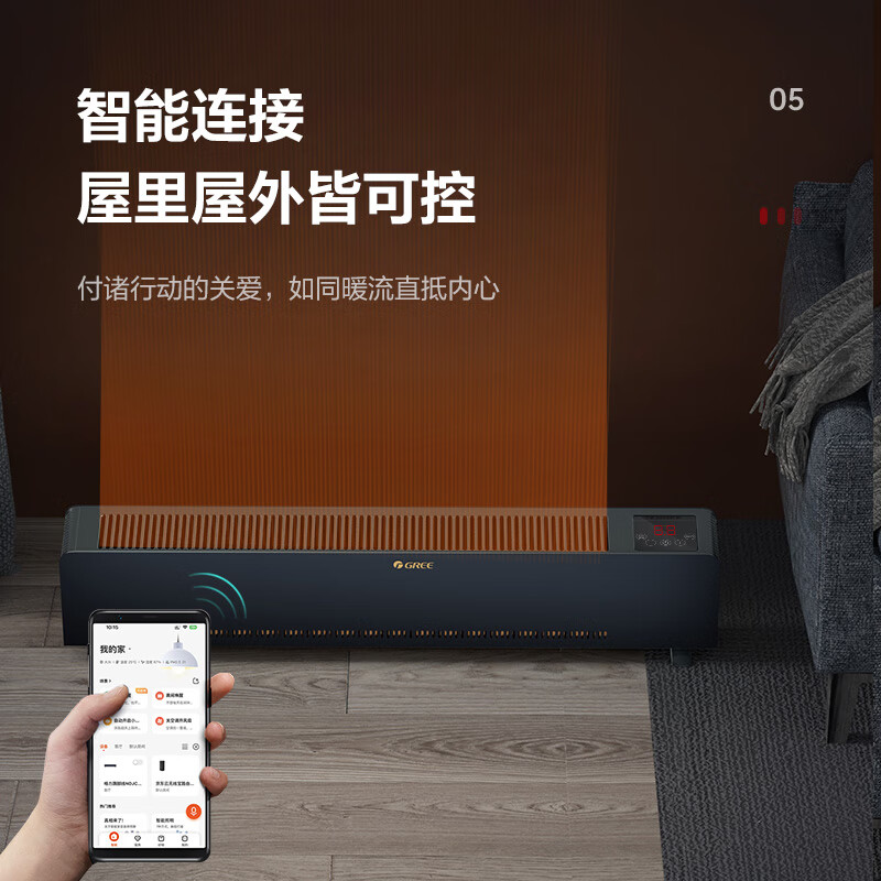 格力(GREE)【石墨烯速热】踢脚线取暖器家用电暖器电暖气片移动地暖WIFI智能大面积踢脚线 NDJC-J6022B