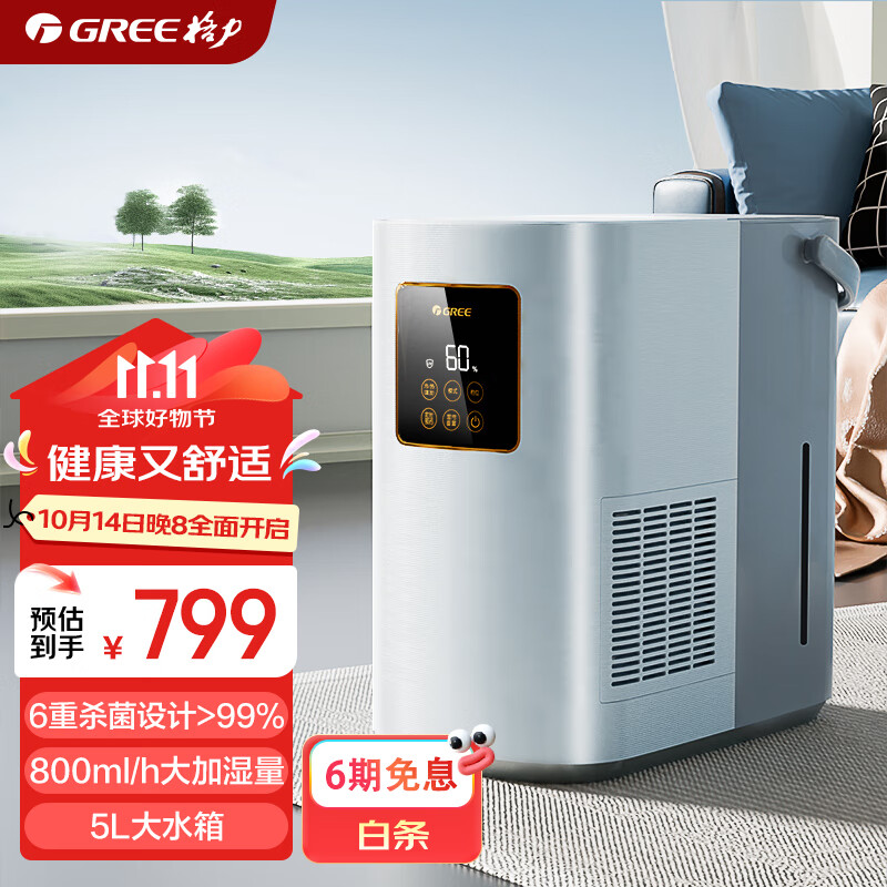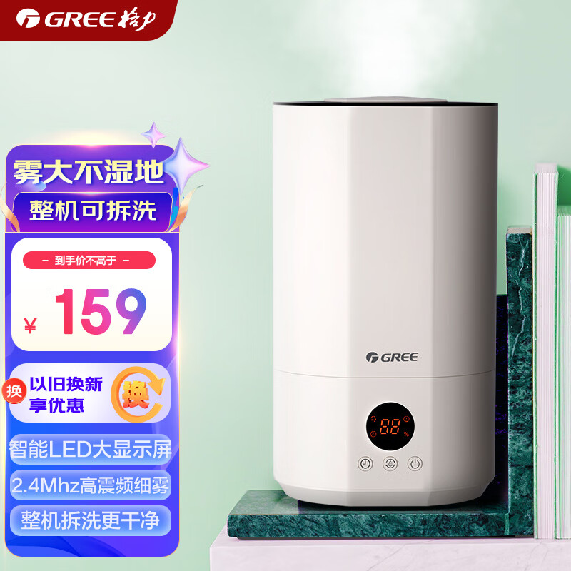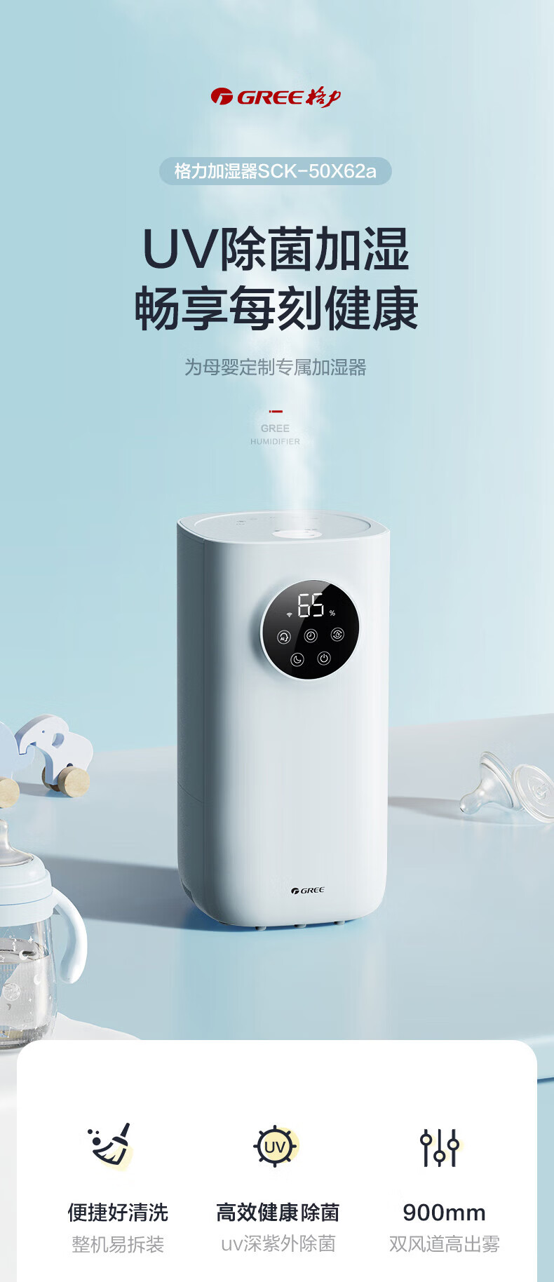 格力(GREE)加湿器静音卧室 UV除菌整机拆洗婴儿孕妇空气加湿器桌面立式 家用办公室大雾量 空调伴侣(50X62a)