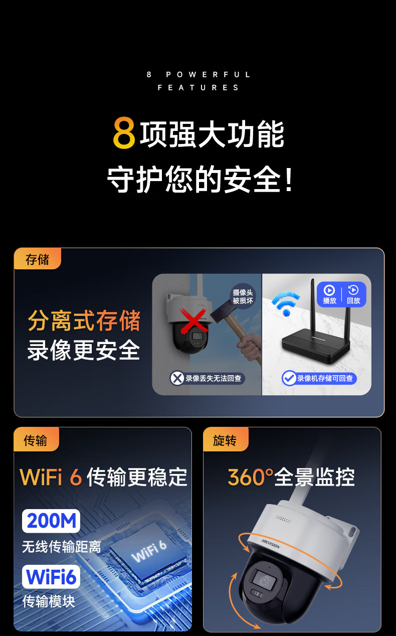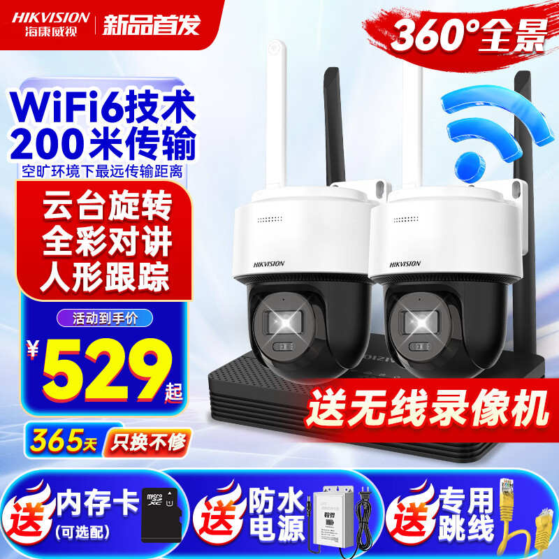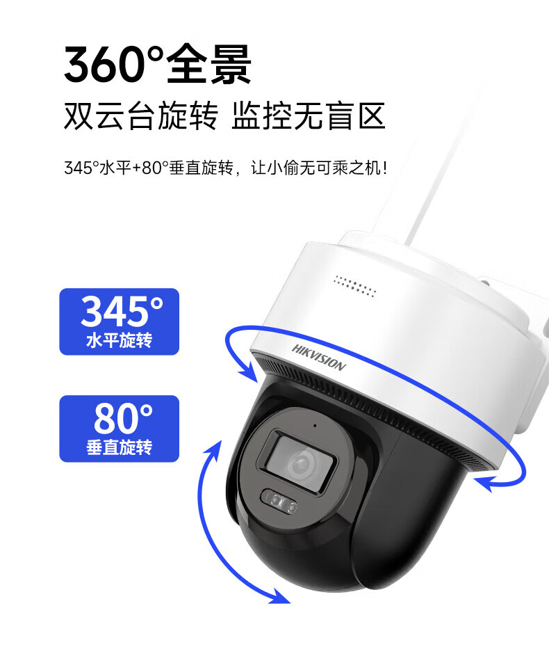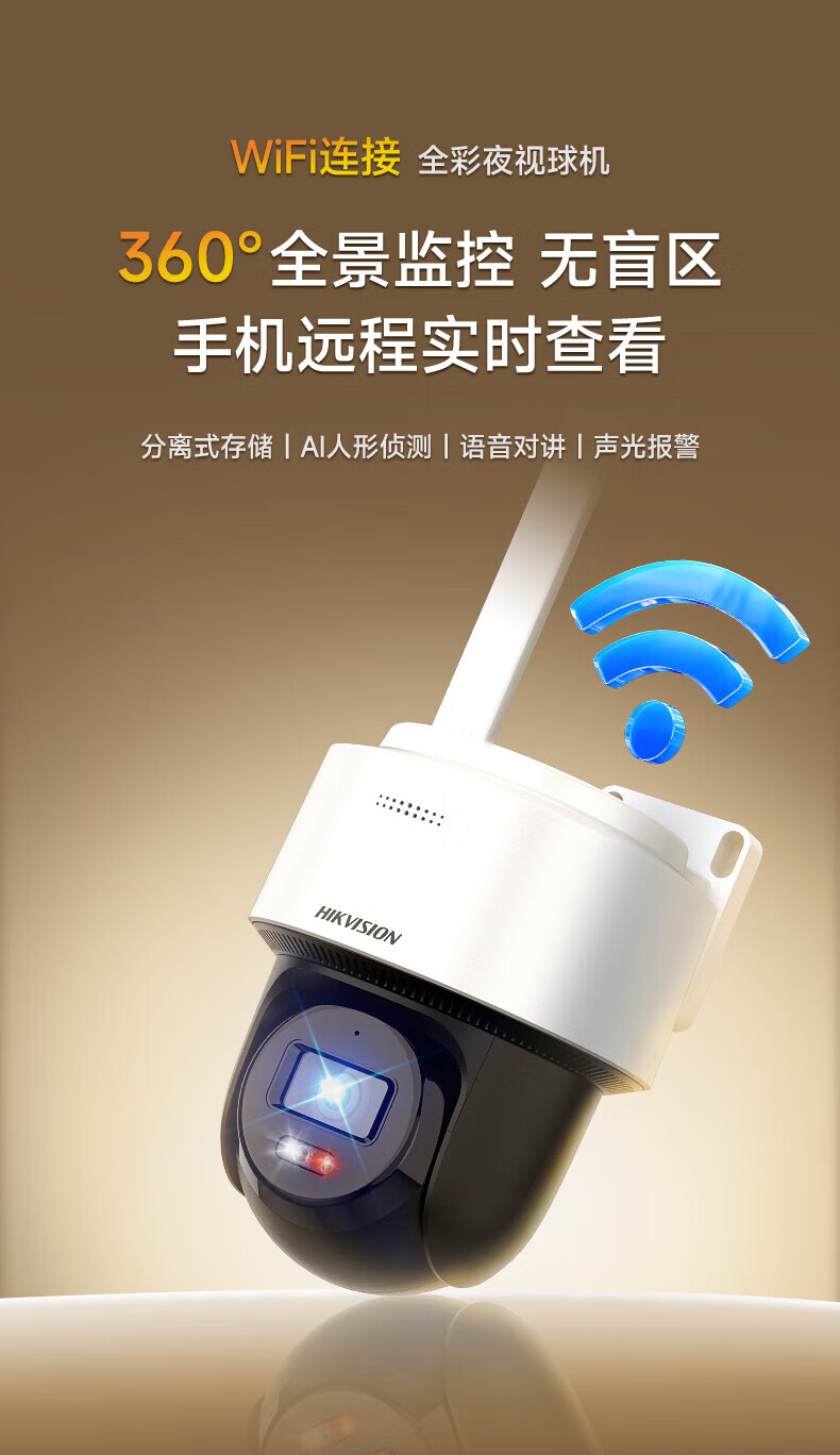 海康威视无线wifi监控摄像头400万全彩夜视云台旋转套装语音对讲室内室外超高户外手机远程移动侦测