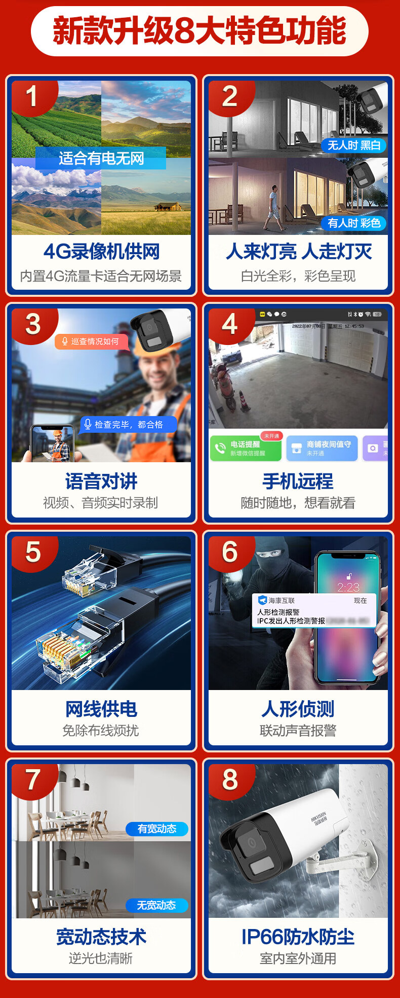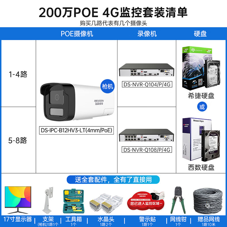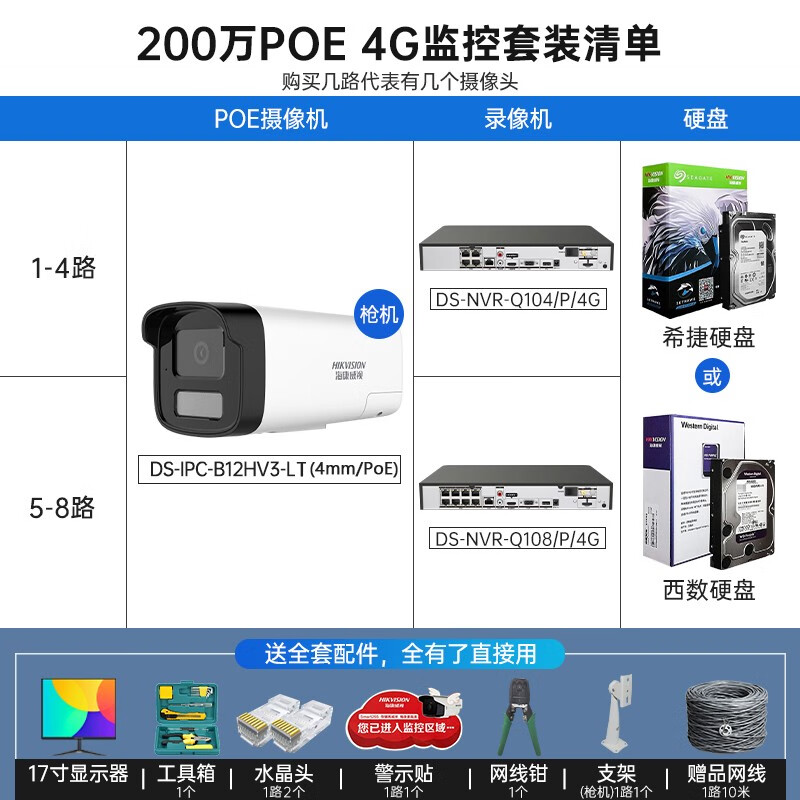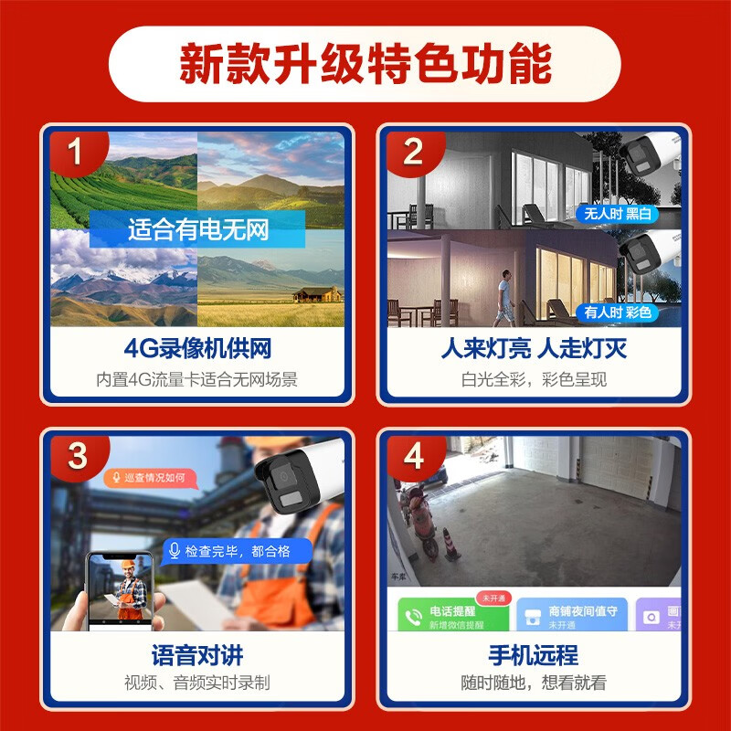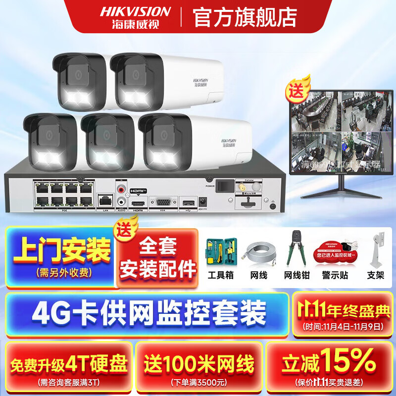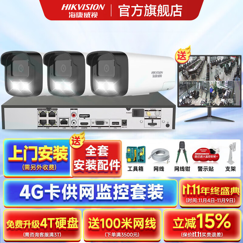 海康威视4G录像机供网摄像头套装适合无网环境监控器全套设备摄像头全彩室内外高清手机远程POE