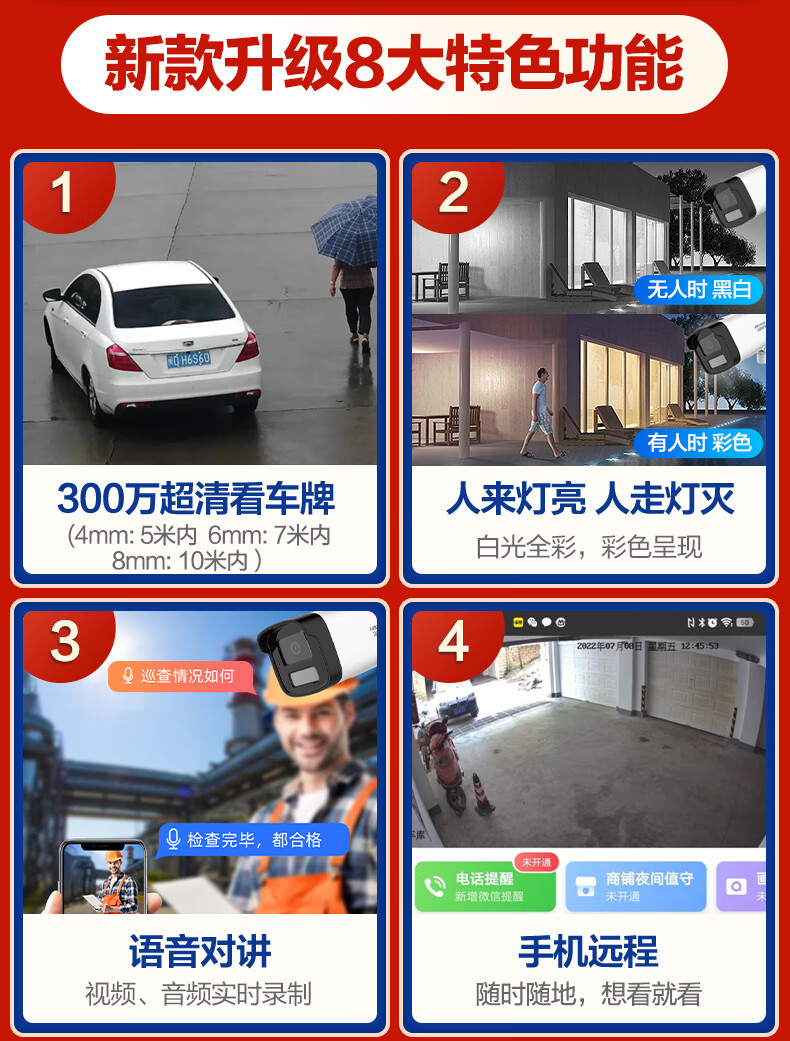 【8台摄像头套装300万全彩夜视】可付费上门安装