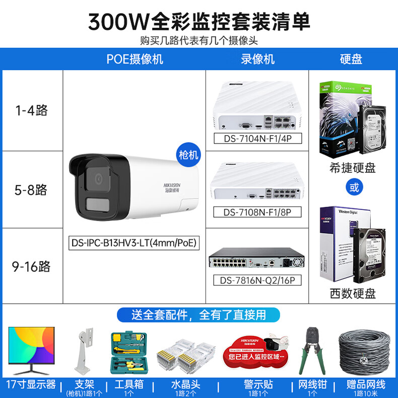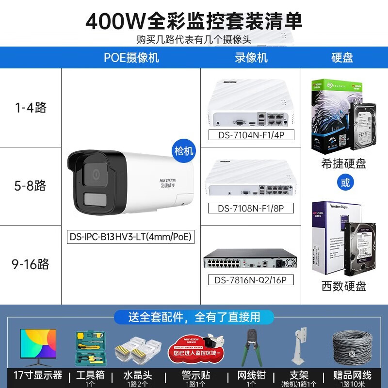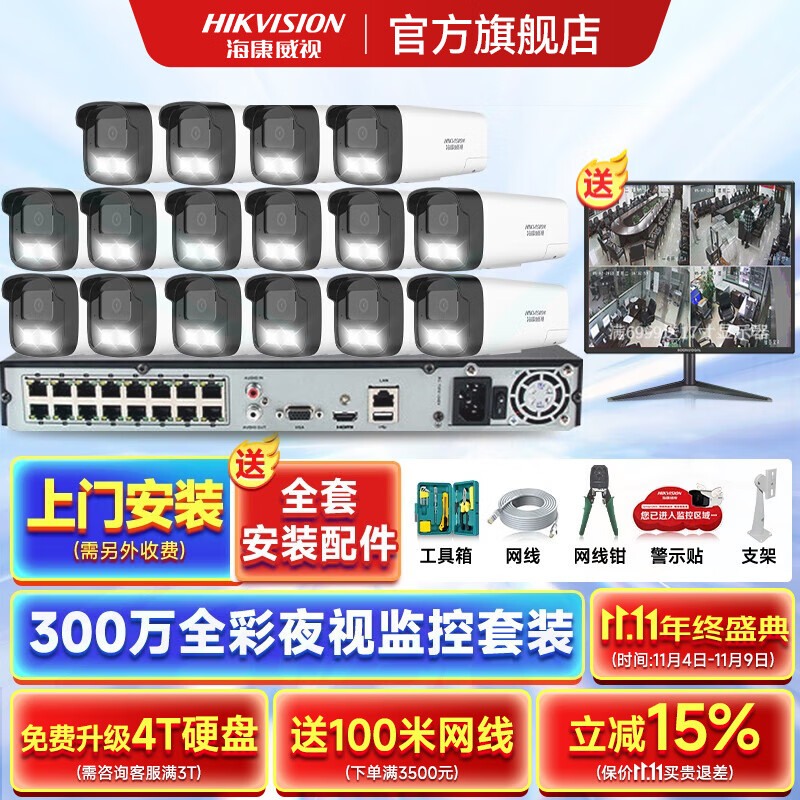 【16台摄像头套装300万全彩夜视】可付费上门安装