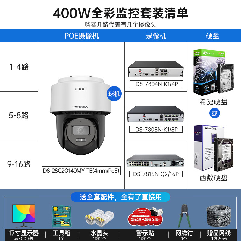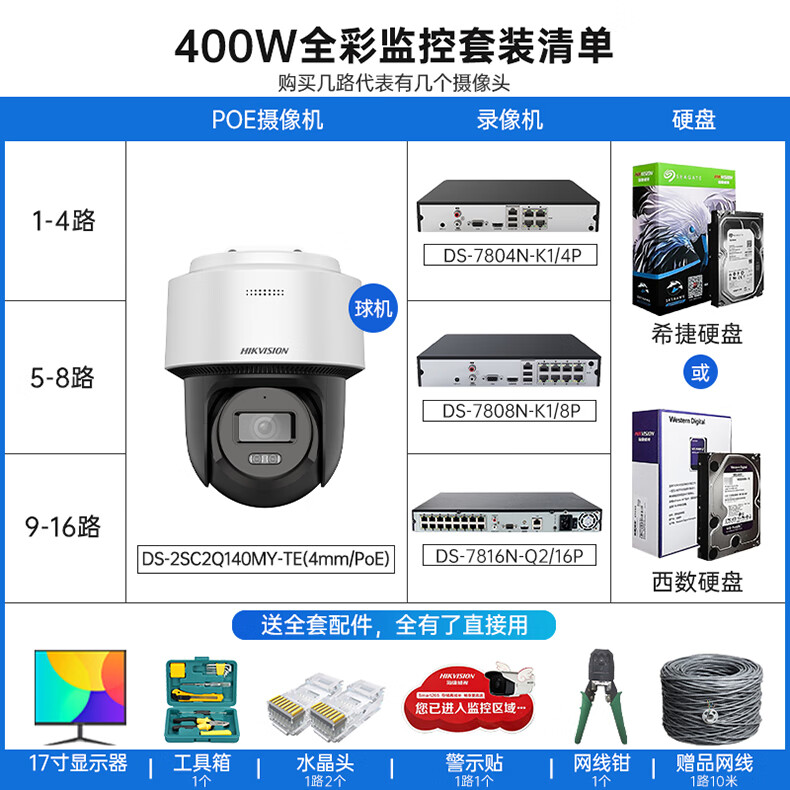 【16个摄像头套装】可付费上门安装