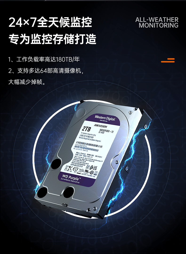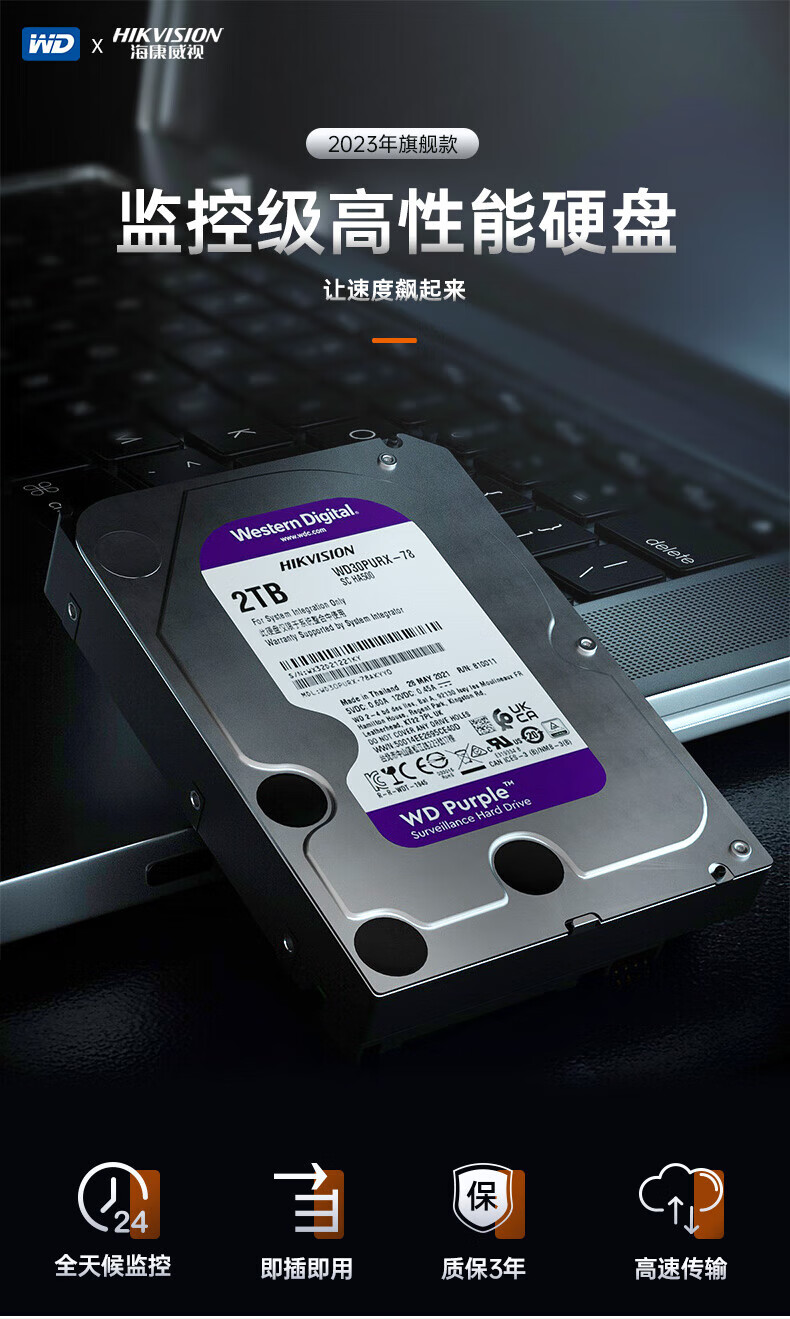 海康威视硬盘西数WD 希捷1T 2T 3T 4T 6T 8T监控专用硬盘紫盘监控设备电脑机械硬盘