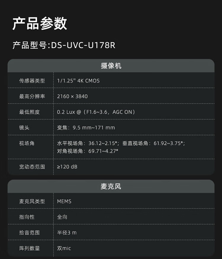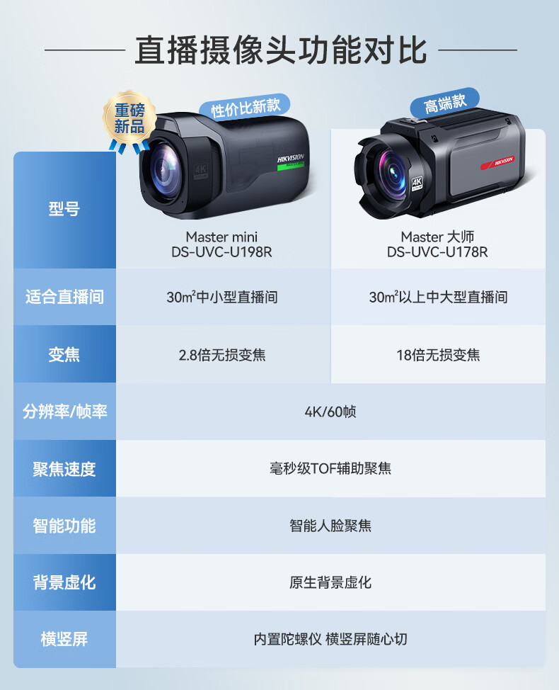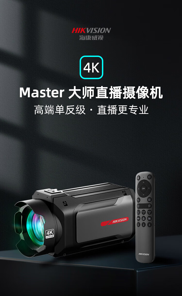海康威视Master大师单反级电脑直播摄像头4K超清摄像机变焦横竖屏网络抖快美颜带货设备 再送相机落地三脚架