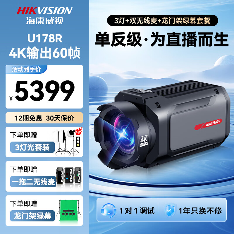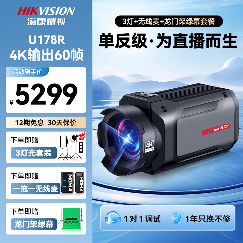 4K 178R送双无线麦+3灯+龙门架绿幕