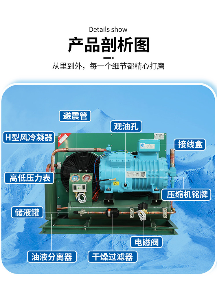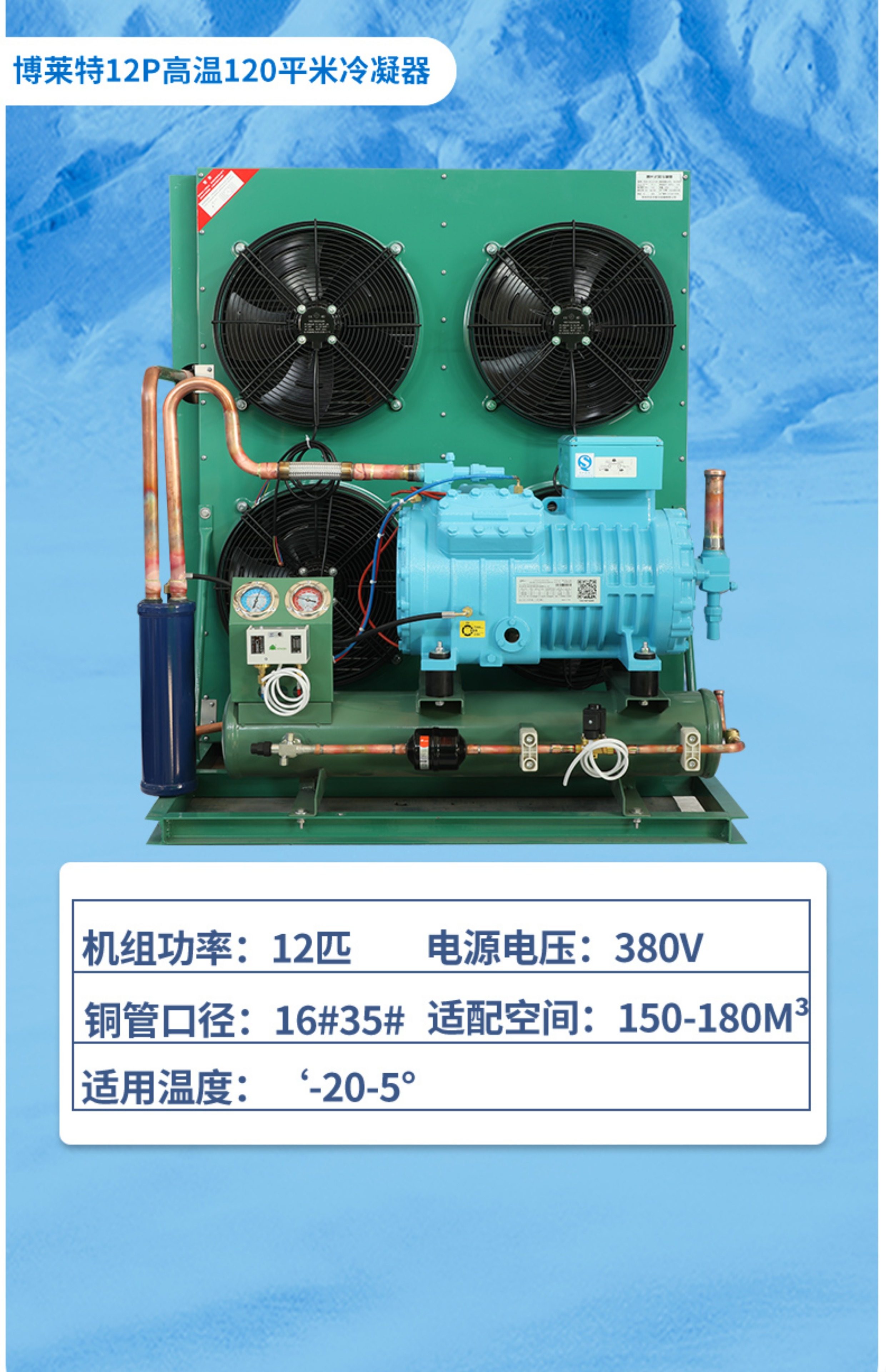 博莱特冷库制冷机组全套设备3p15匹半封闭德国比泽尔制冷压缩机