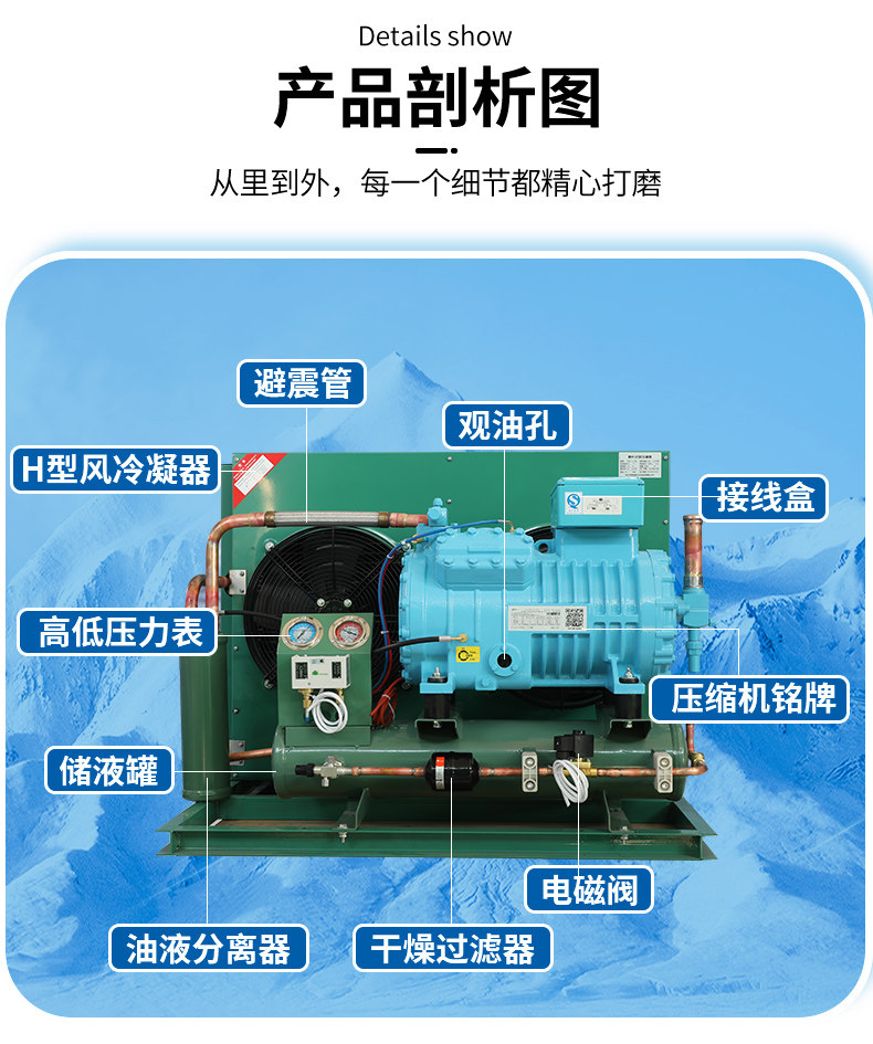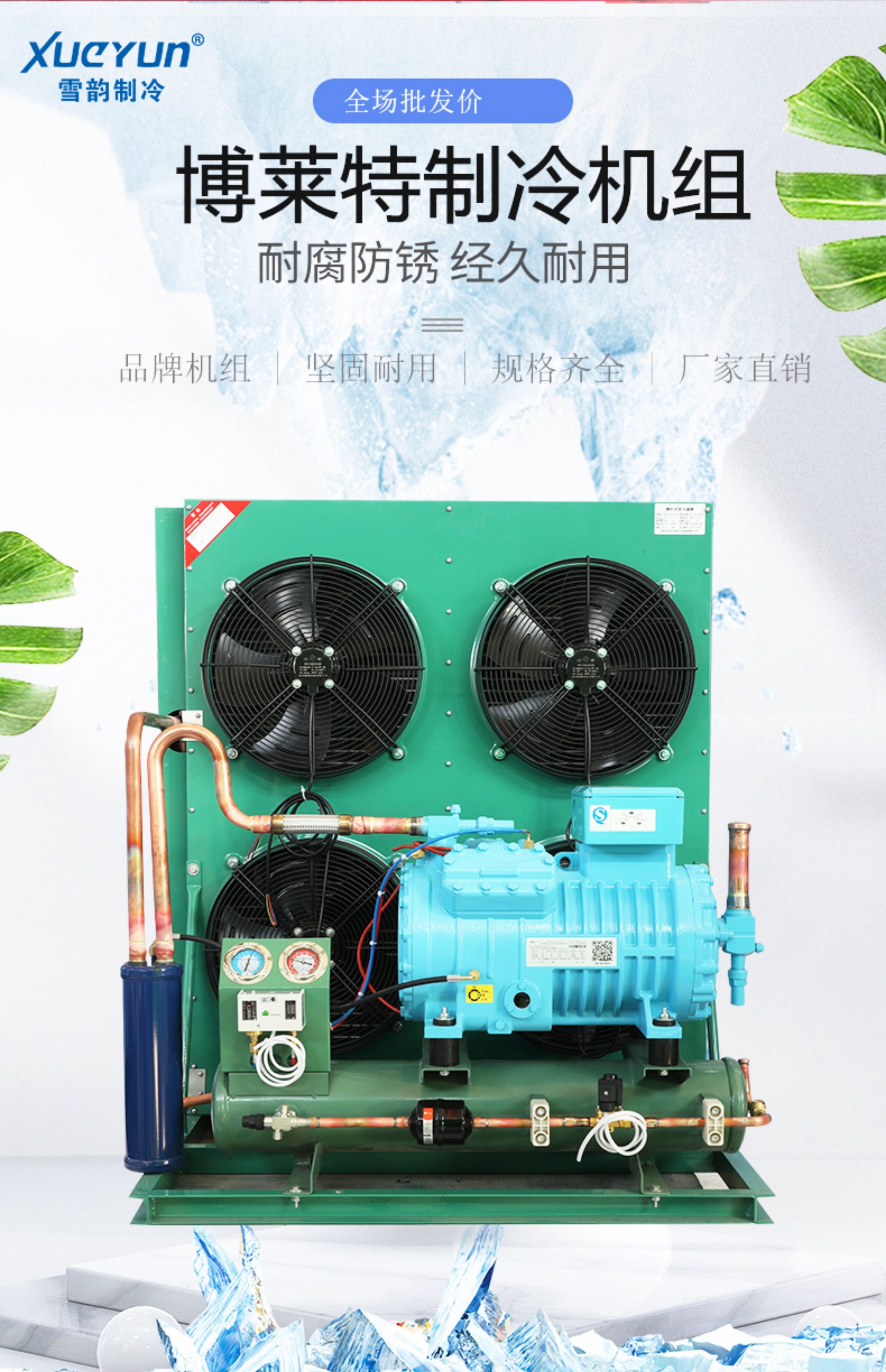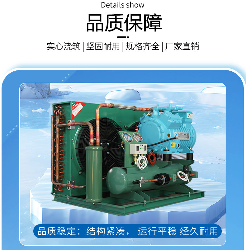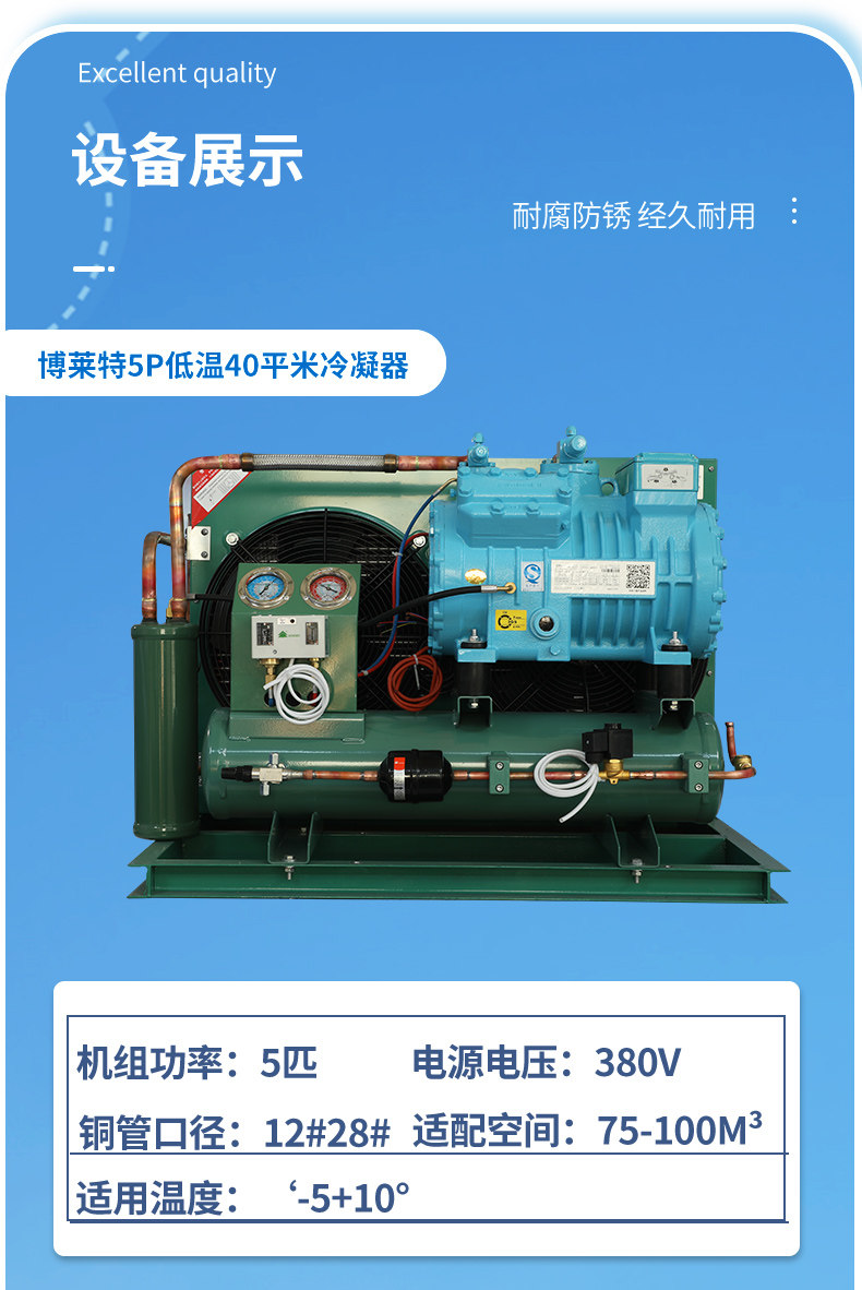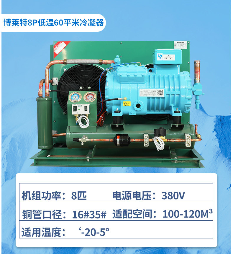 博莱特冷库制冷机组全套设备3p5p20匹小型保鲜冷冻半封闭压缩机