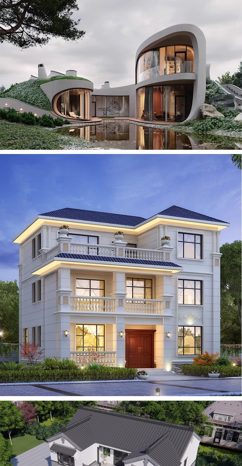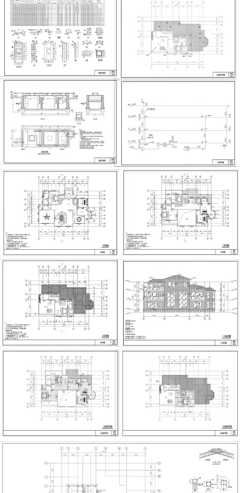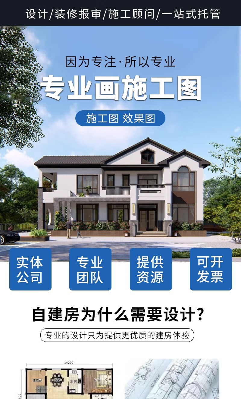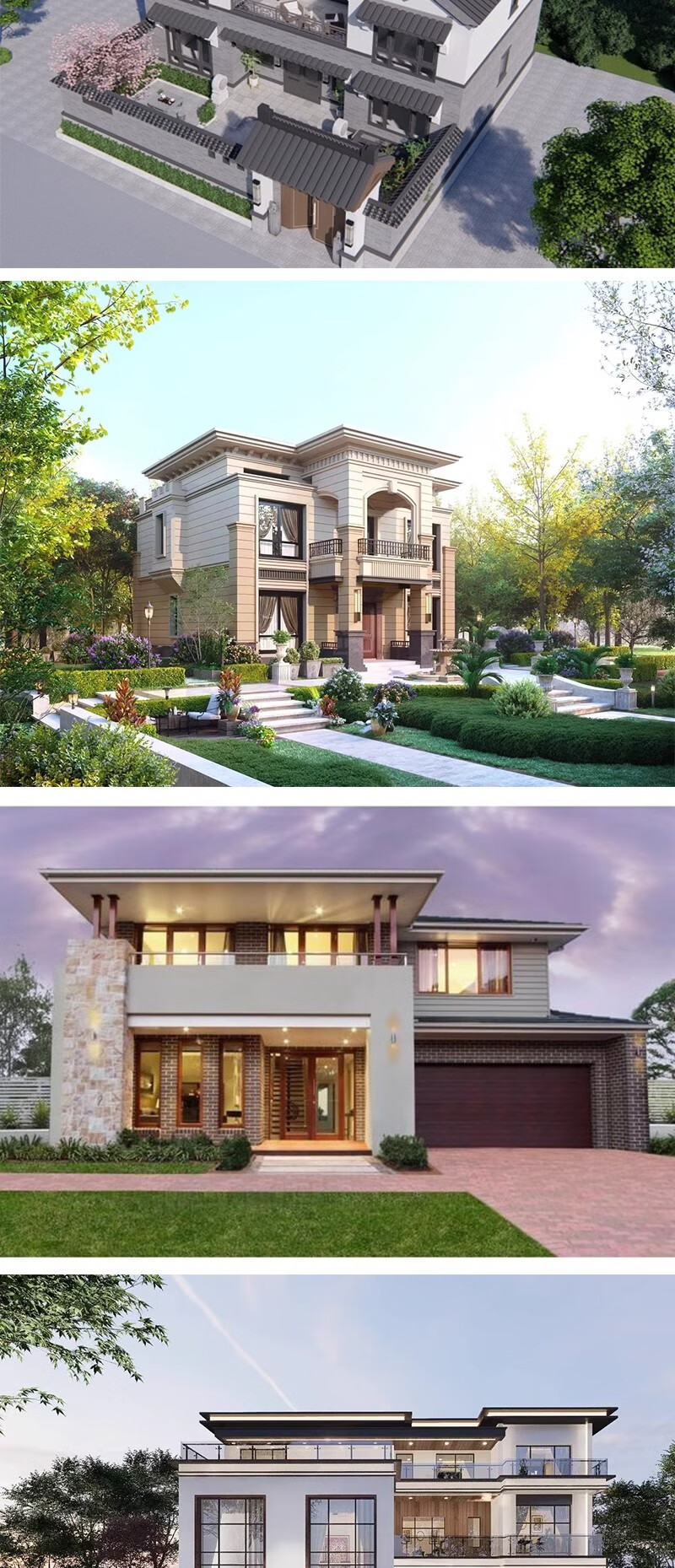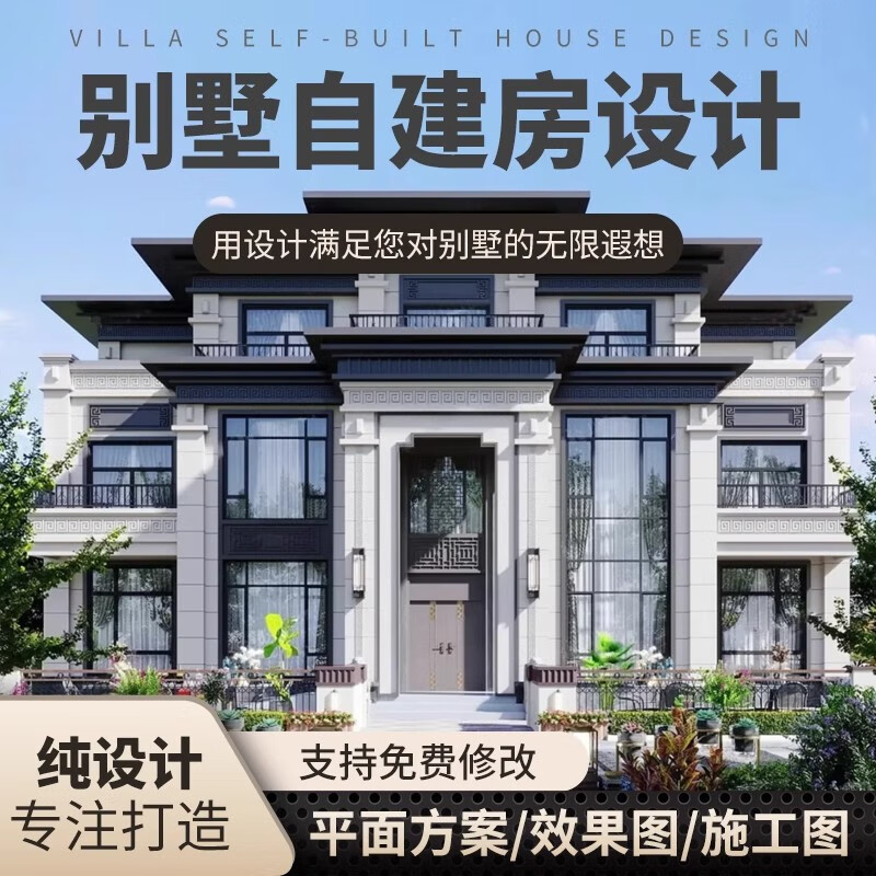 新农村自建房庭院中式别墅设计图纸二三层半房屋外观效果图建筑结构定制施工图 实惠版