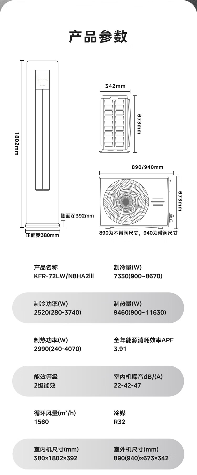 3匹 二级能效 72HA2Ⅲ三代