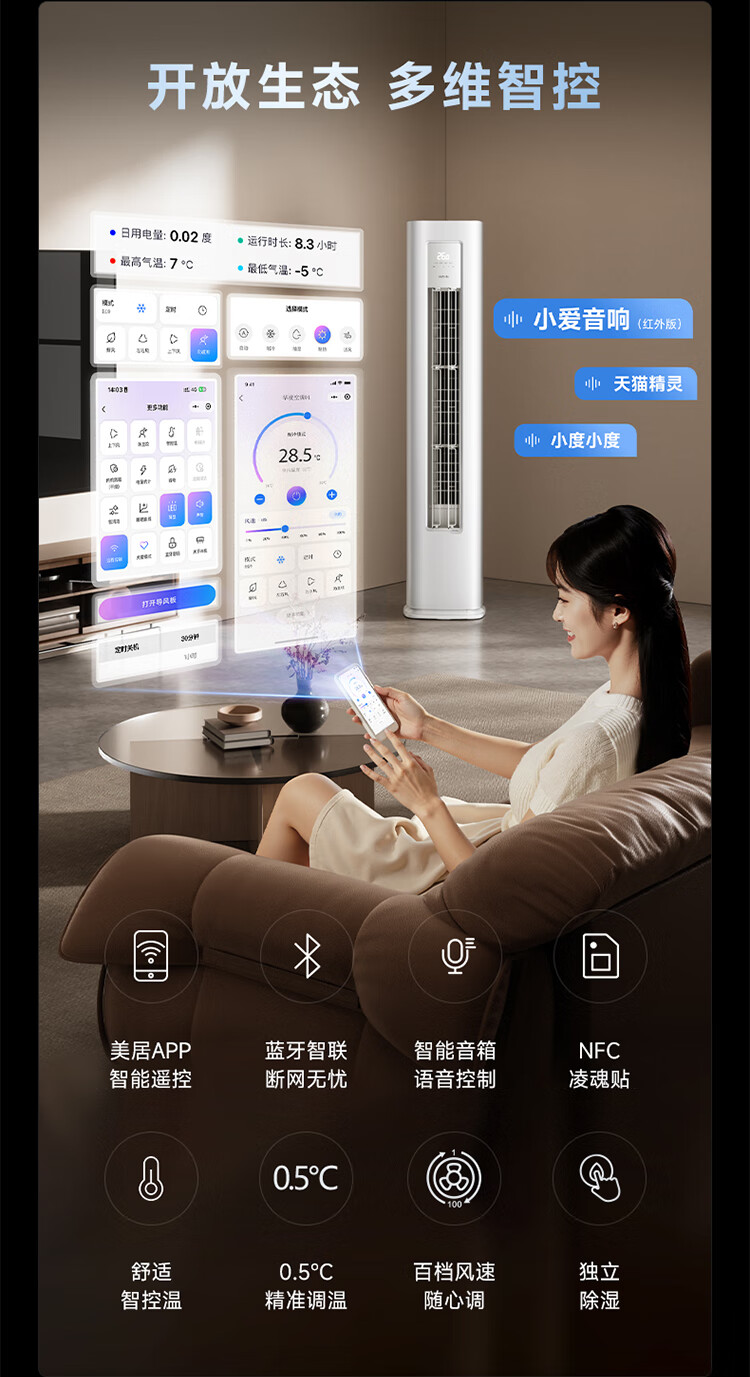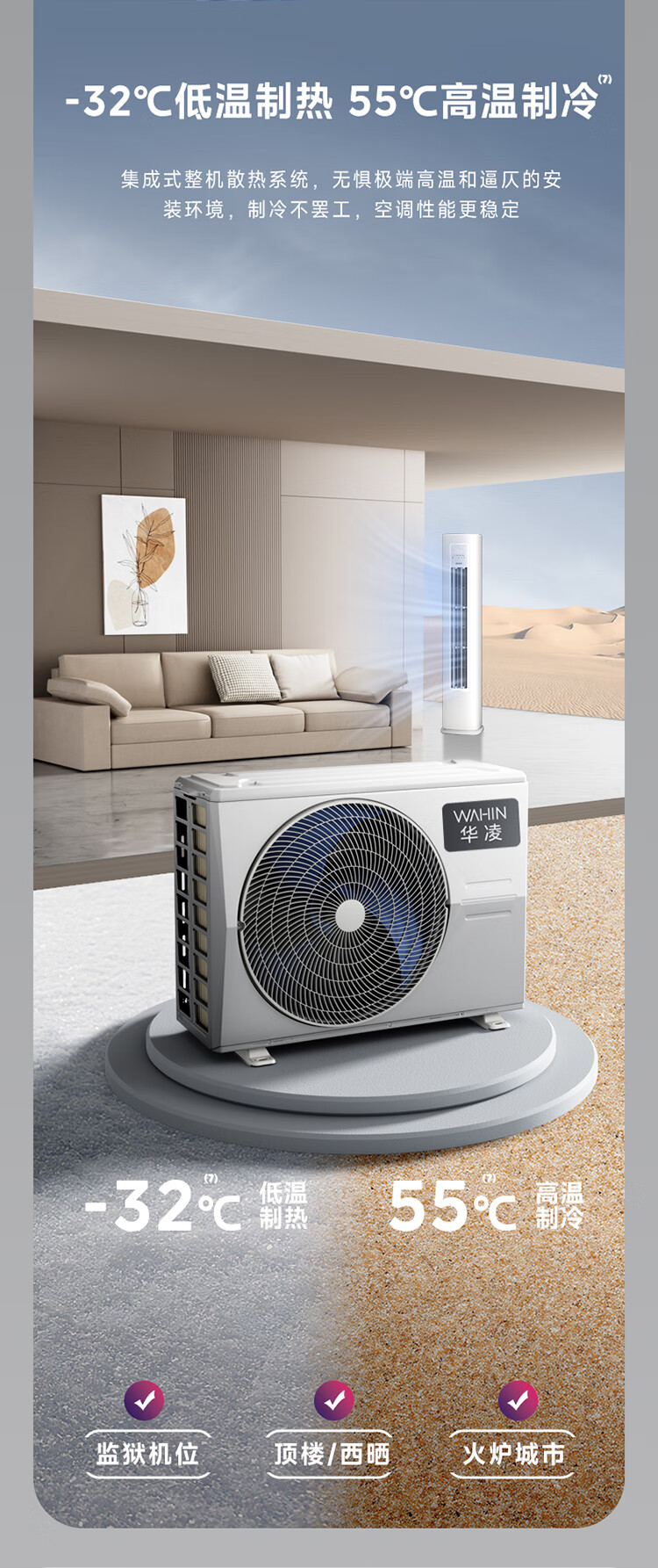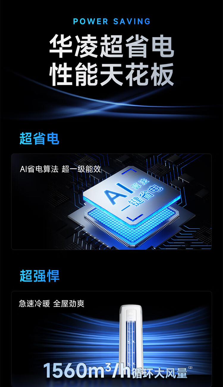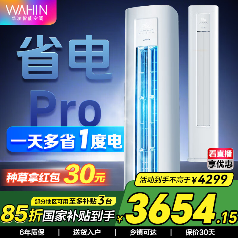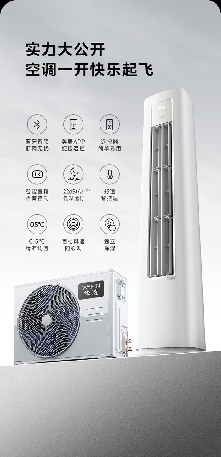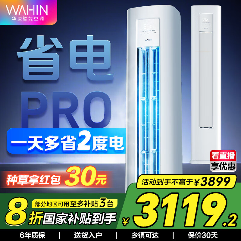 华凌超省电 国家补贴80% 新能效变频空调立式 空调扇 智能冷暖 空调 圆柱立式空调柜机 3匹一级能效