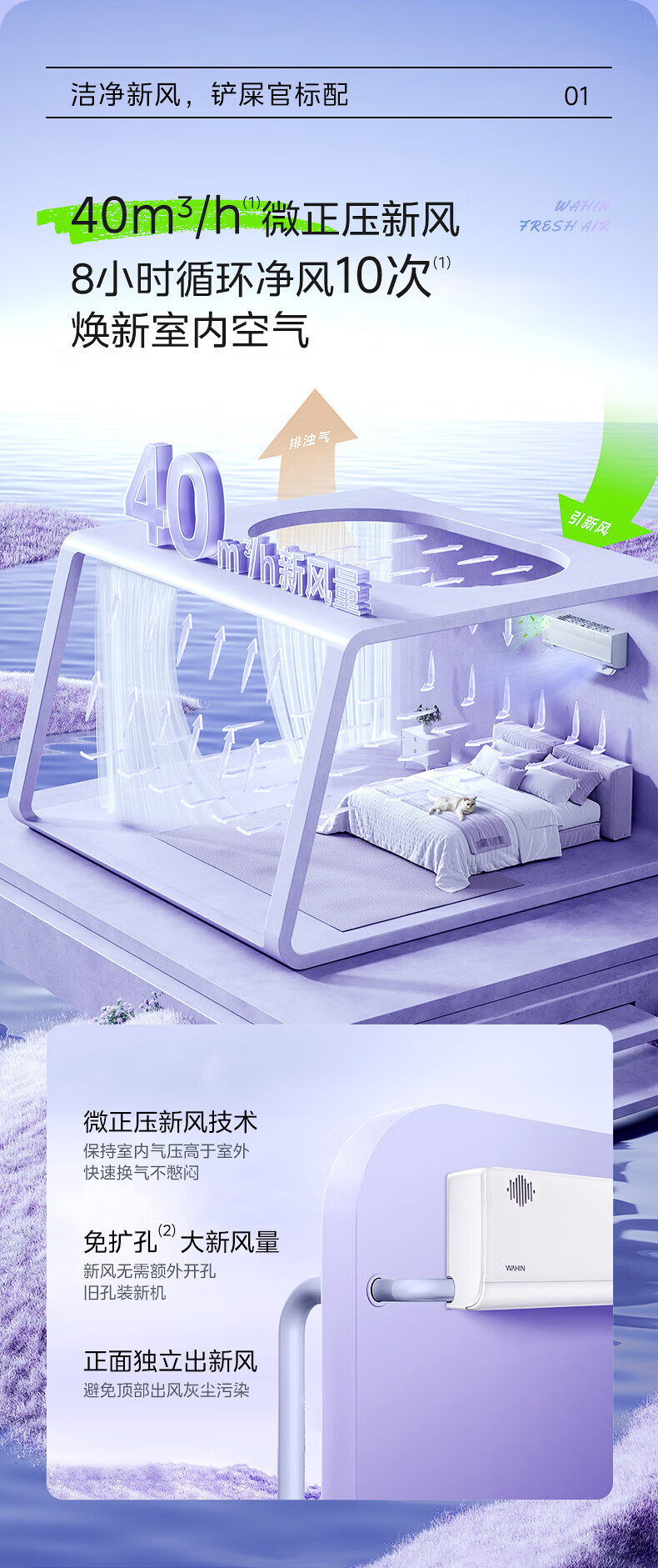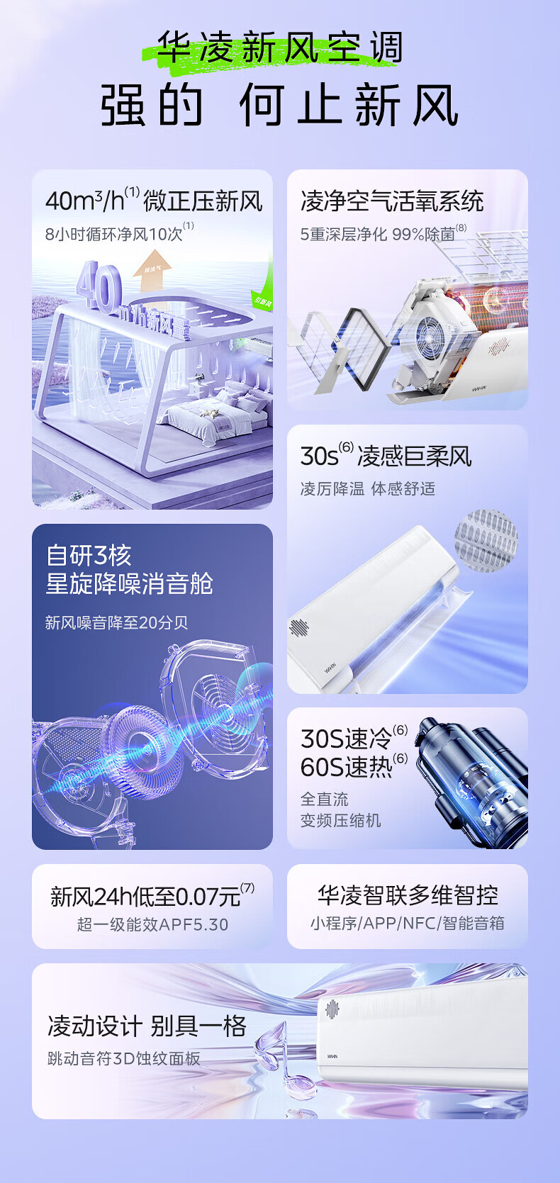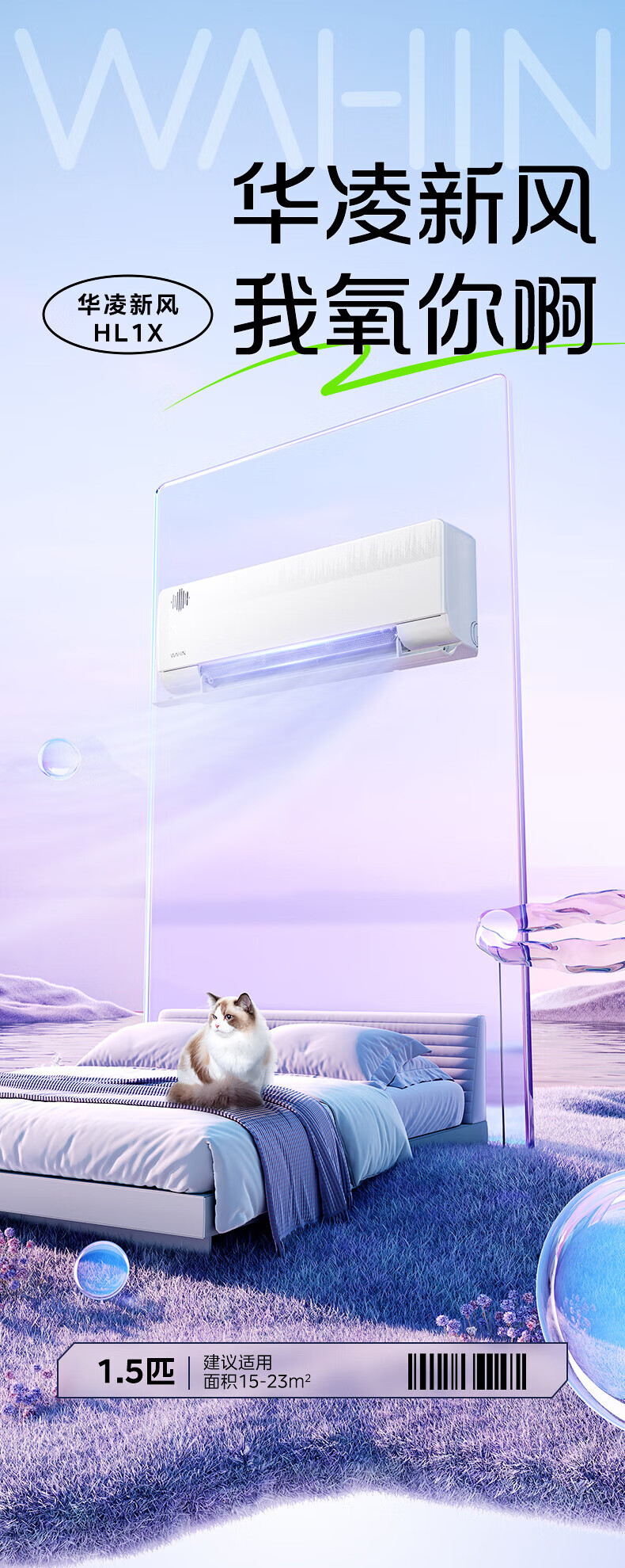 华凌新风空调 国家补贴80% 空调扇 大1.5匹新一级 变频冷暖 40m³/h新风量 卧室空调挂机 国补入口 1.5匹 一级能效 35HLX 新风