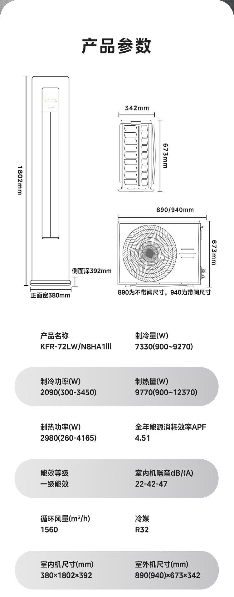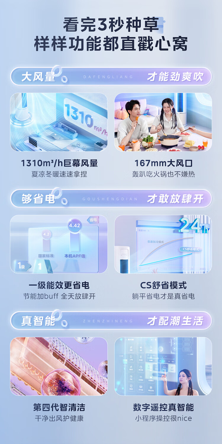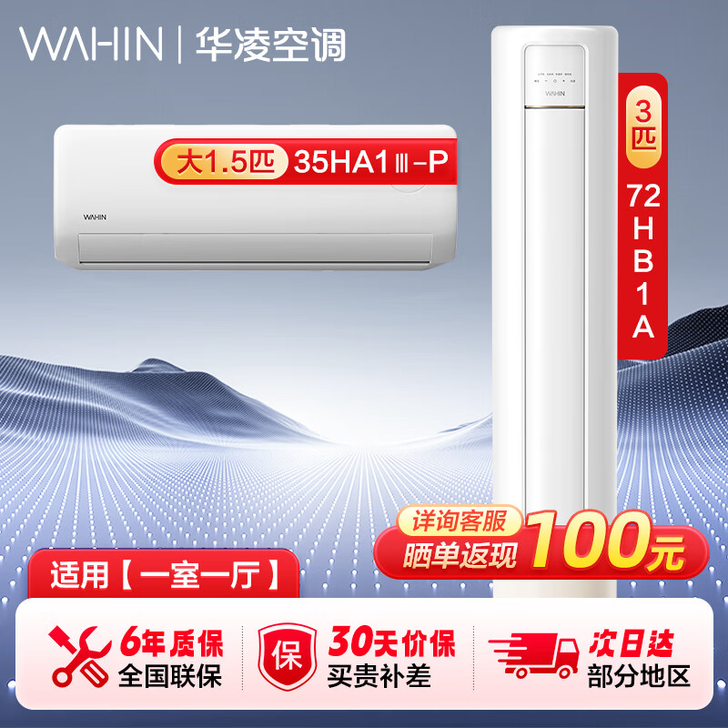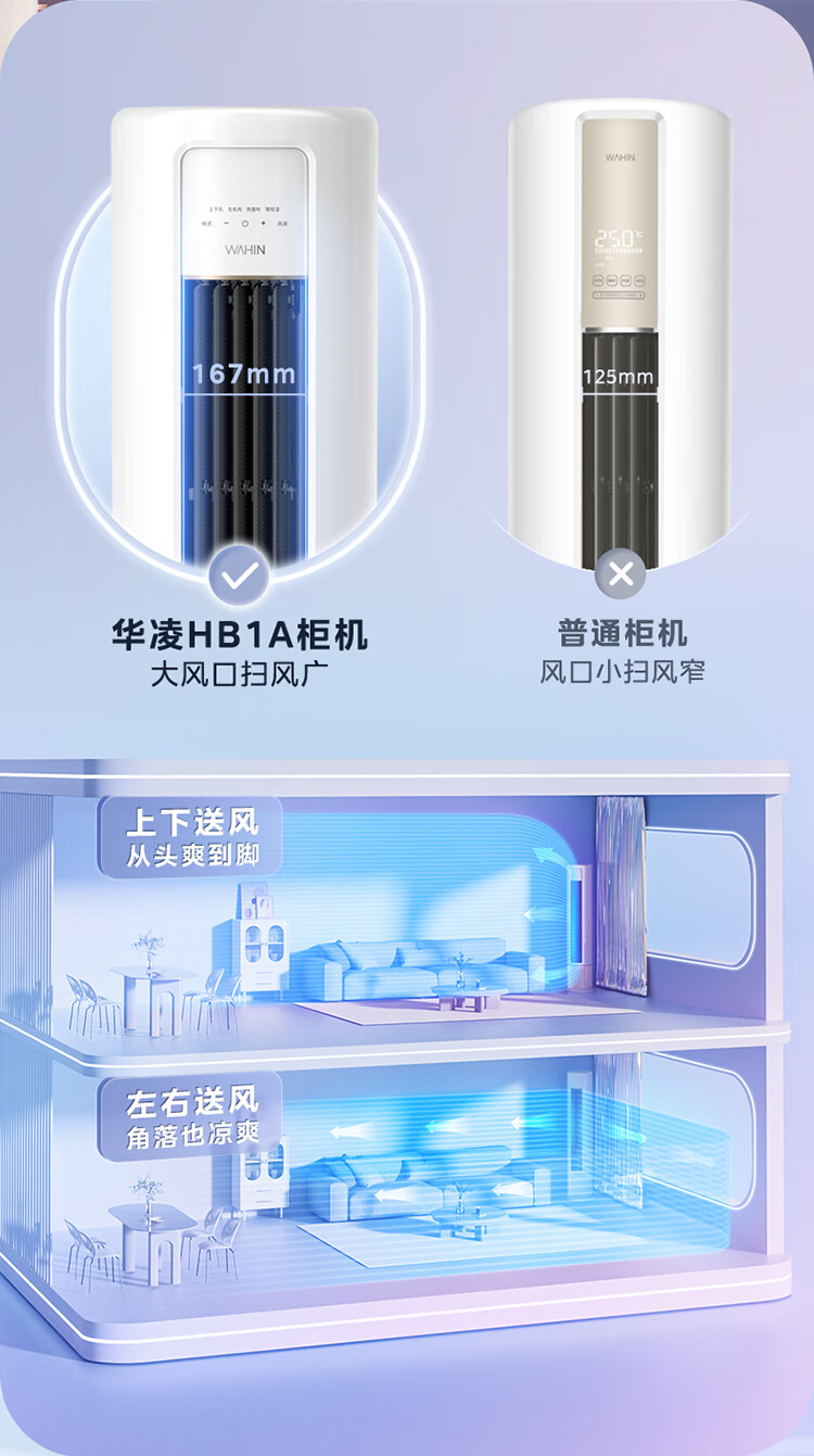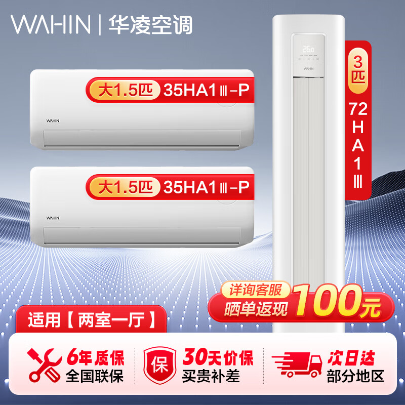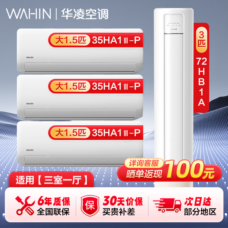 华凌空调 新一级 冷暖升级款变频挂机+新一级大出风口变频柜机套装三室一厅