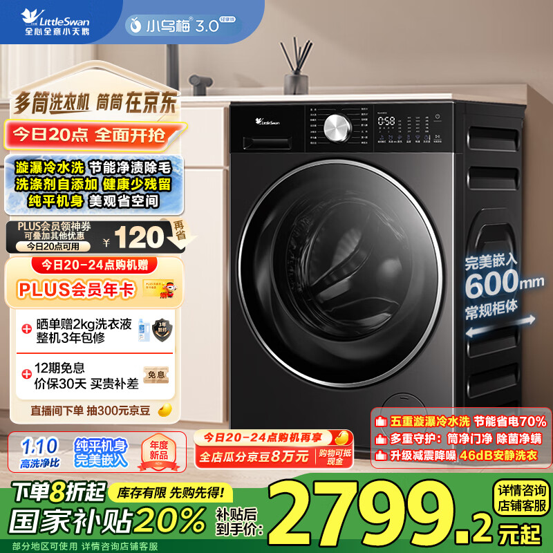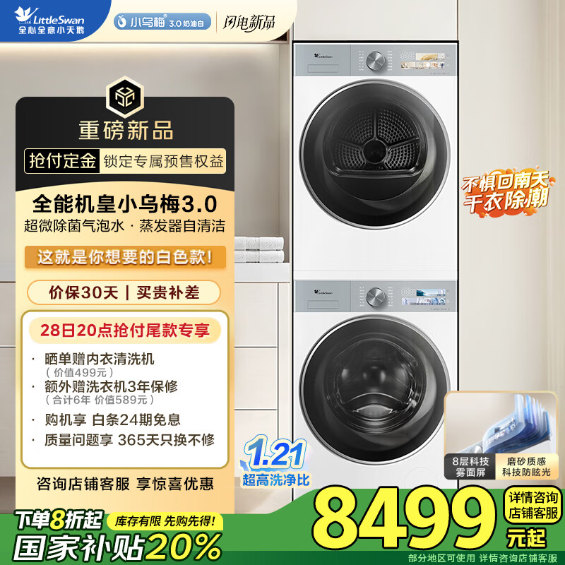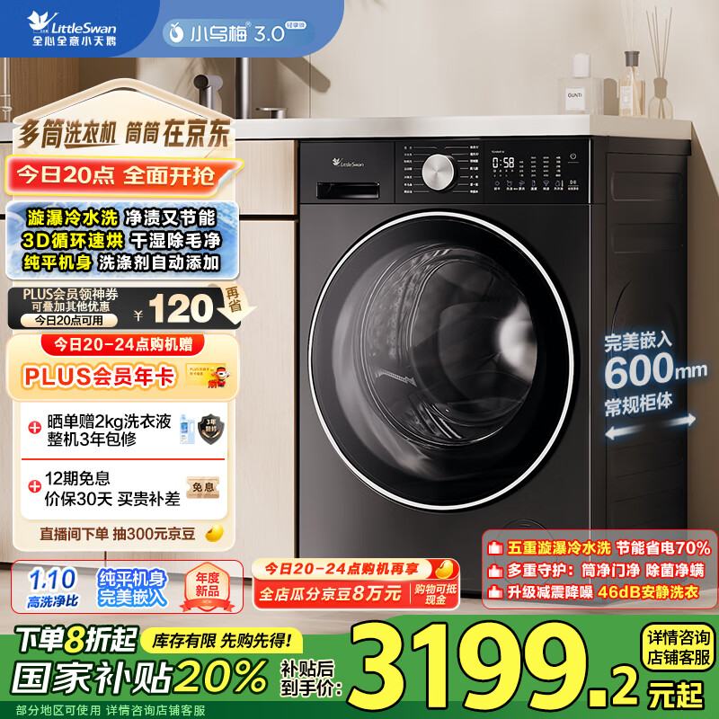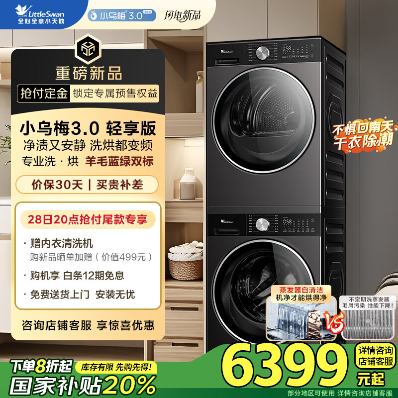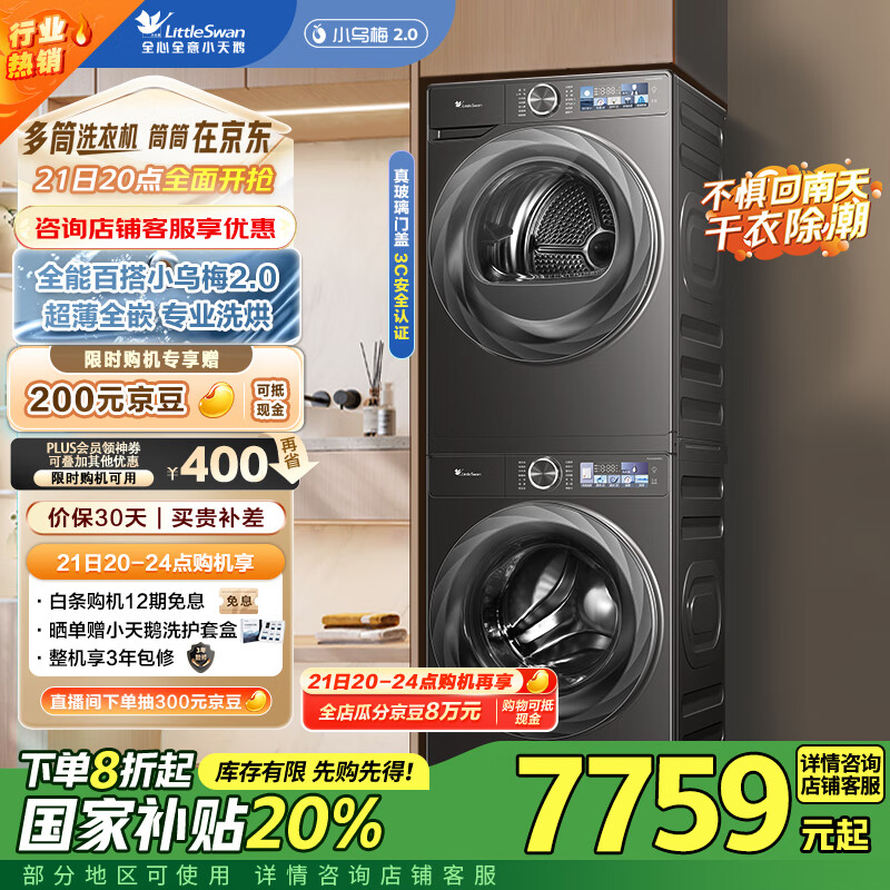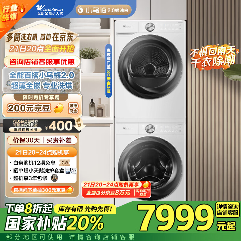 小天鹅(LittleSwan)洗烘套装 10KG滚筒洗衣机+变频热泵烘干机 纯平全嵌【小乌梅3.0】TG10VE40+VE40 家电国家补贴20%
