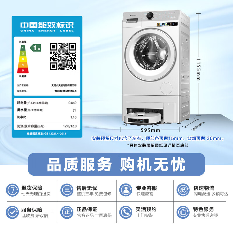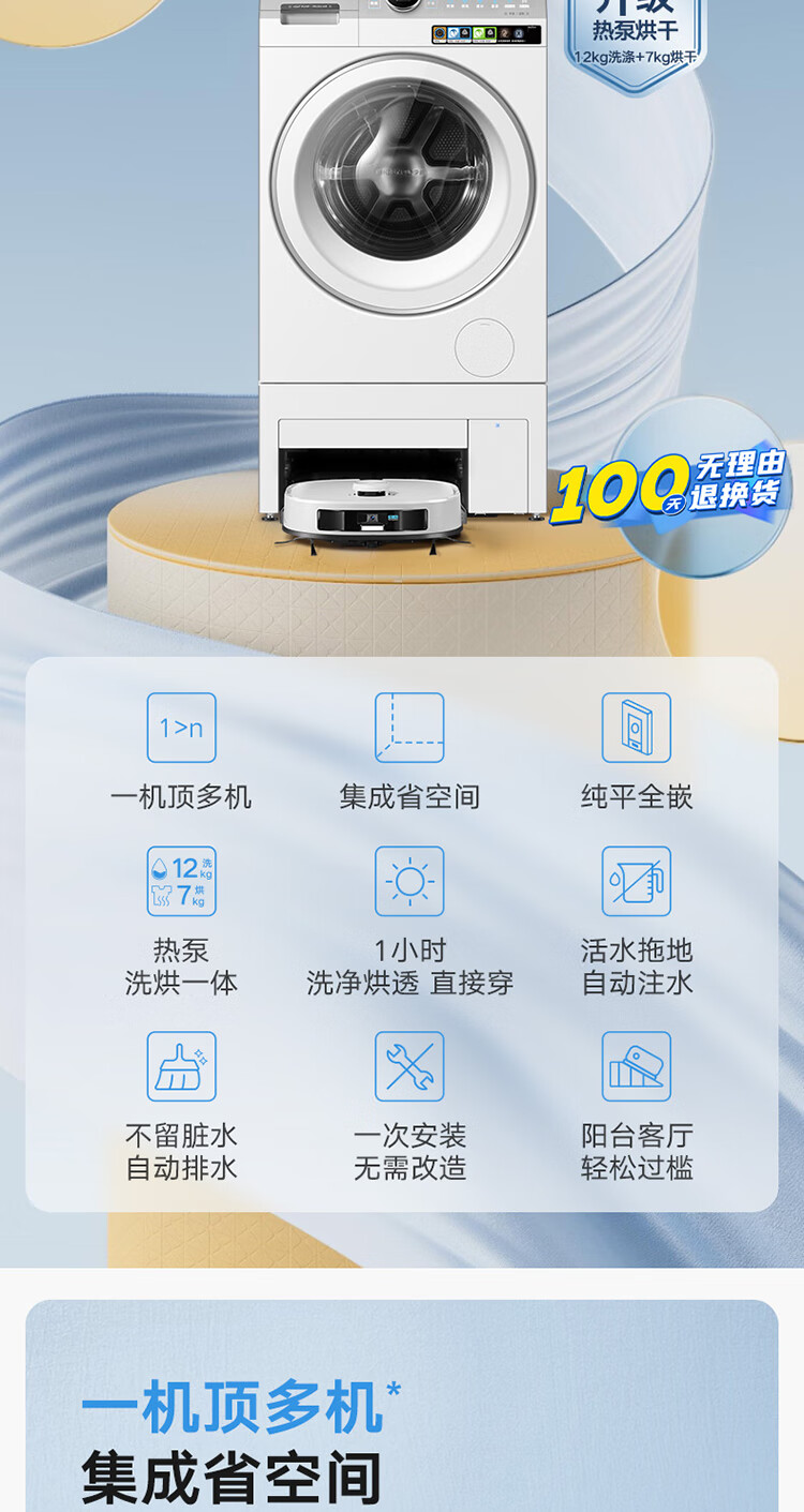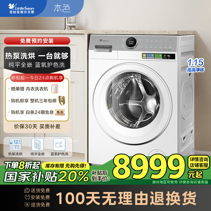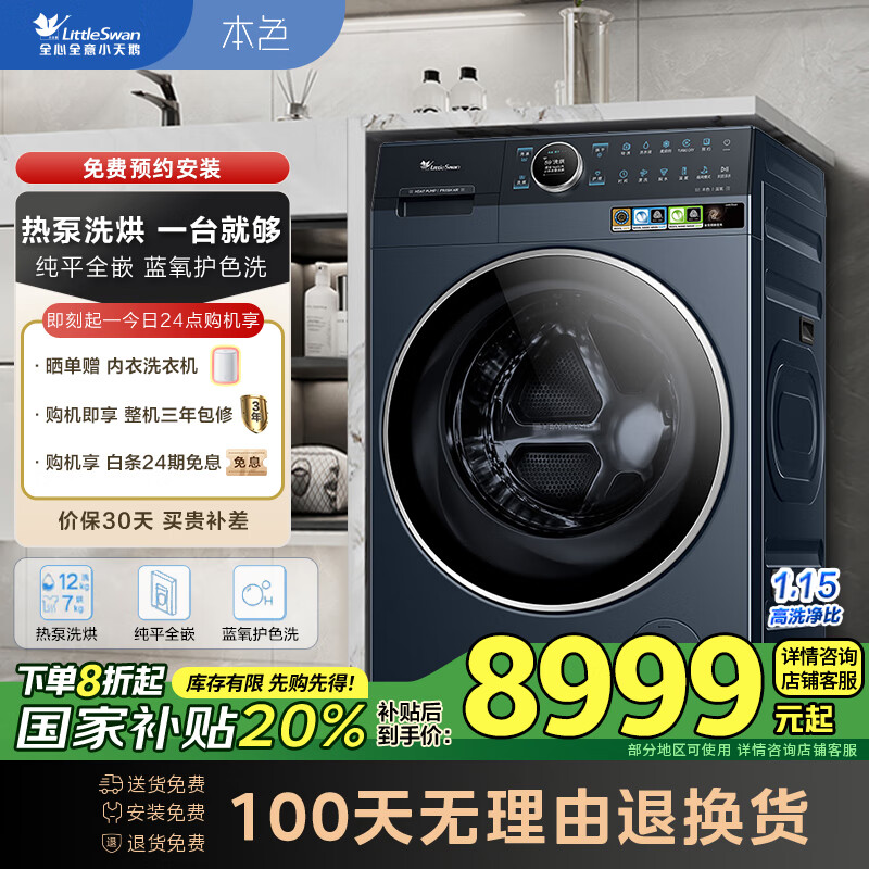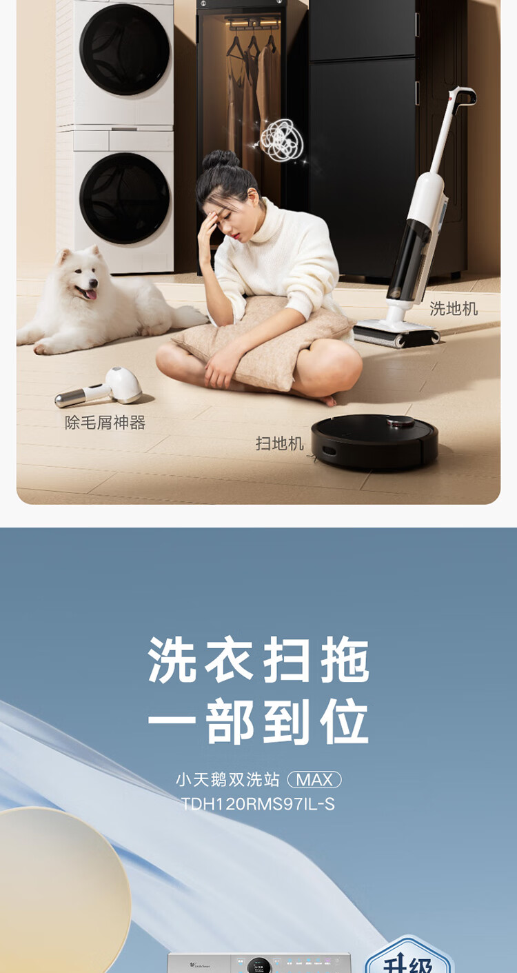 小天鹅(LittleSwan)【双洗站MAX月辉银】12KG滚筒洗衣机全自动 扫拖热泵 洗烘一体 不做家务体面由我 TDH120RMS97IL-S