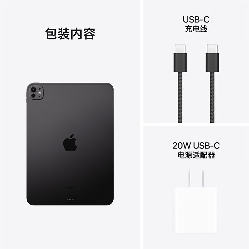 Apple/苹果 iPad Pro 11英寸 M4芯片 2024年新款平板电脑(256G WLAN版/MVV83CH/A)深空黑色