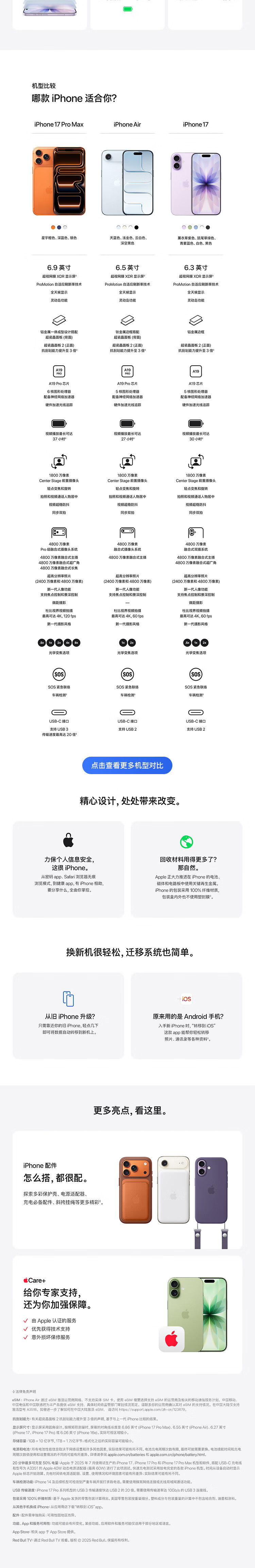 装有 iOS 26 的 iPhone, USB‑C 充电线 (1 米)