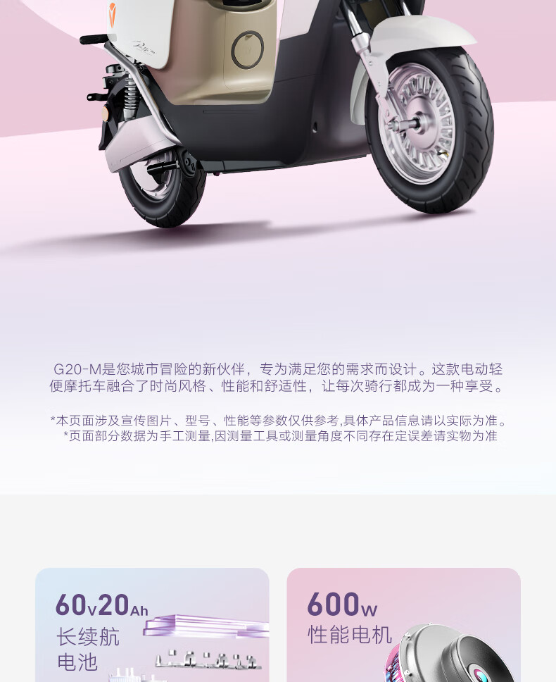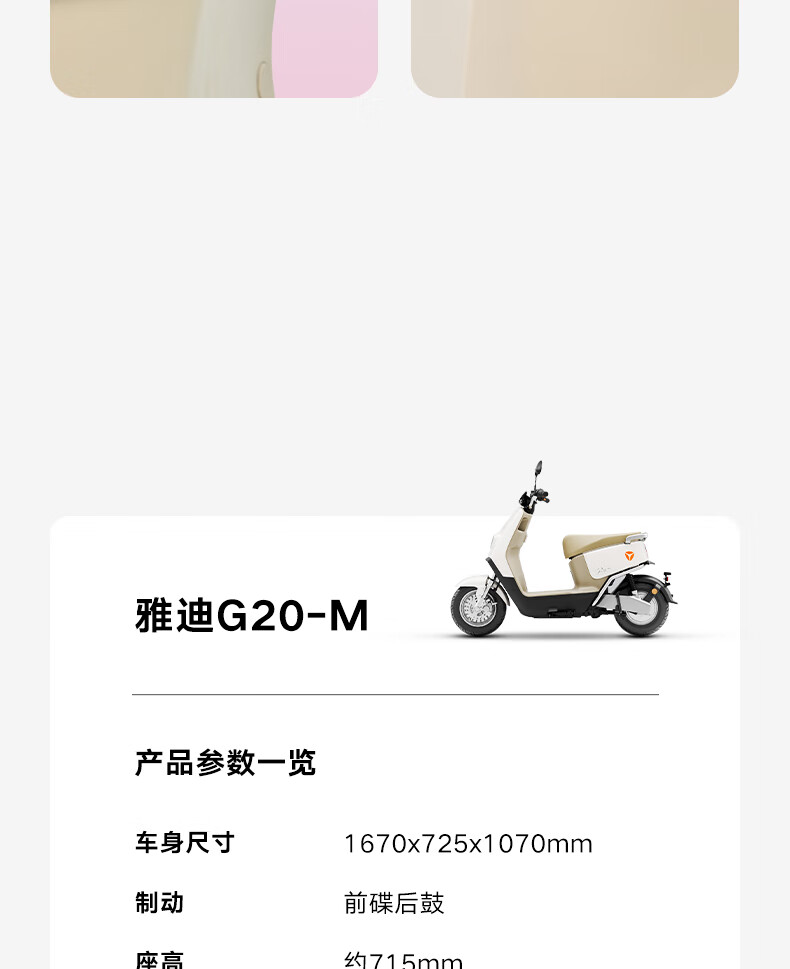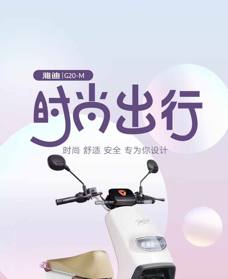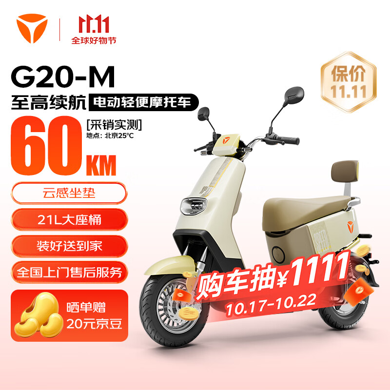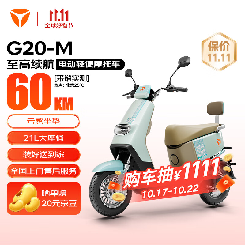雅迪(yadea)电动轻便摩托车长续航60km铅酸电池60V20Ah G20-M踏板电瓶车长途通勤时尚男女电动车