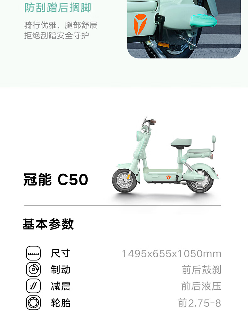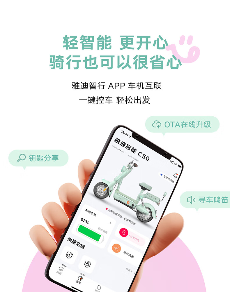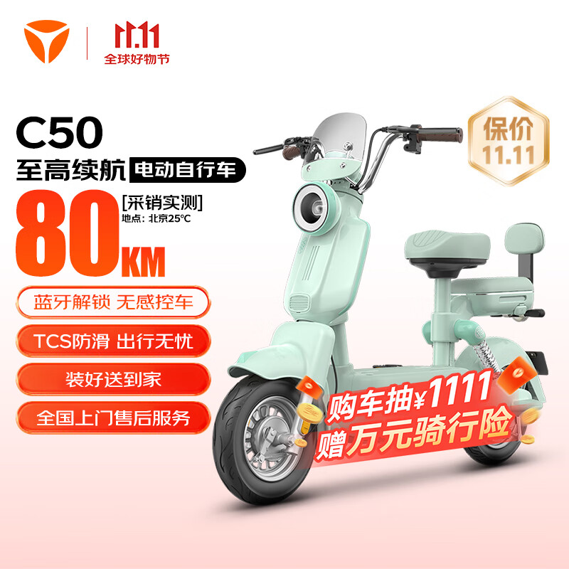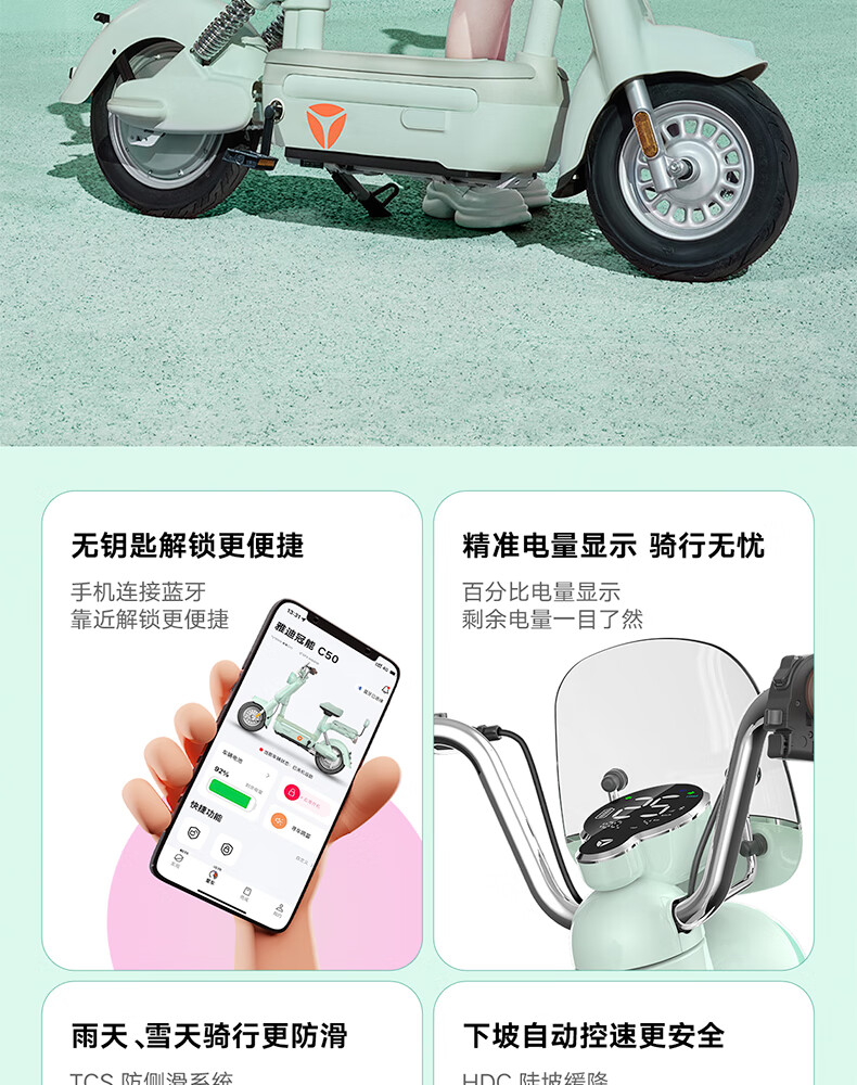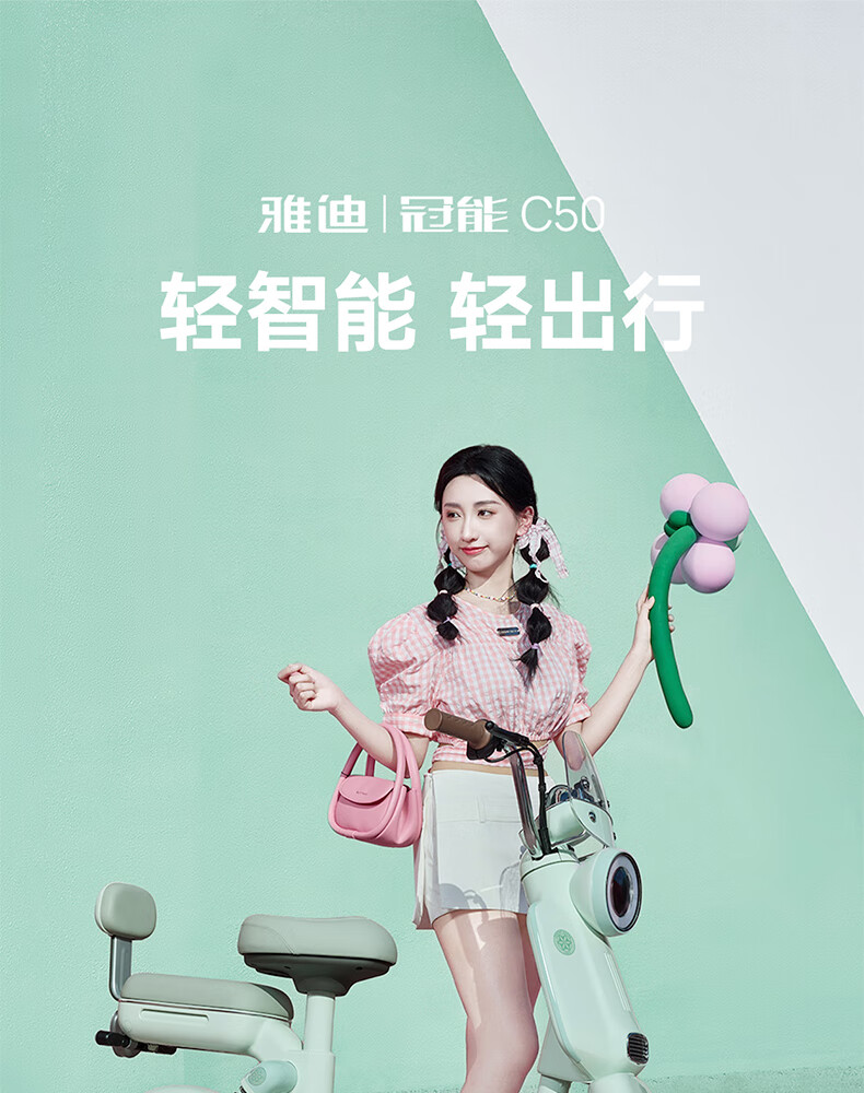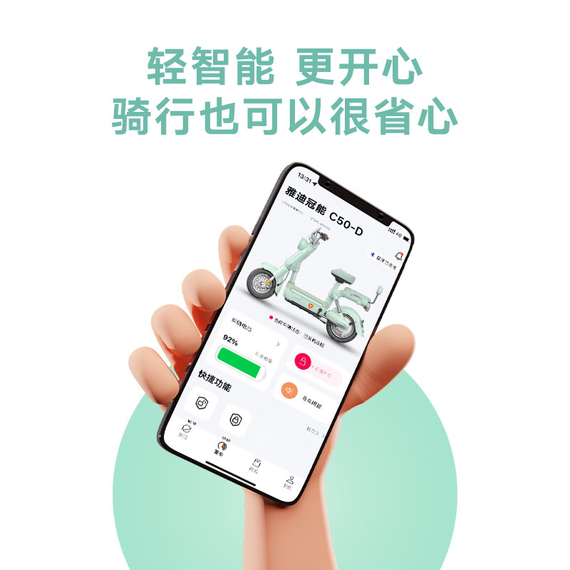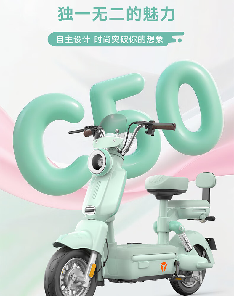 雅迪(yadea)C50冠能新国标可爱电动自行车长续航电动车锂电电池通勤代步智能车男女电瓶车
