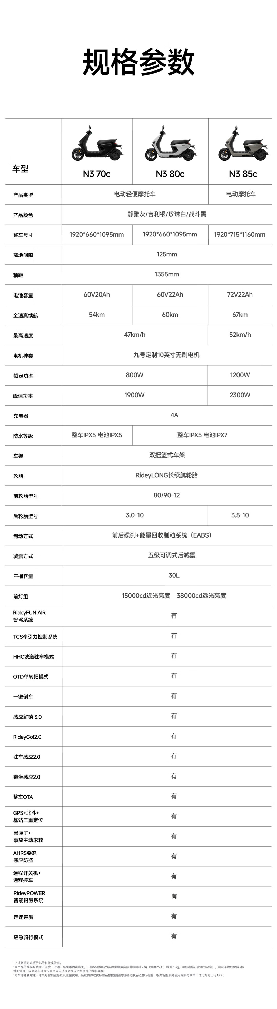 九号(Ninebot)电动车2025款 N3 70c电轻摩智能助力电瓶车全速真续航【门店自提】 到门店选颜色